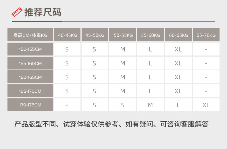 China (cm) 160-165/84-86 165-170 / 88-90 167-172 / 92-96 168-173 / 98-102 170-176 / 106-110