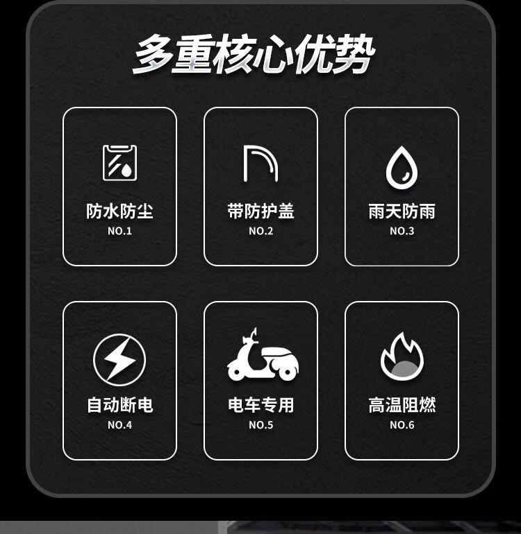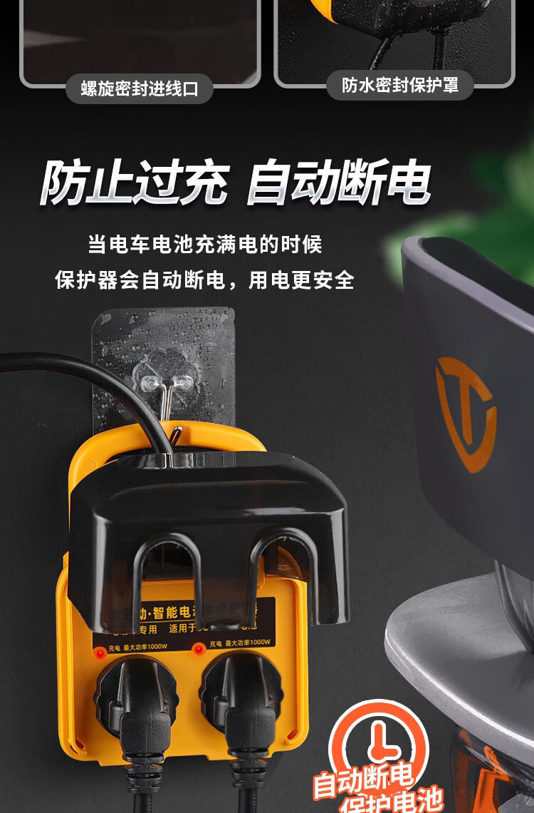 Outdoor electric vehicle charging, automatic power-off, rain-proof socket, battery car outdoor waterproof extension cord, smart charger, rain-proof + automatic power-off, + 1 socket, 2 meters