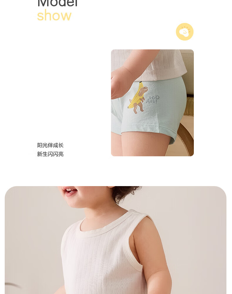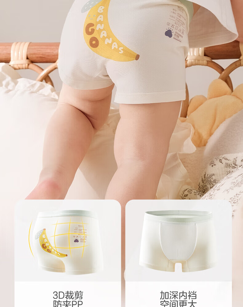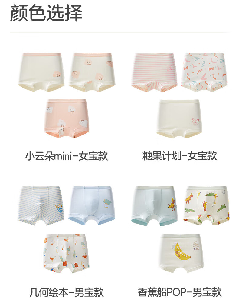 October crystal grain sunshine children's underwear four-corner three-pack shorts thin breathable underwear boys and girls underwear boys-geometric picture book 3 pieces 90