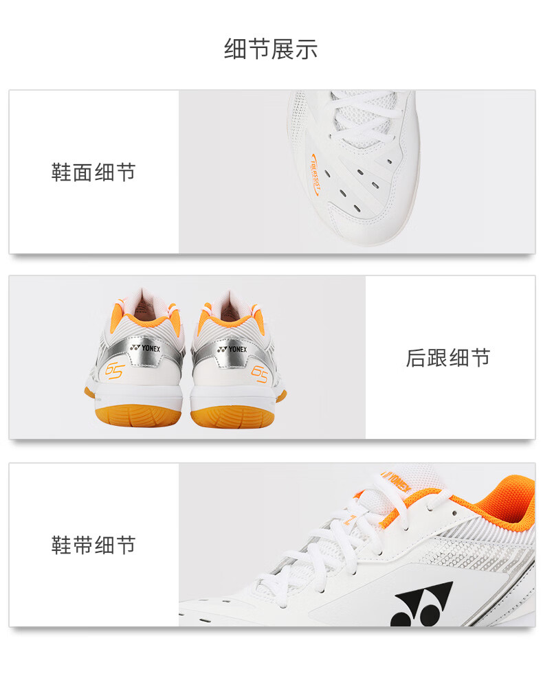 Yonex (YONEX) official badminton shoes 65z3 men's and women's shock-absorbing anti-slip training yy shoes SHB65Z3WEX white orange 36_225mm