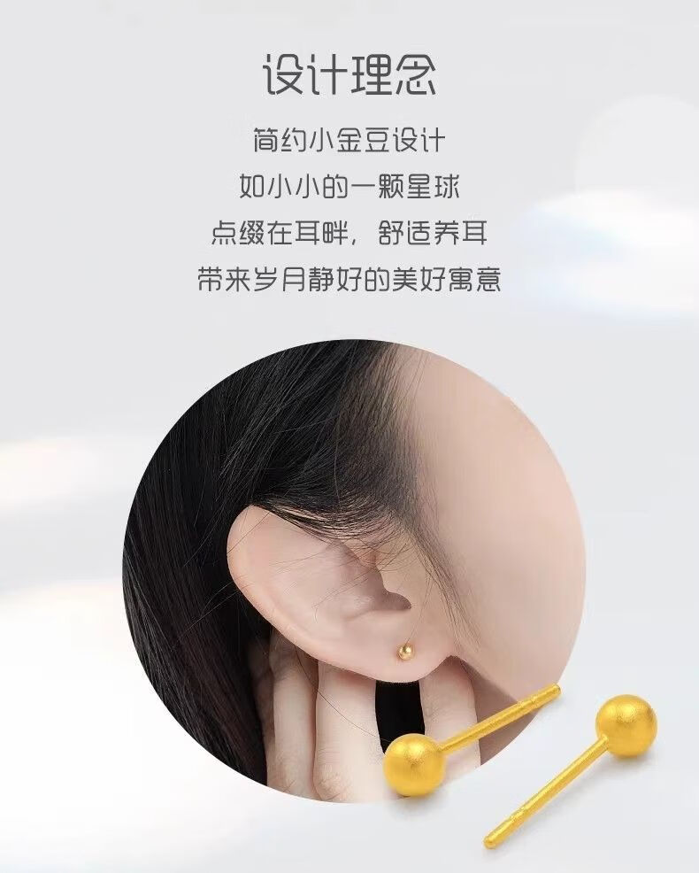 Old temple small golden bean earrings for women, ins style, simple temperament, the same style of gold earrings, light luxury and high-end, gift for girlfriend Jingsuda Doudou earrings