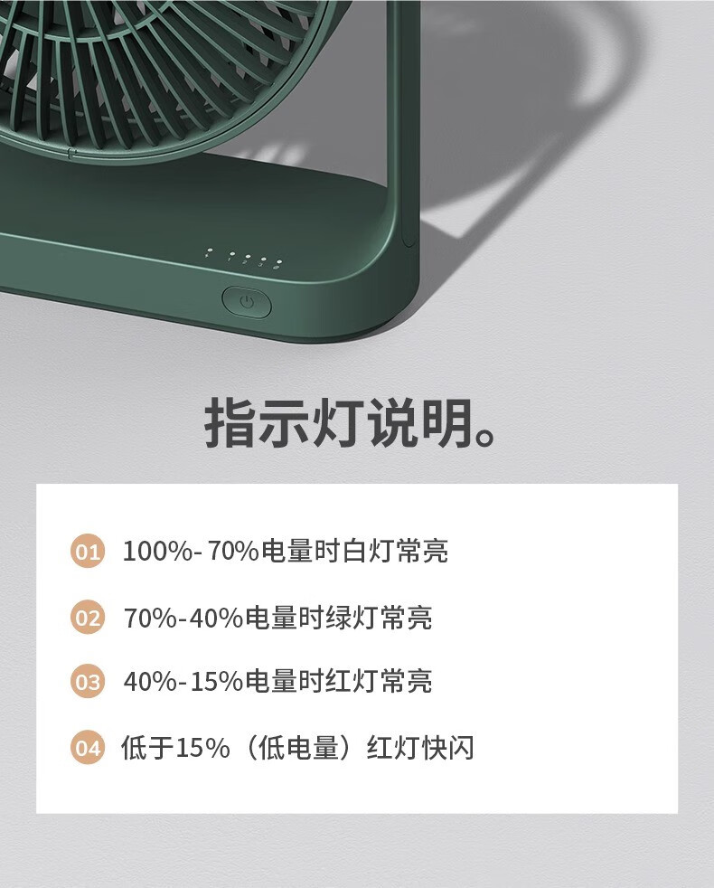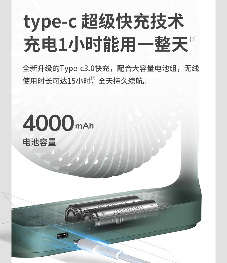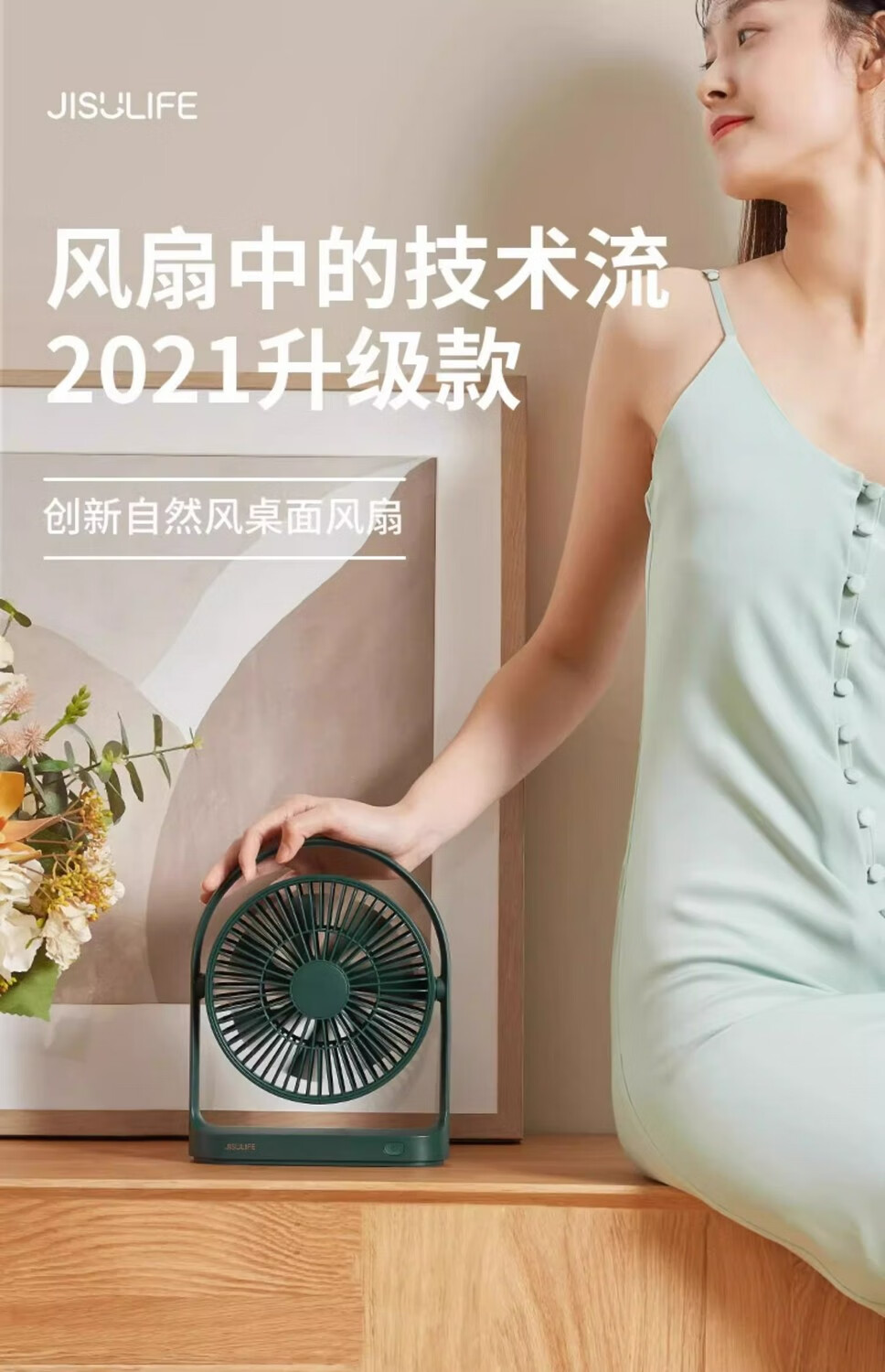 Jisu small fan portable high wind office desktop fan usb student dormitory ultra light sound ultra long battery life ice porcelain white 4000 mAh - 15 hours long battery life /