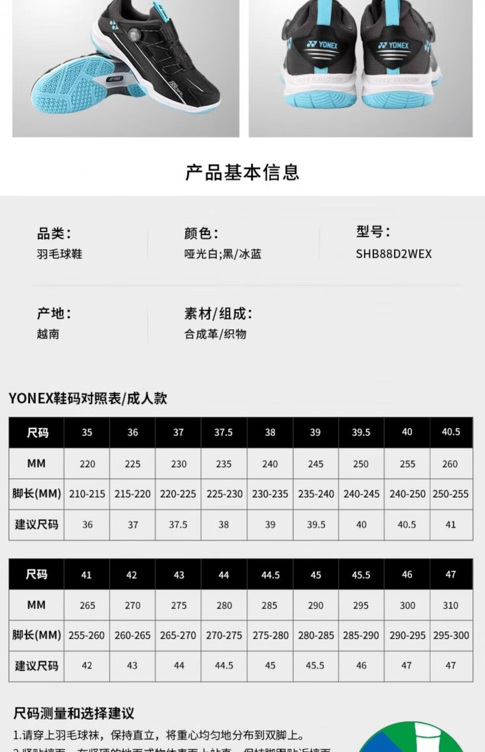 Yonex (YONEX) badminton shoes SHB88D2WEX men's and women's comfortable sports high-performance cushioning Wang Chang Liang Weikeng same style black_ice blue Liang Weicheng Wang Chang same style 36
