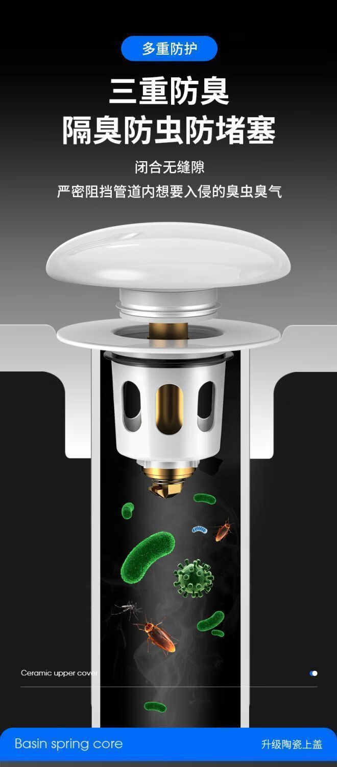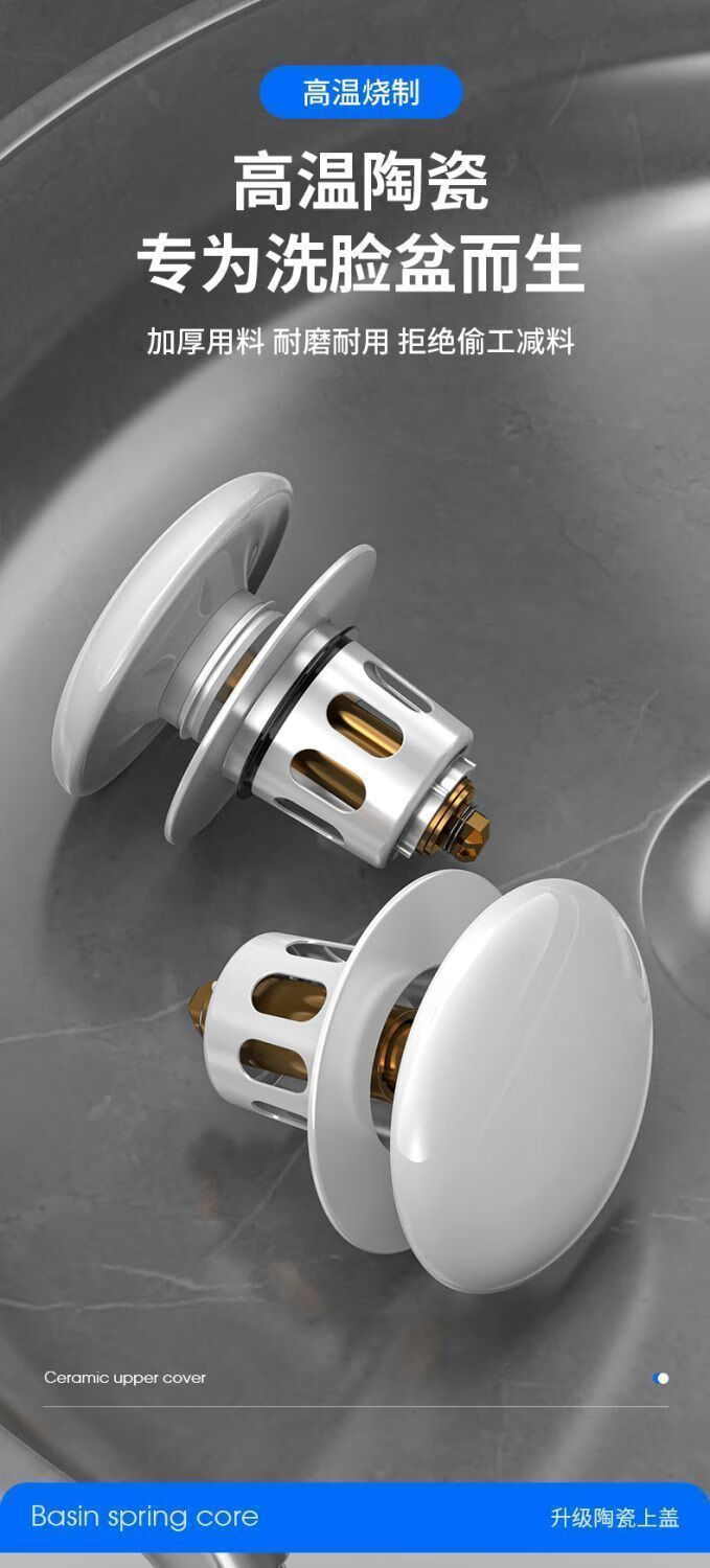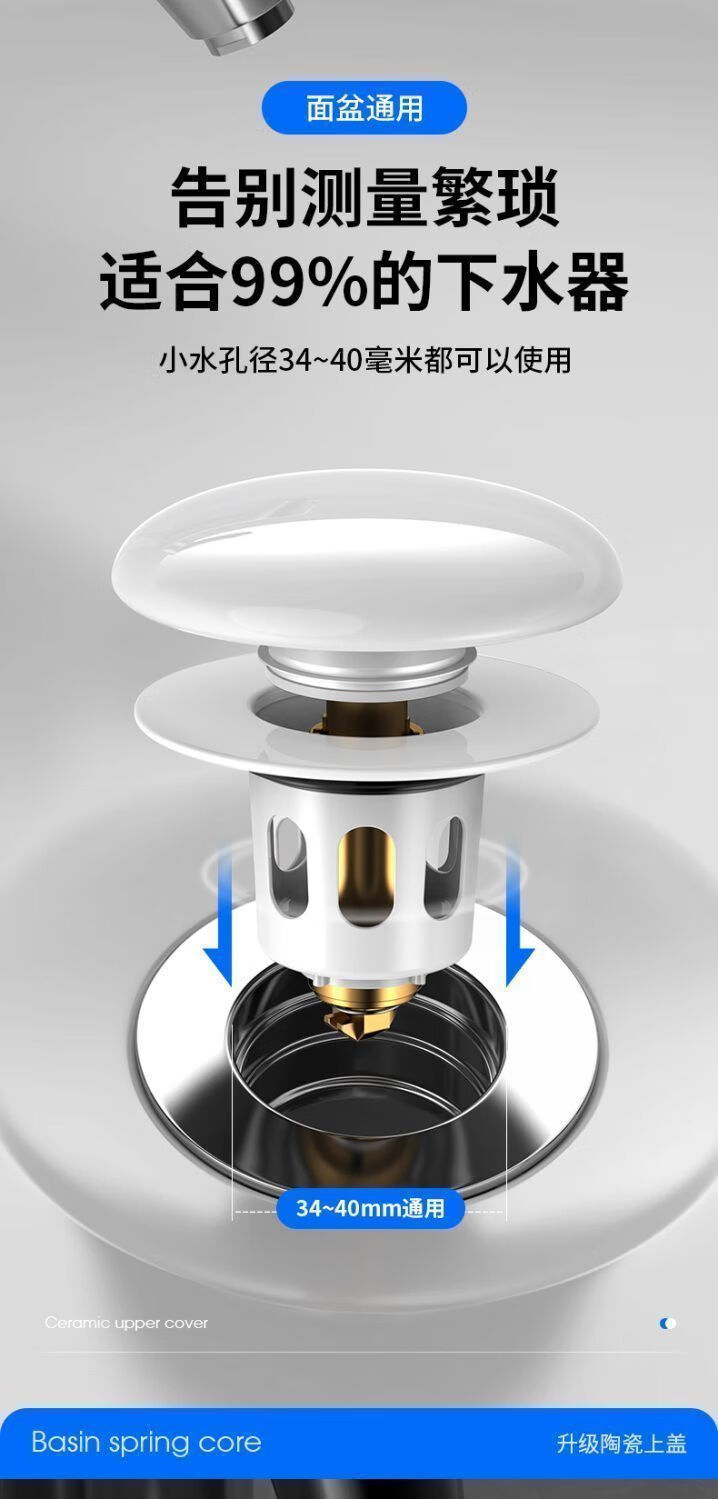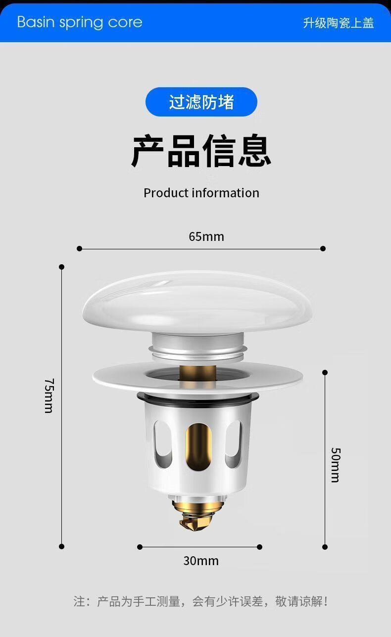 Jiumuwang drain filter universal ceramic wash basin leak plug push-type spring core anti-odor basin plug accessories copper core ceramic upgraded filter anti-blocking 1 pack German quality one-click universal (adapted to 34-40mm