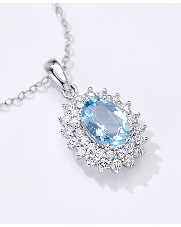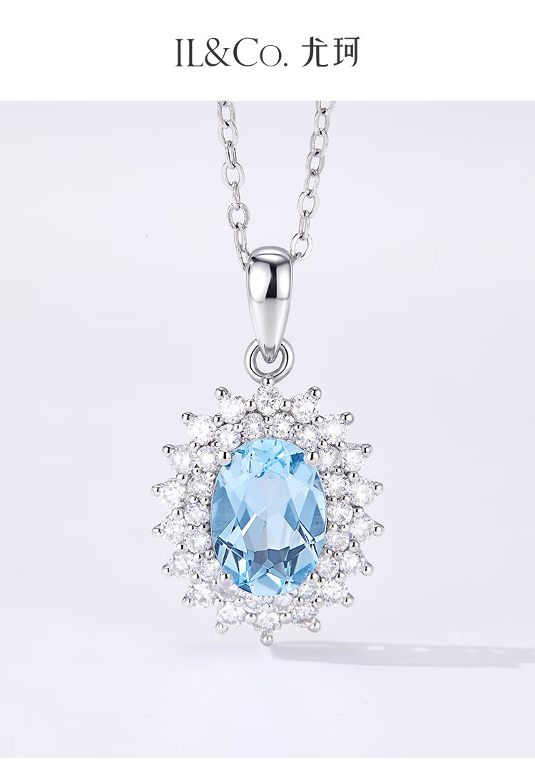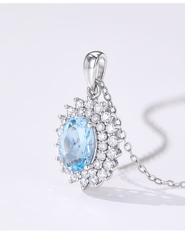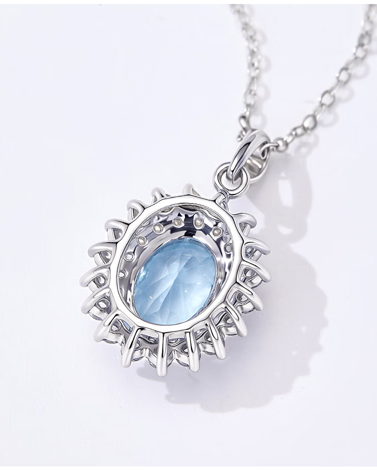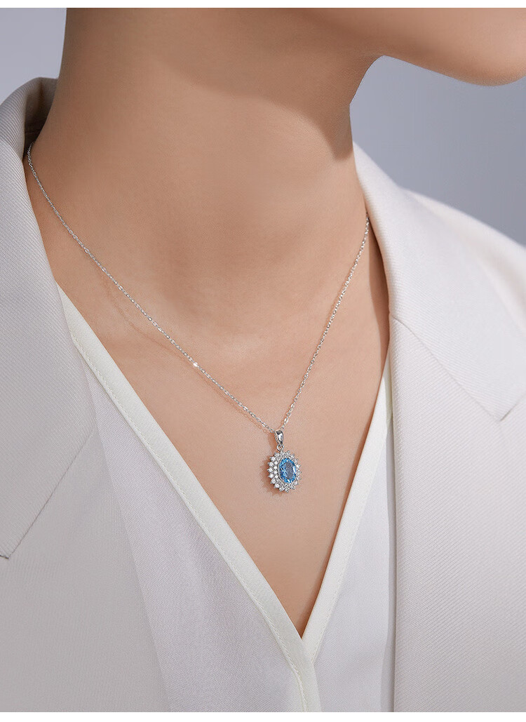 IL&CO Youke Pt950 Platinum Natural Aquamarine Necklace Women's Diamond Pendant Birthday and Valentine's Day Gift for Girlfriend Platinum 1 Carat Aquamarine Pendant with Silver Chain