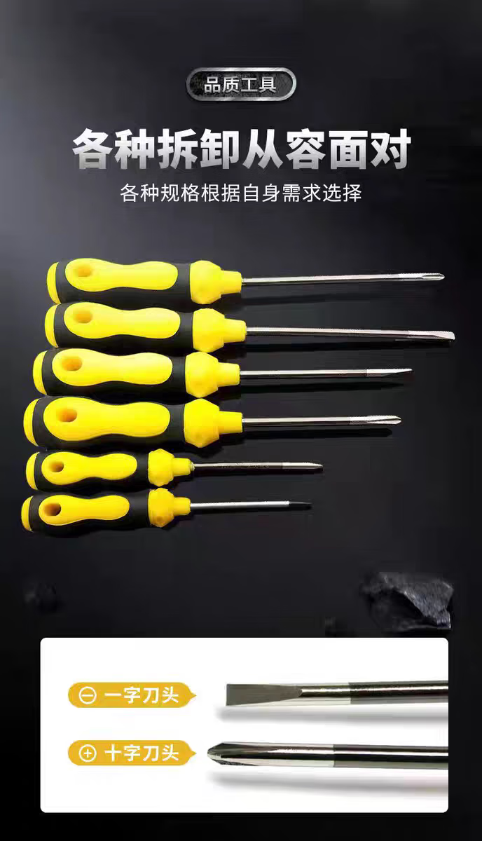 Peanut handle screwdriver with rubberized handle, industrial-grade high-hardness screwdriver, non-slip, durable, household car screwdriver, 1 3-inch cross head