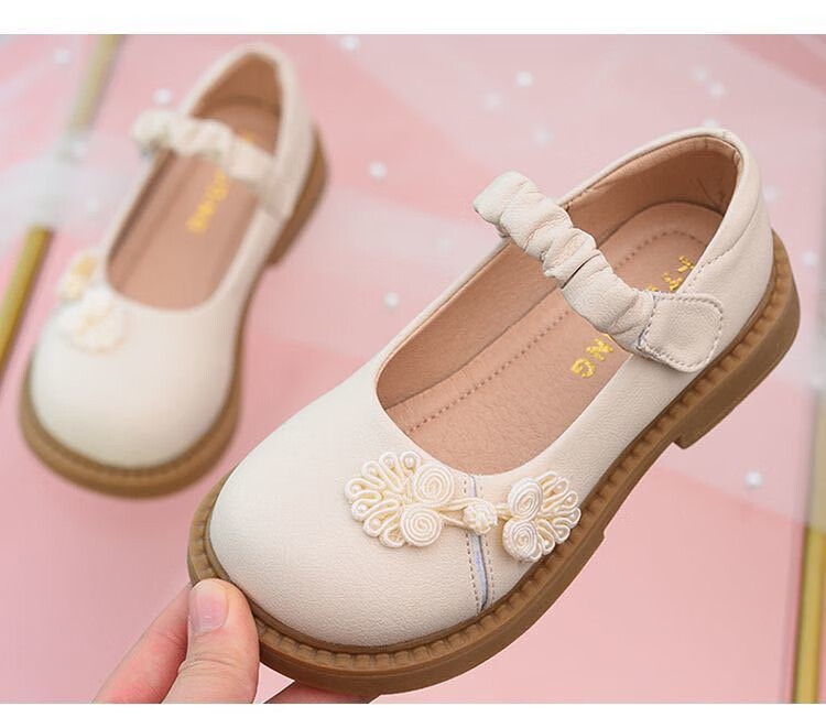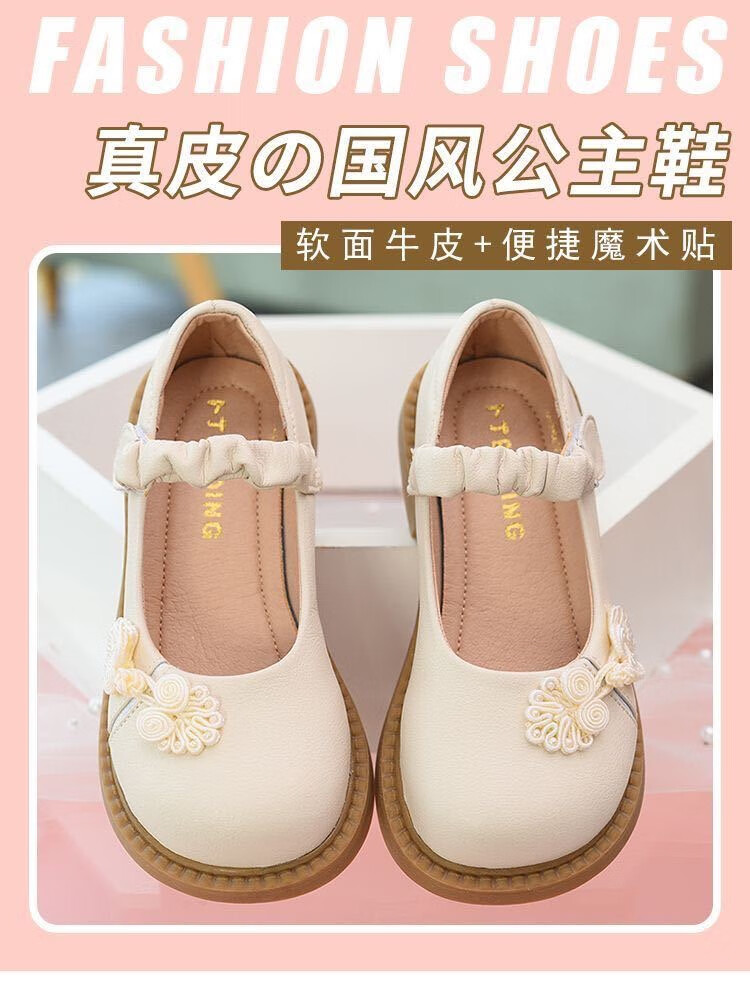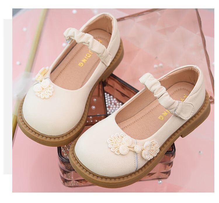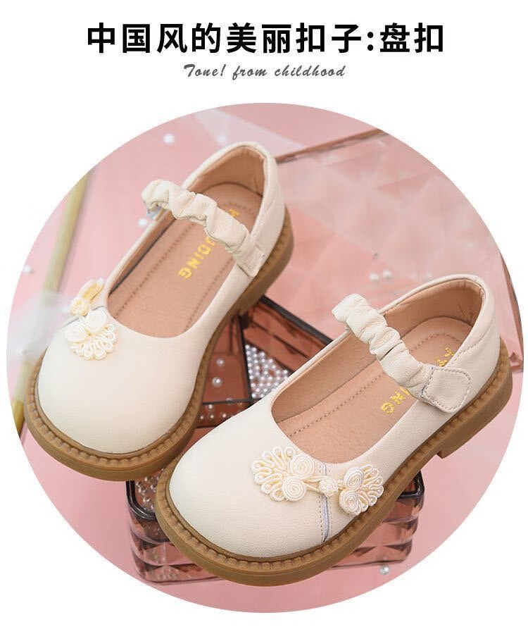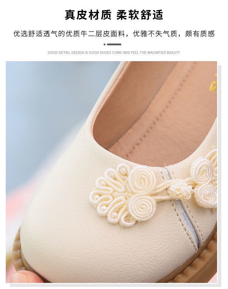 Children's Hanfu shoes, girls' small leather shoes, soft-soled princess shoes, antique children's shoes, girls' Chinese-style shoes for older children, Chinese-style shoes, beige, size 32, inner length about 19.6cm