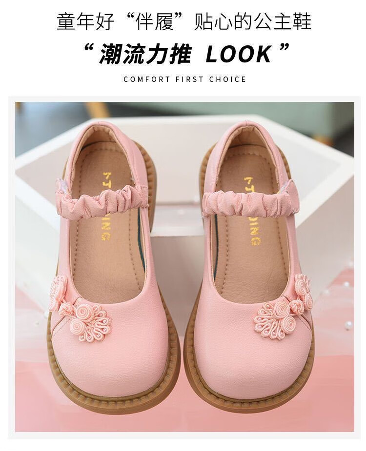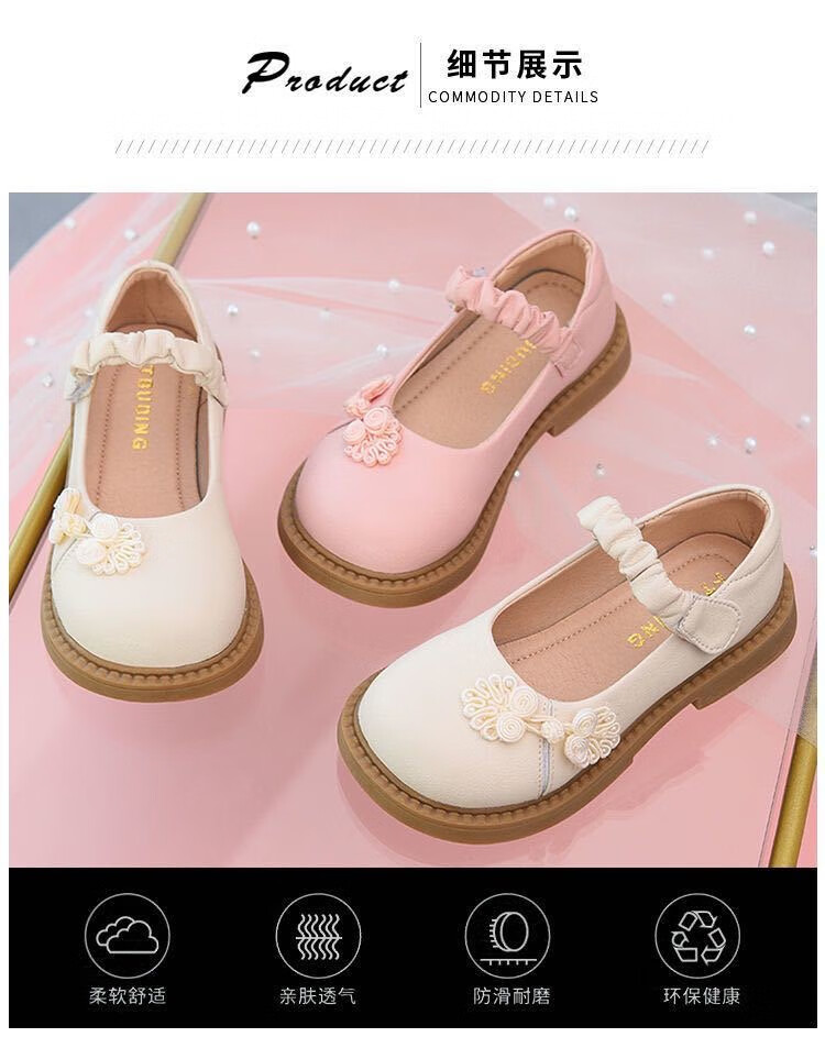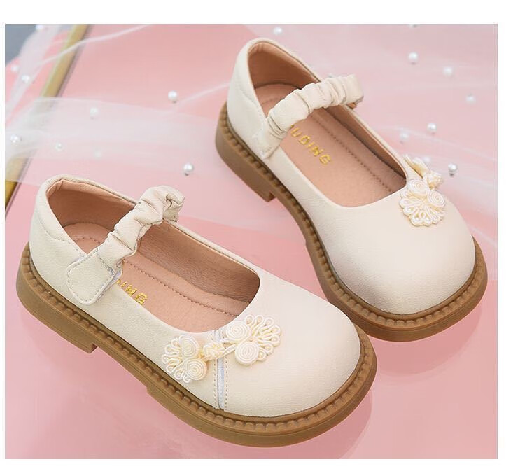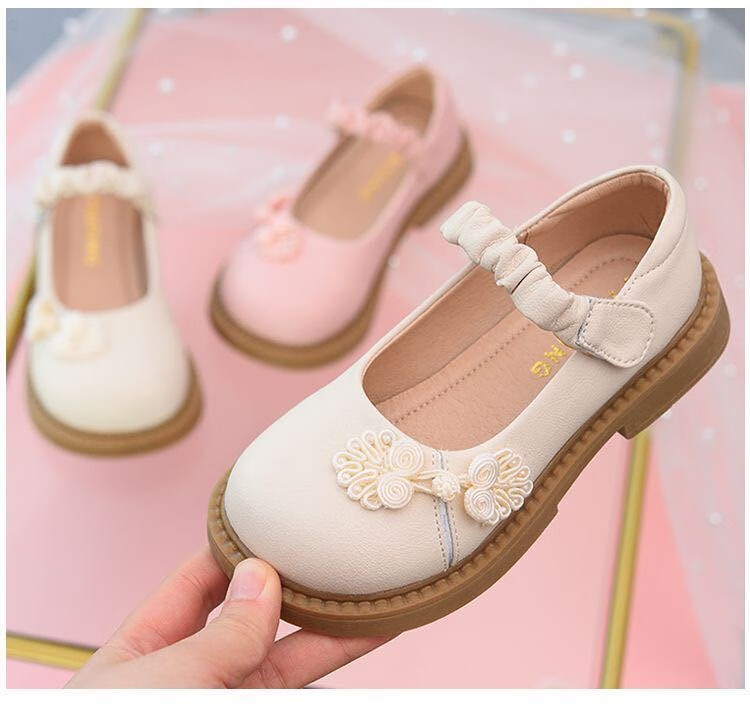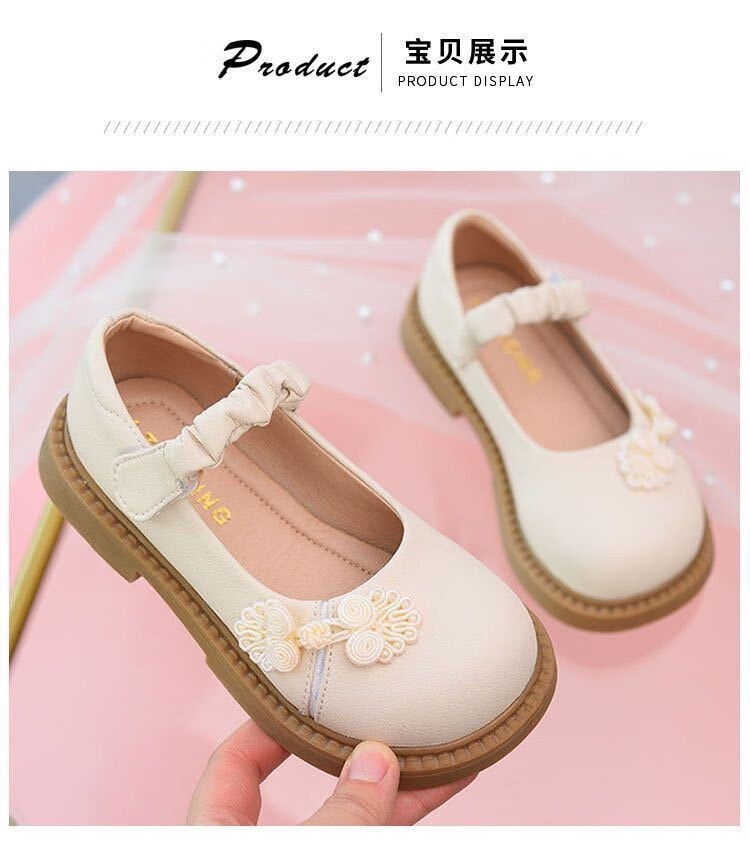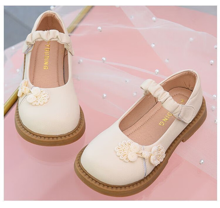 Children's Hanfu shoes, girls' small leather shoes, soft-soled princess shoes, antique children's shoes, girls' Chinese-style shoes for older children, Chinese-style shoes, beige, size 32, inner length about 19.6cm