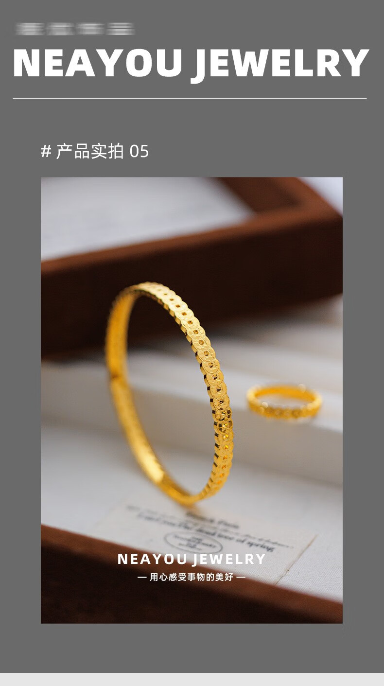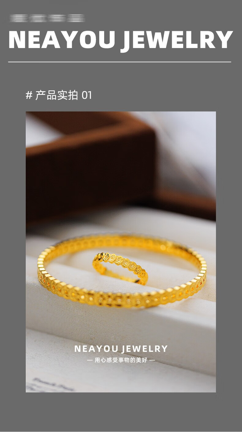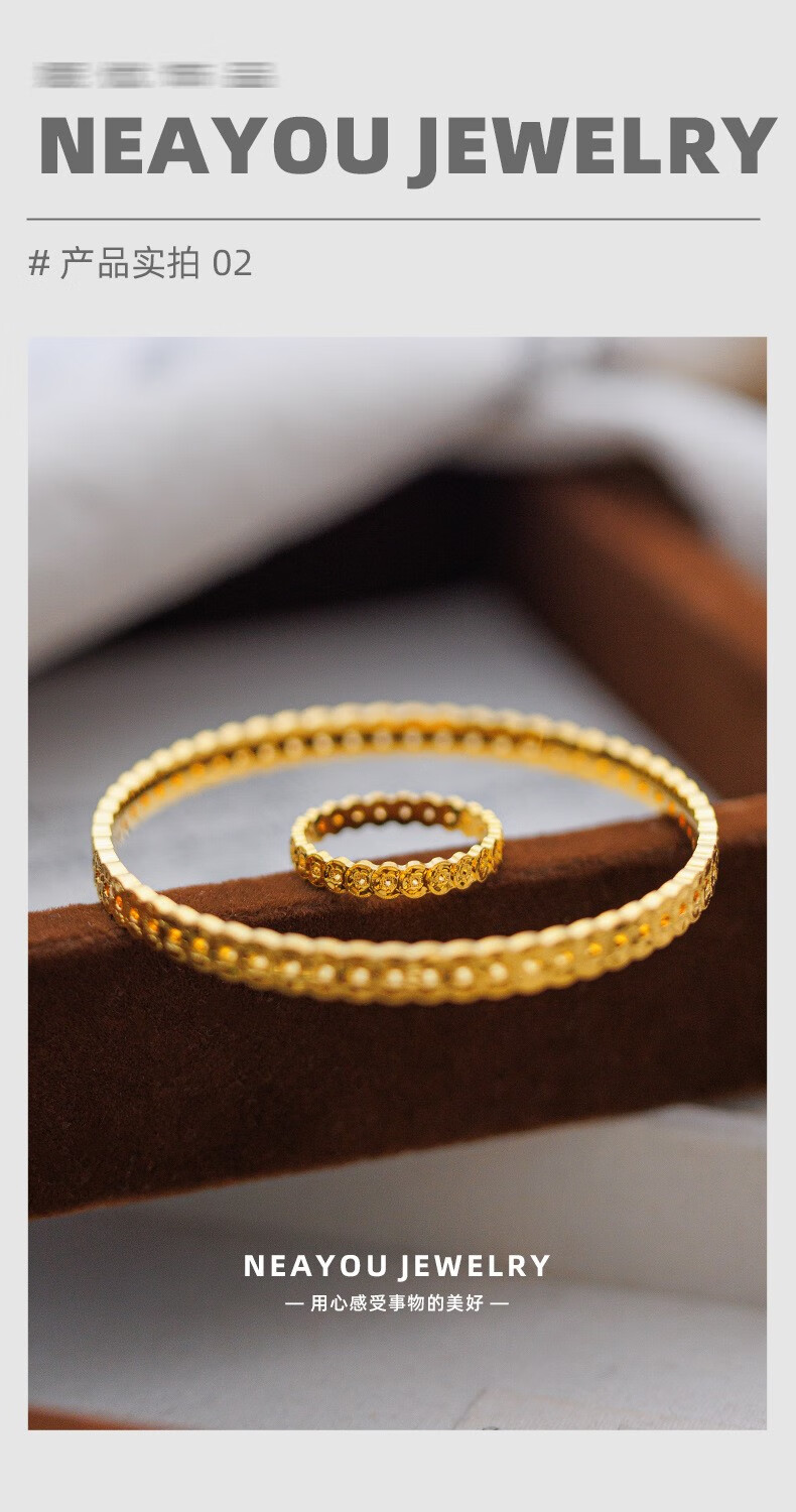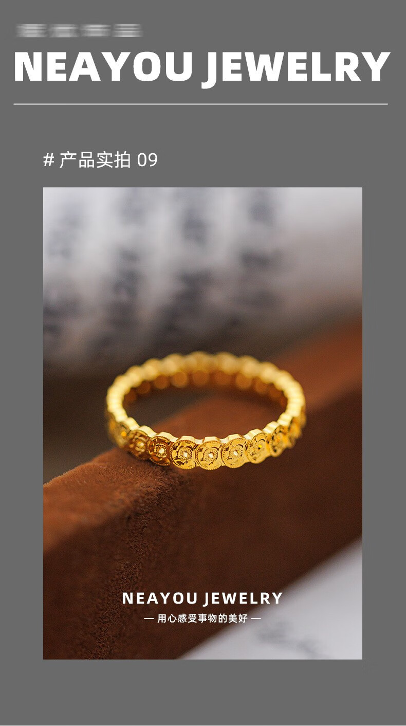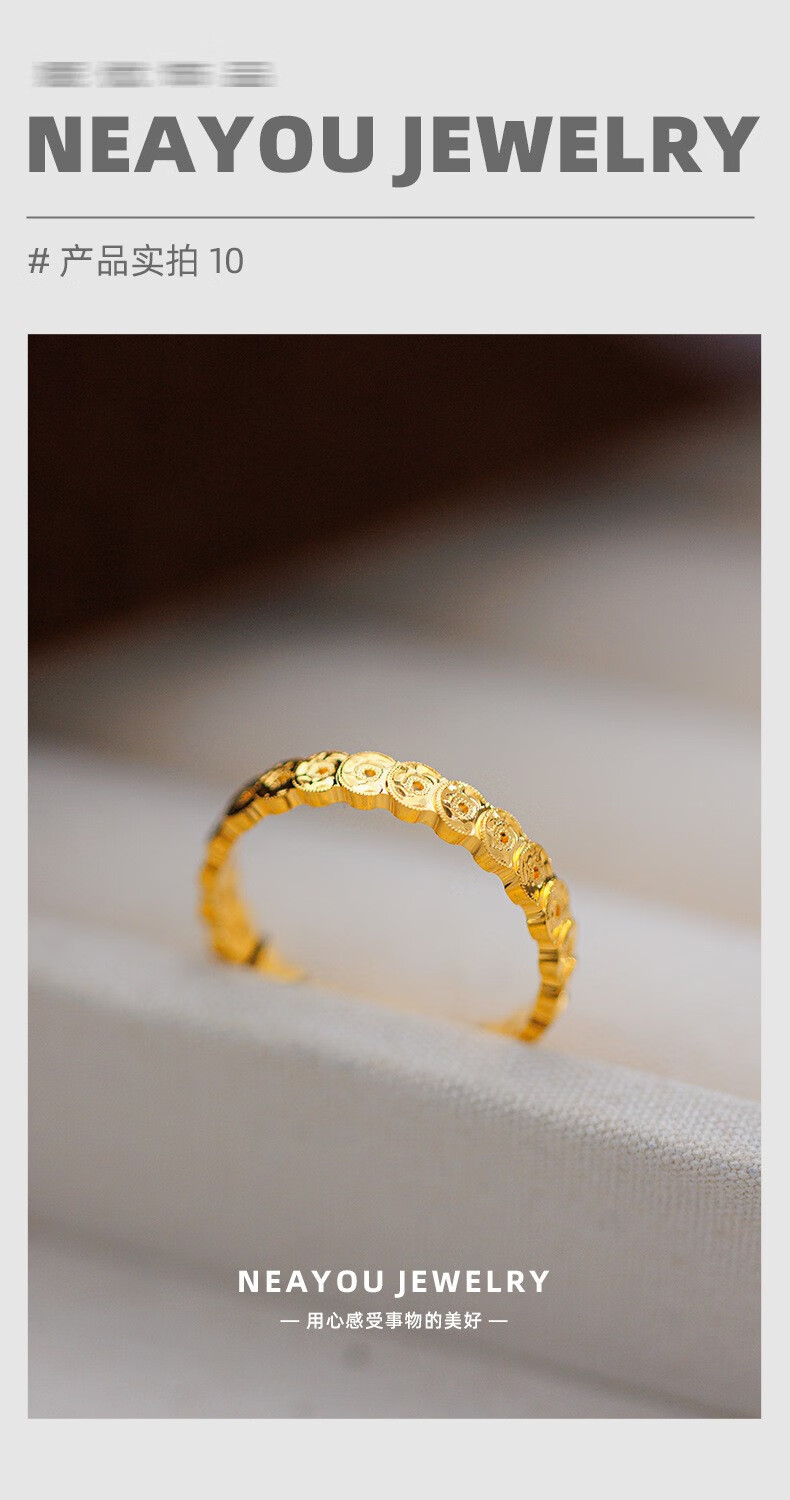 OIDSG Old Phoenix 9995G gold color sand gold 999 broken ice copper coin ring for men and women light luxury hollow coin ring element broken ice copper coin ring No. 8