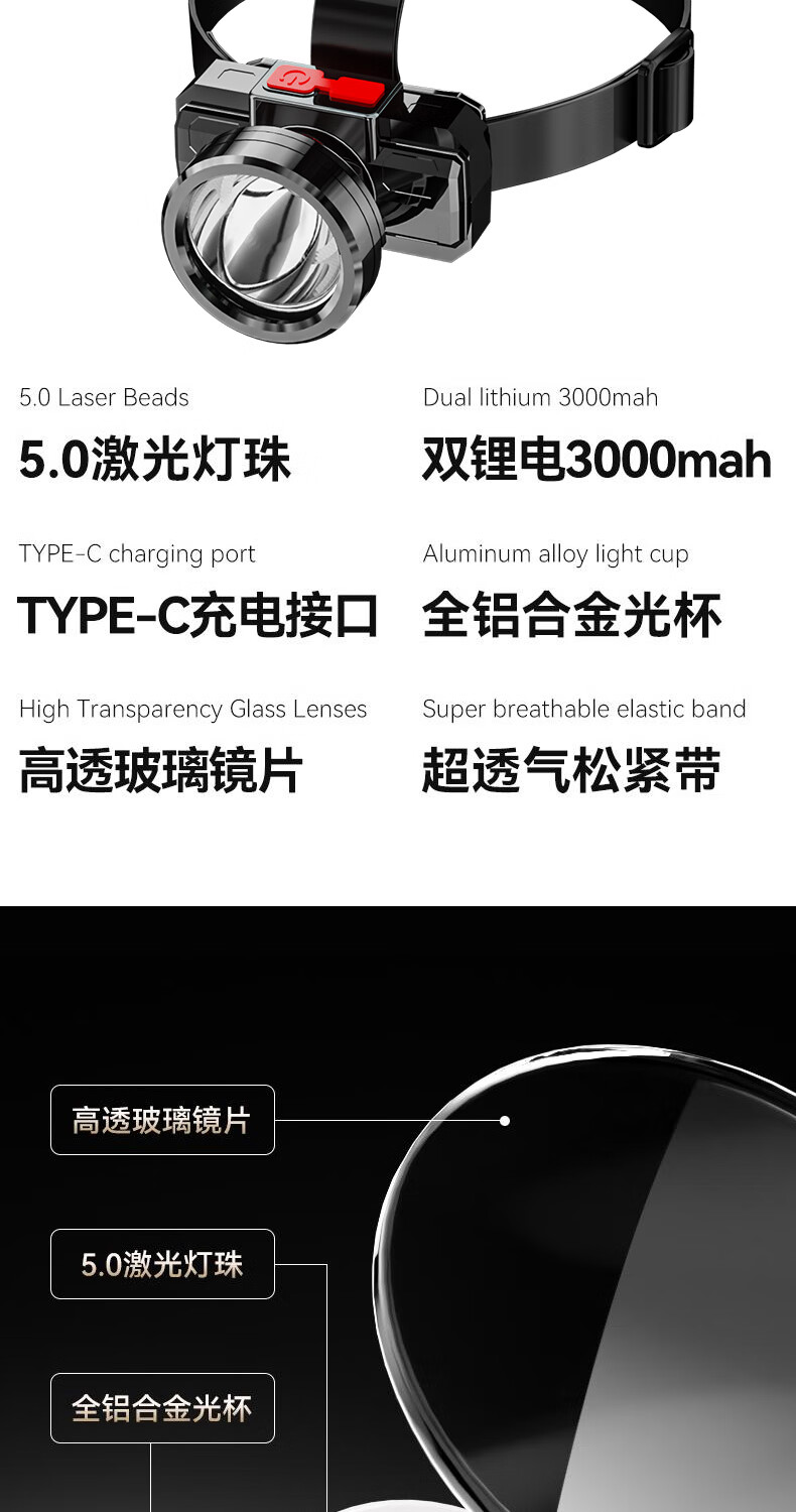 Tanji outdoor waterproof LED lamps with strong light and super bright head-mounted long-life charging induction headlight night fishing light T40 bright laser small headlight luxury high-brightness wick to be renewed for 180 days