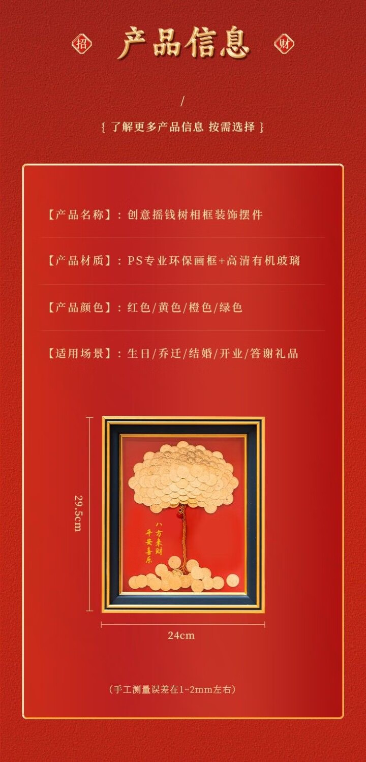 Coin Money Tree Photo Frame Birthday Gift Handmade DIY Fifty Cent Ornament Housewarming Gift Fifty Cent Money Tree Bring Your Own Coins Smooth Flowing Money from All Directions + Sticky A421*30cm-Bring Your Own 150-200 Coins
