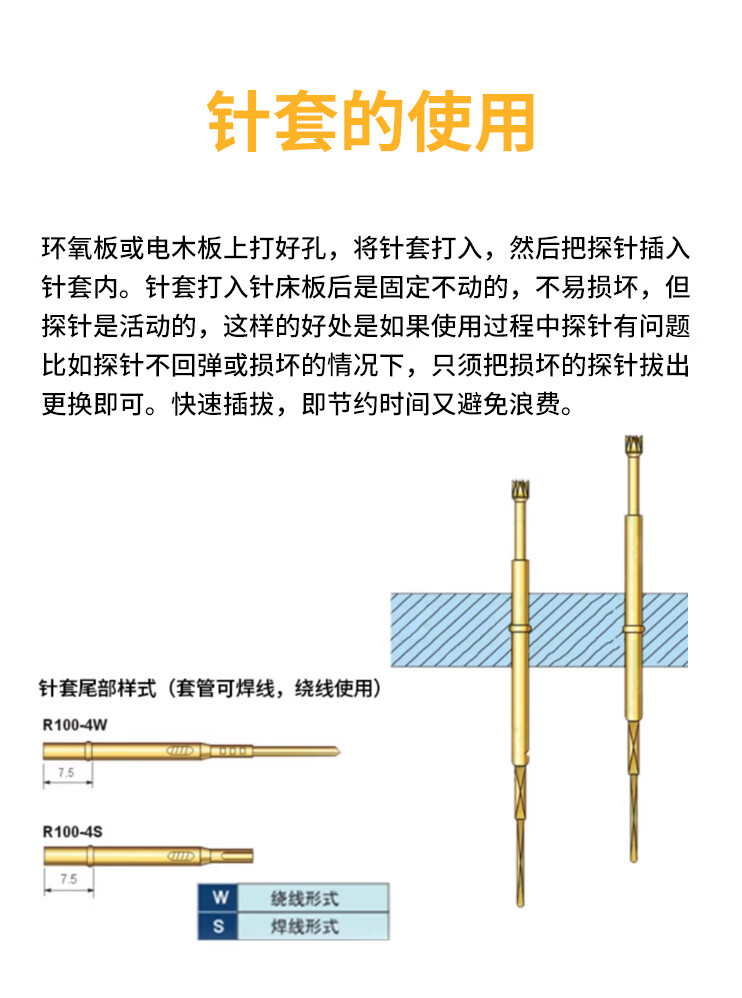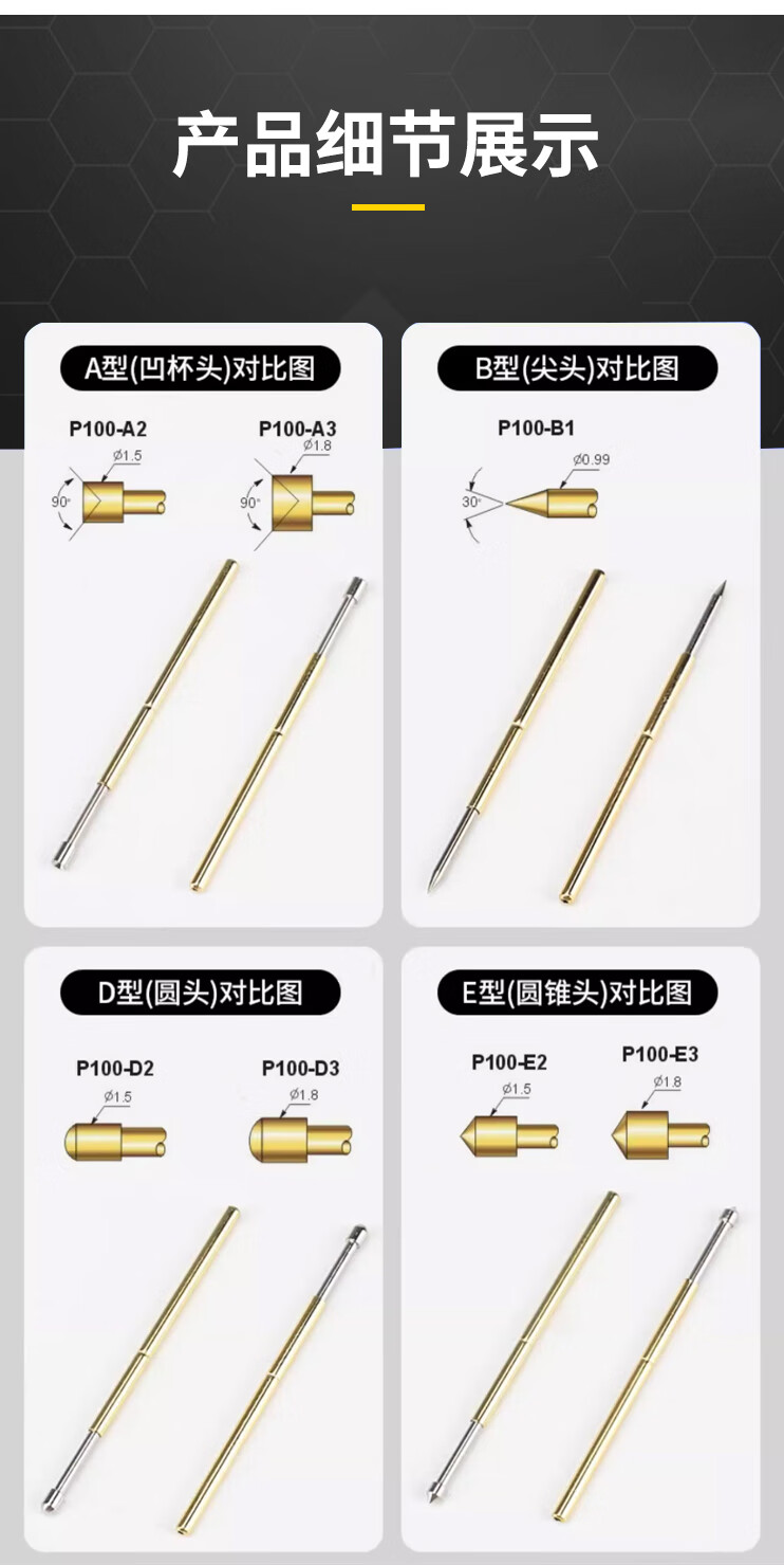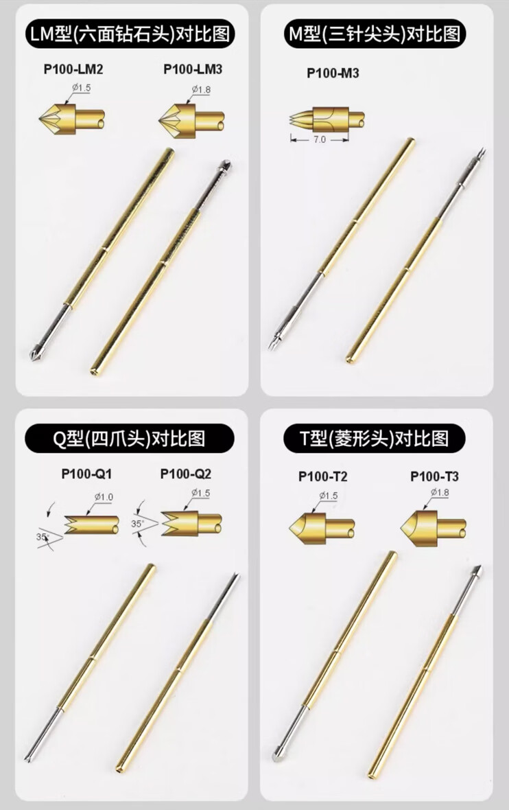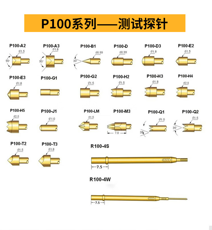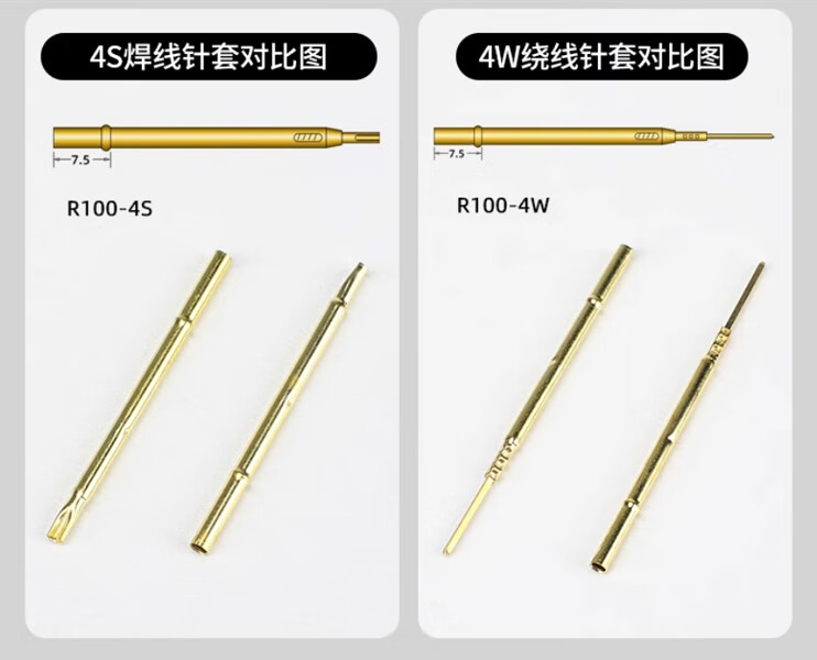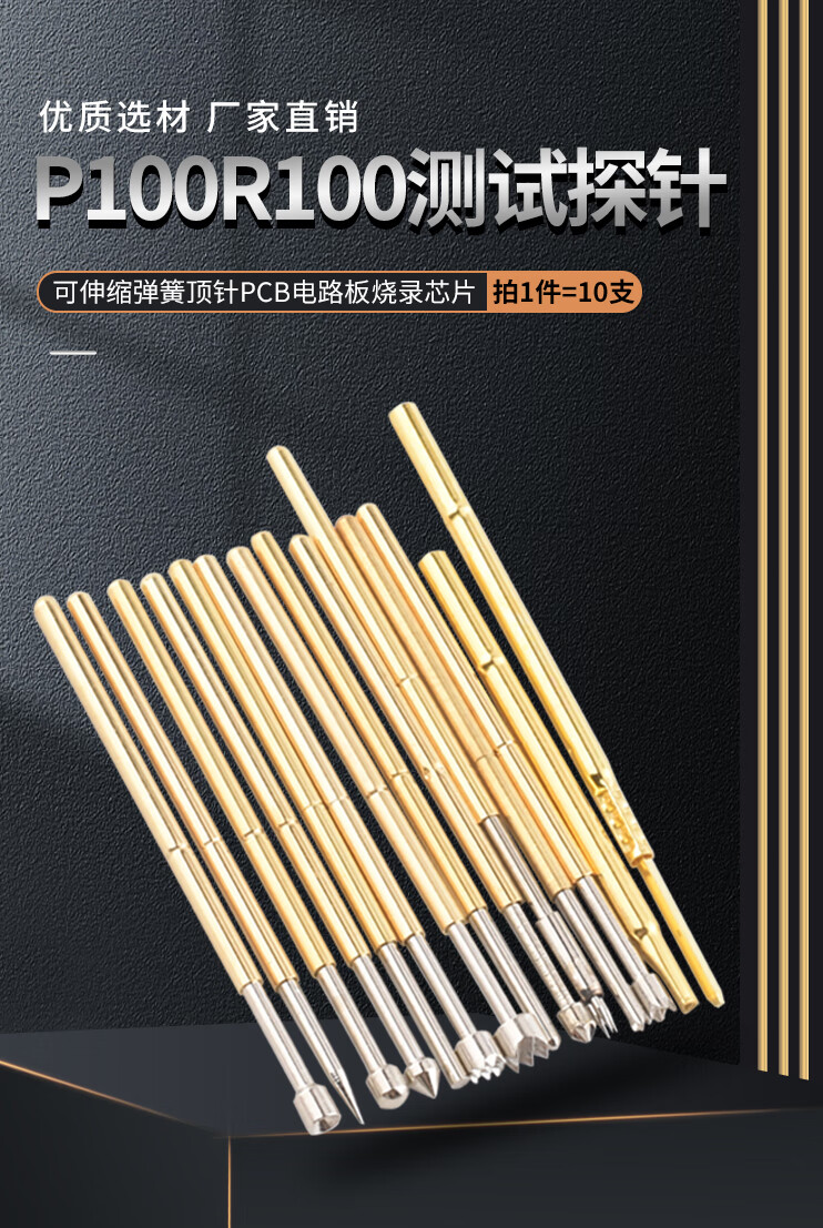 Zejie test probe P100 R100 test needle retractable spring thimble pcb circuit board burning chip R100-4S soldering wire needle set (10 pieces) No Specifications