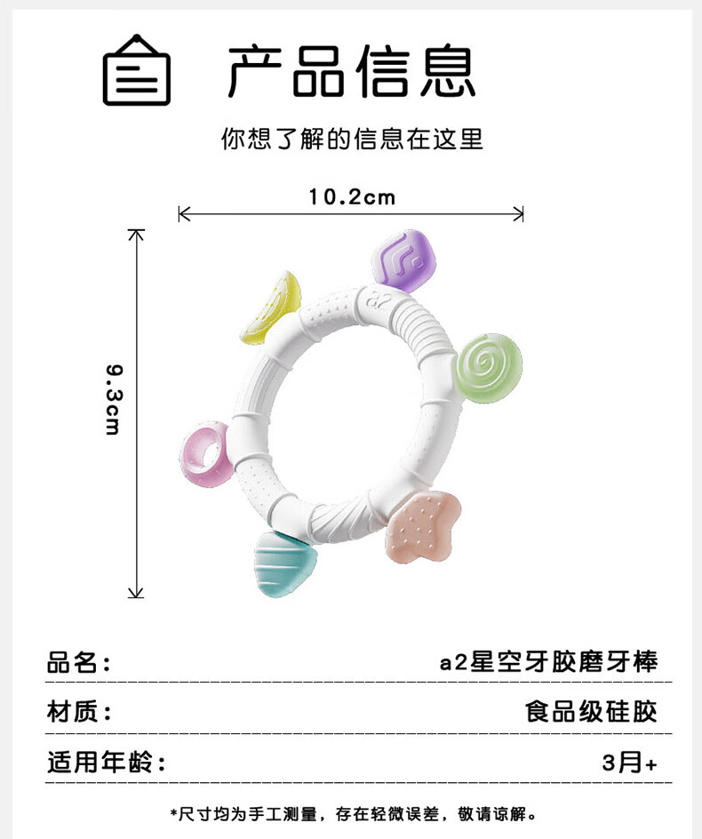 A 2 teether, baby teething period 3-6 months, soothing molar stick, chewing gum toy, anti-eating hand artifact, silicone, ring-shaped starry sky teether, 1 pack, baby teether (3-6 months)