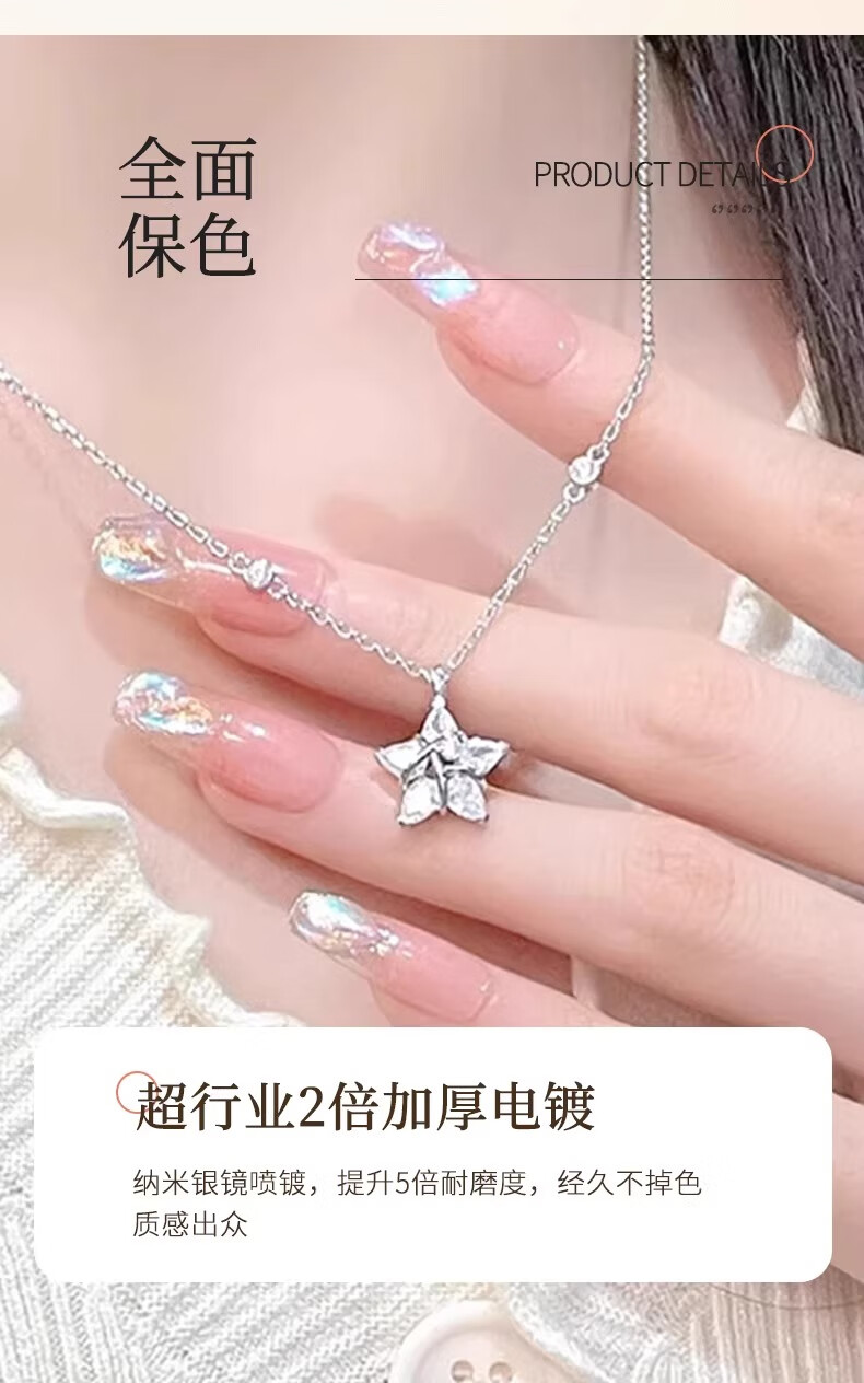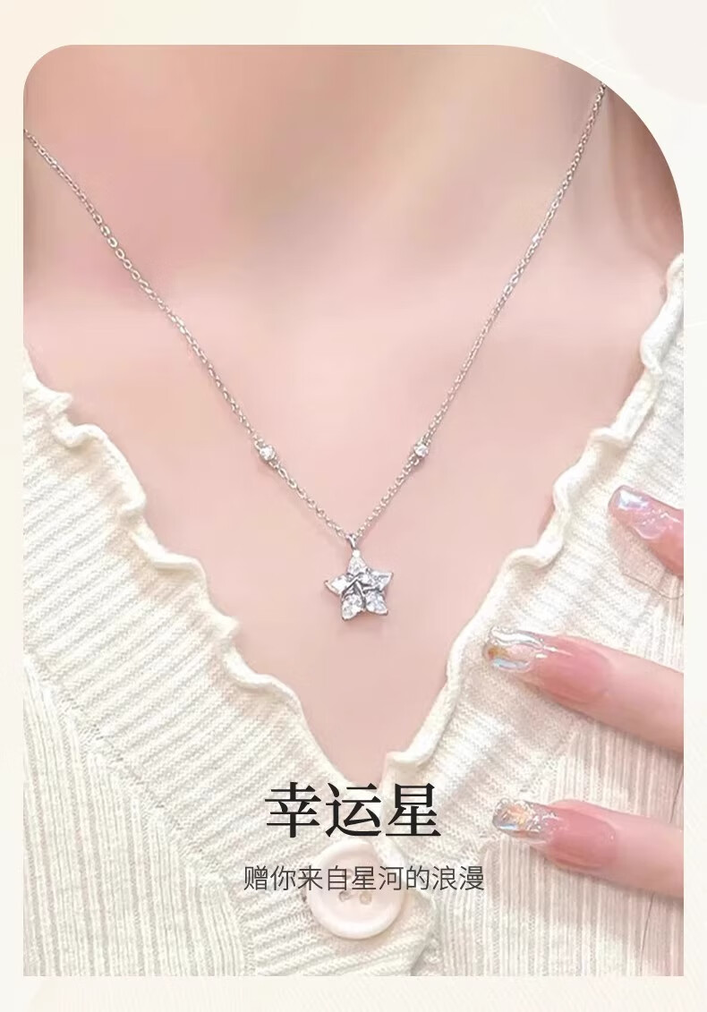 China Gold (CHINA GOLD) 925 Silver Lucky Star Necklace Female Niche Clavicle Chain Little Star Valentine's Day Birthday Gift for Girlfriend and Wife 925 Silver Lucky Star Necklace Brand Gift Box