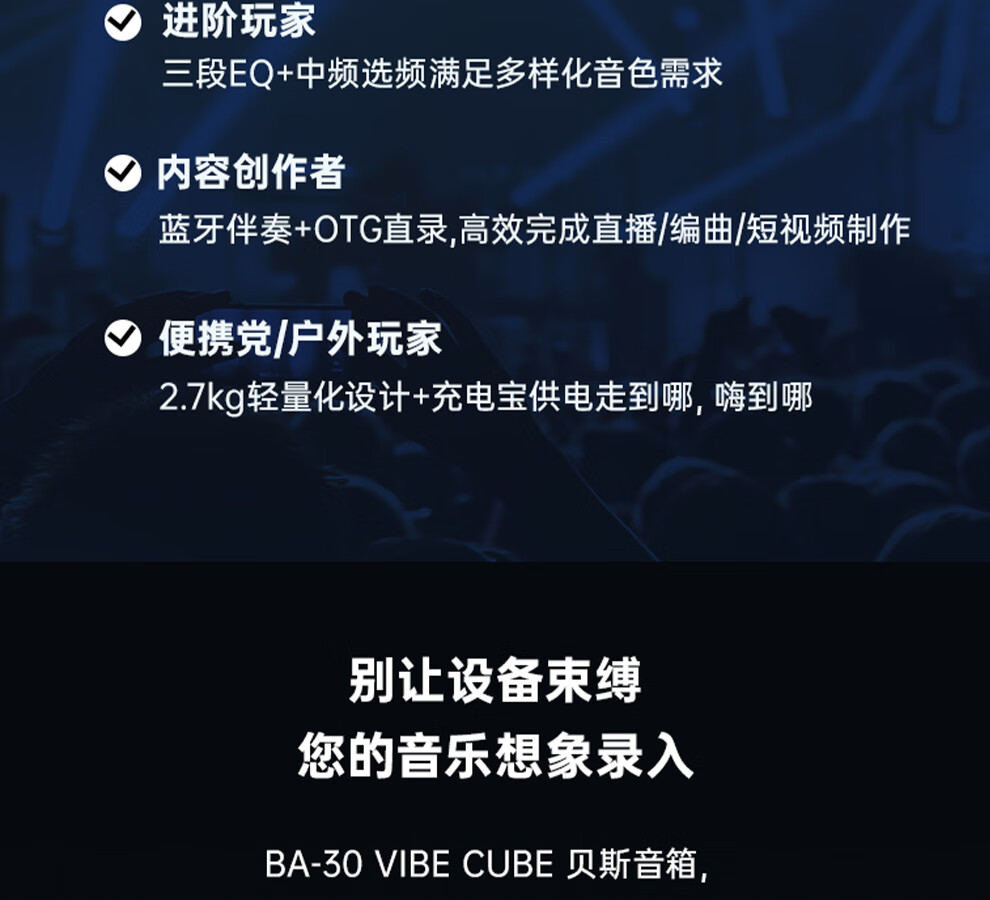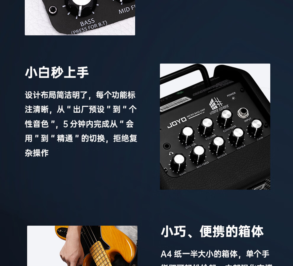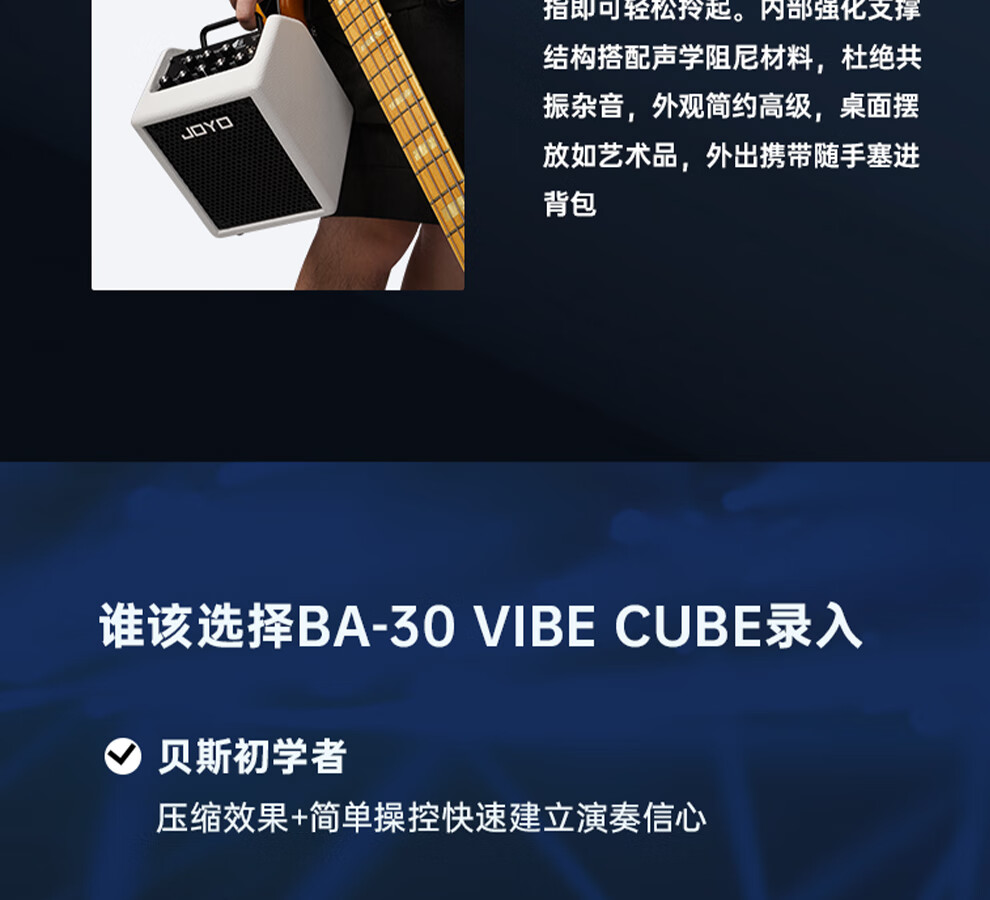 Zhuole electric bass speaker 2025 new BA-30 portable OTG live broadcast recording and singing full-range analog dynamic sound BA-30 black + JM60 metronome + gift bag
