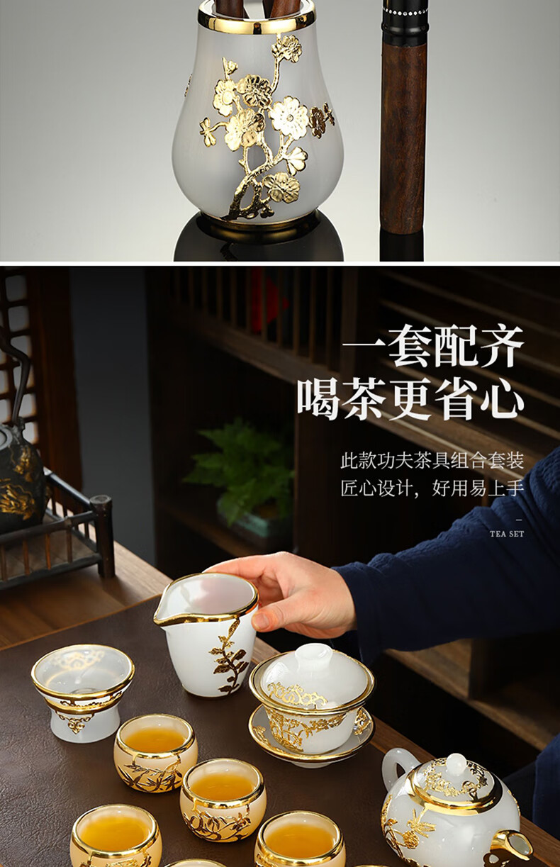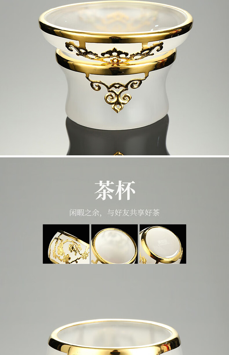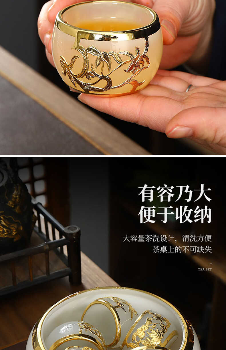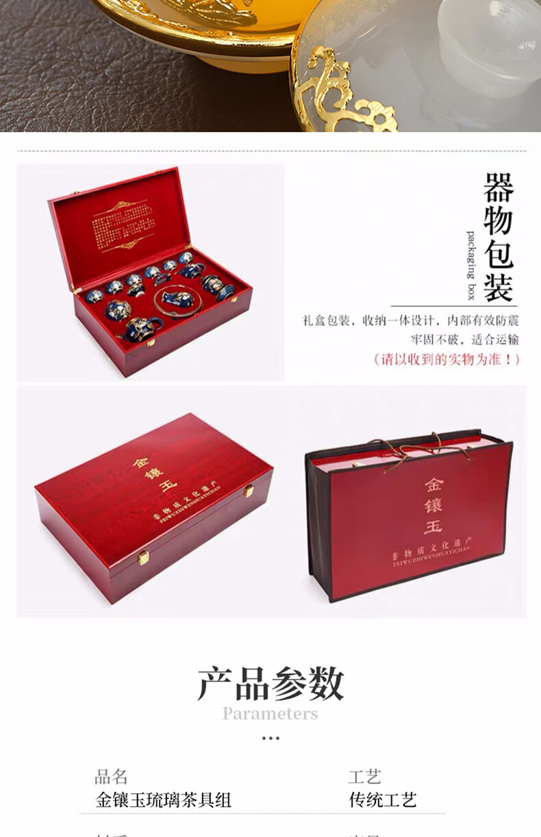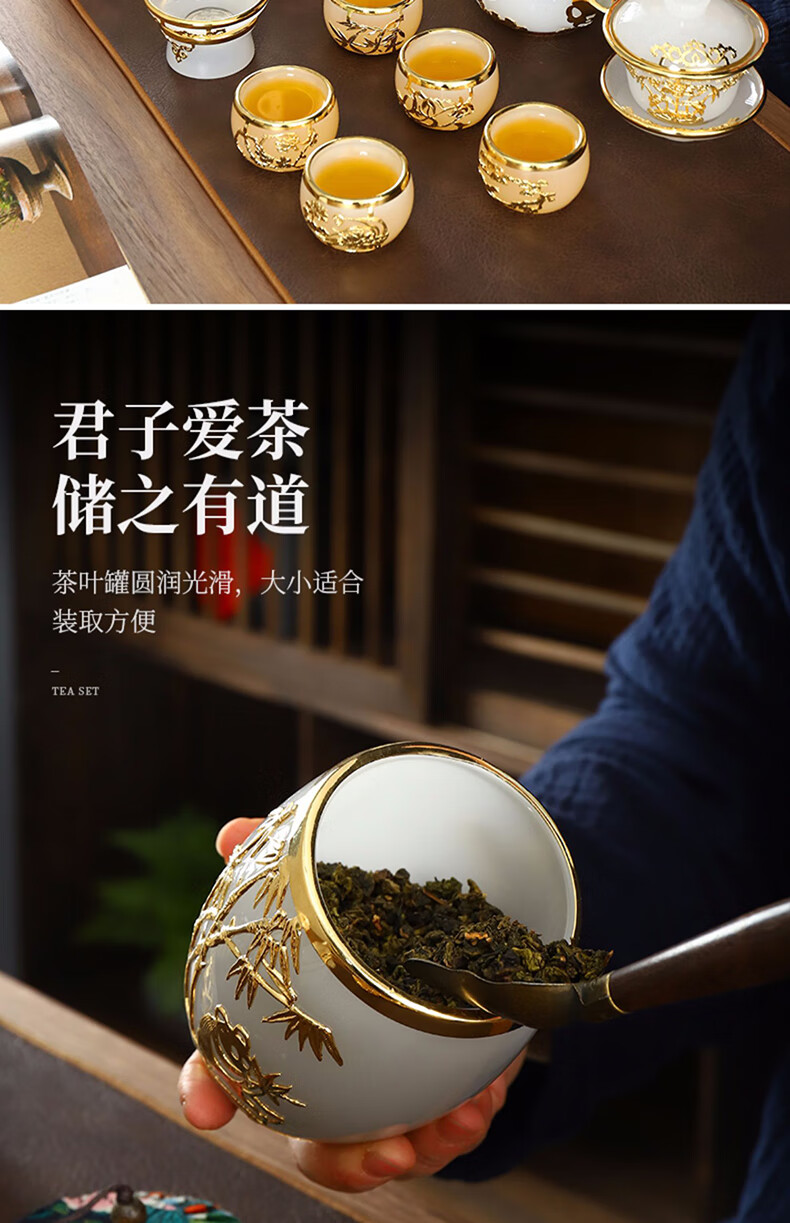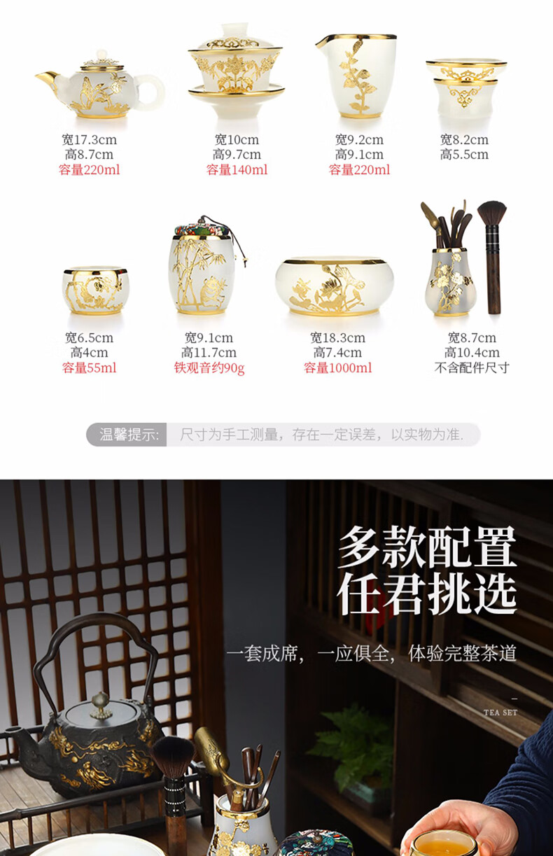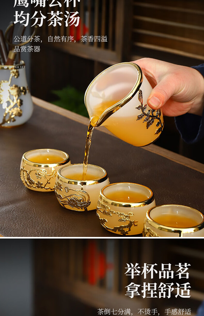 Chengyun Shangzun inlaid with gold and jade tea set, colored glaze pure handmade Kung Fu tea cup set, home office gift teapot cover bowl, colored glaze set (large set of 14 heads)