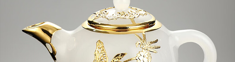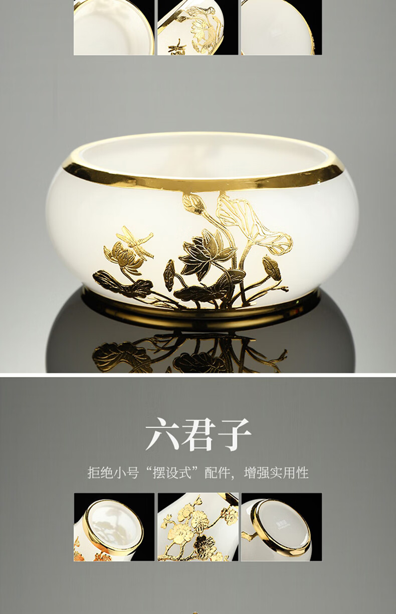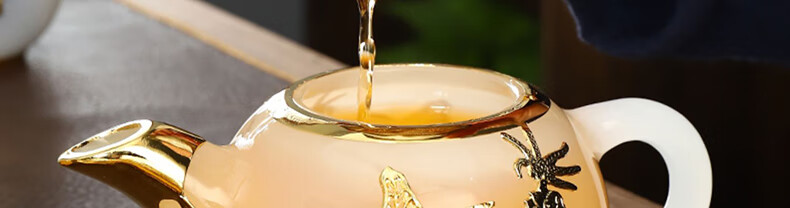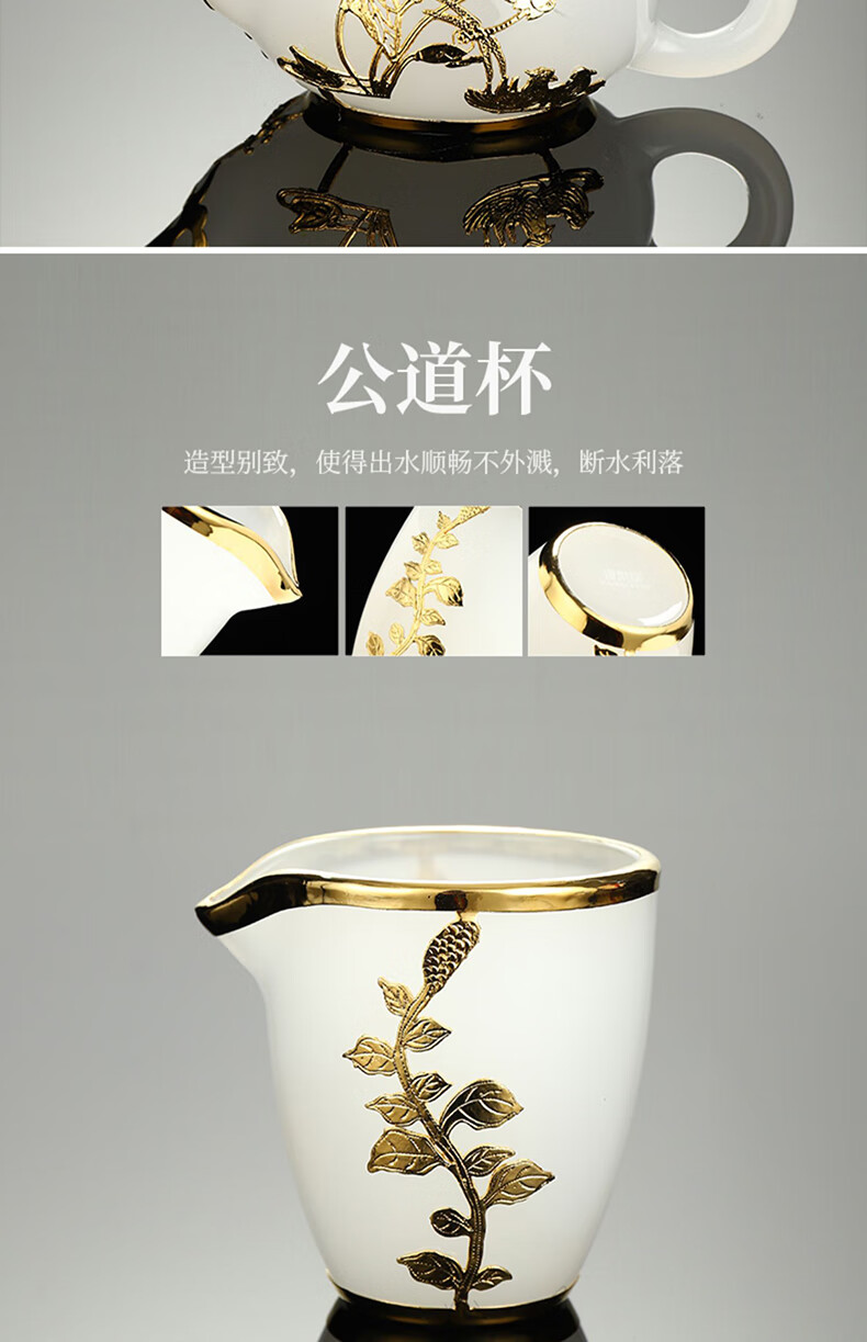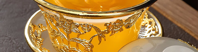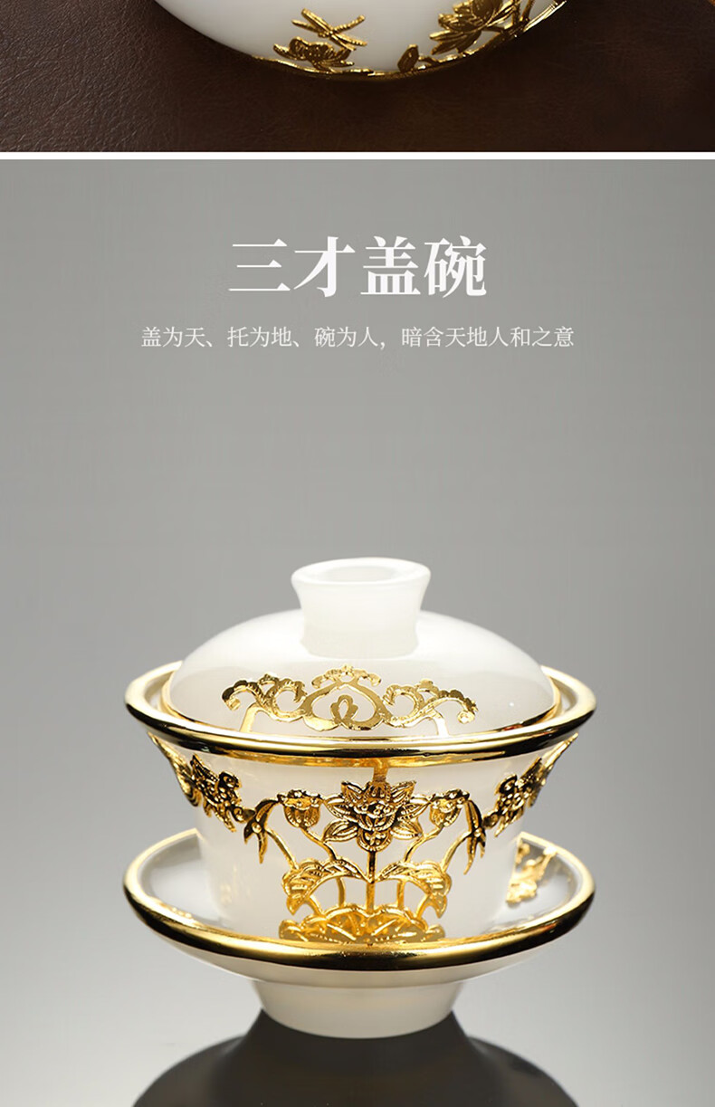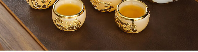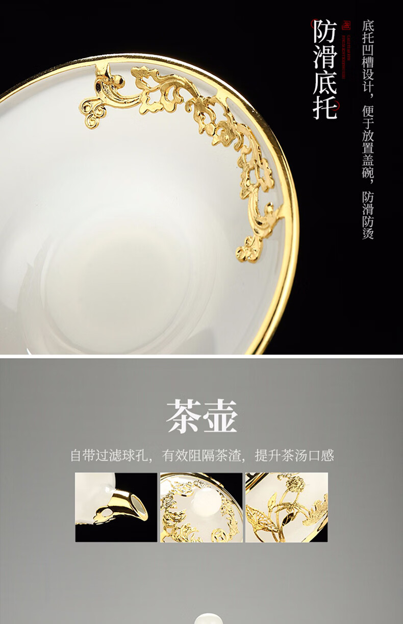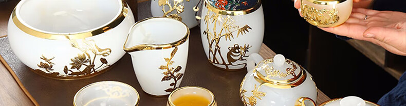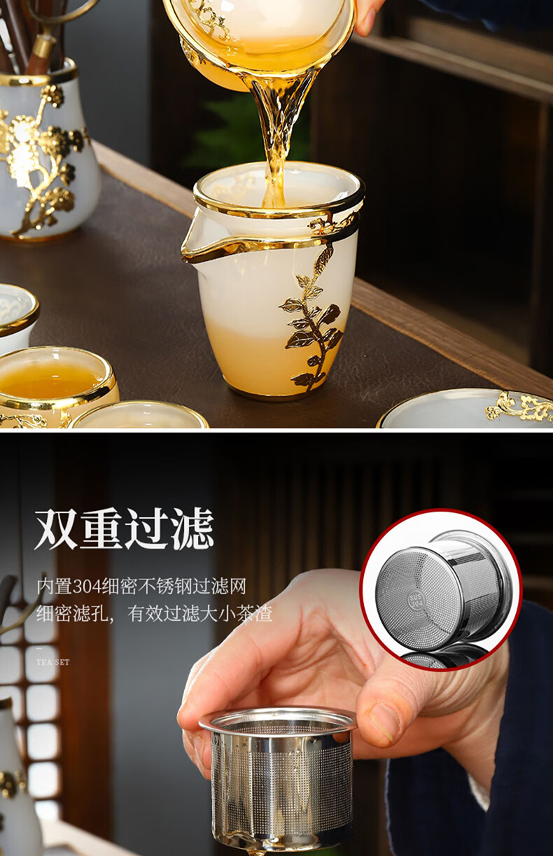 Chengyun Shangzun inlaid with gold and jade tea set, colored glaze pure handmade Kung Fu tea cup set, home office gift teapot cover bowl, colored glaze set (large set of 14 heads)