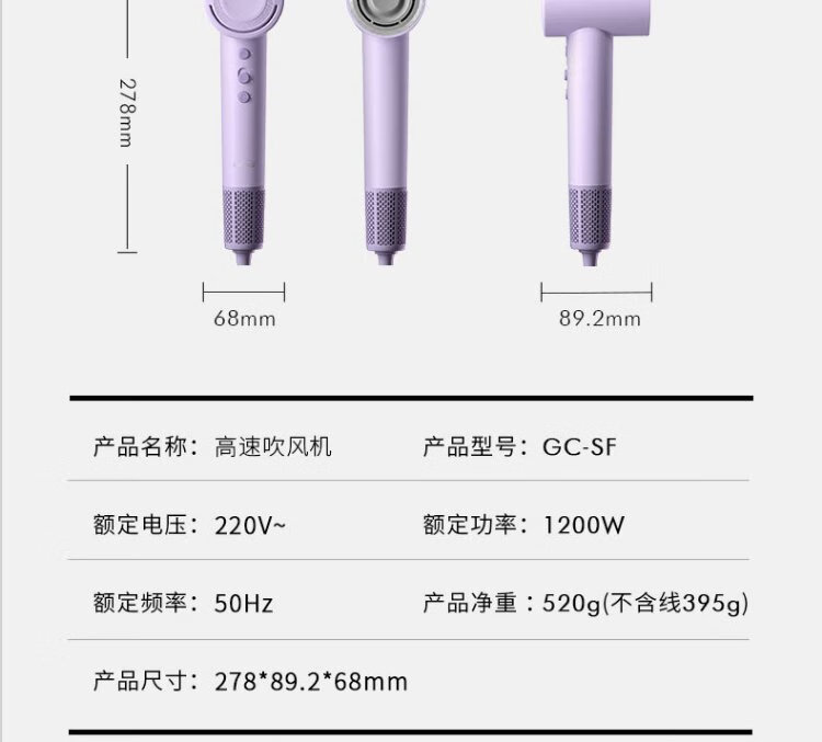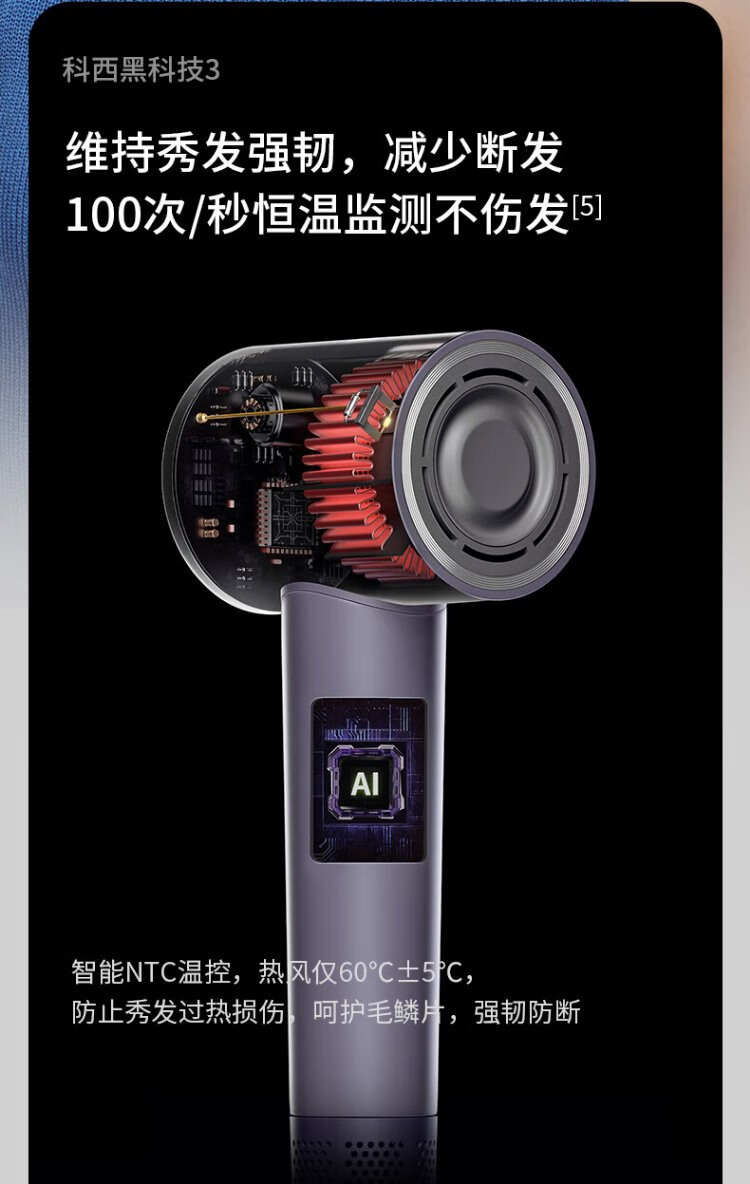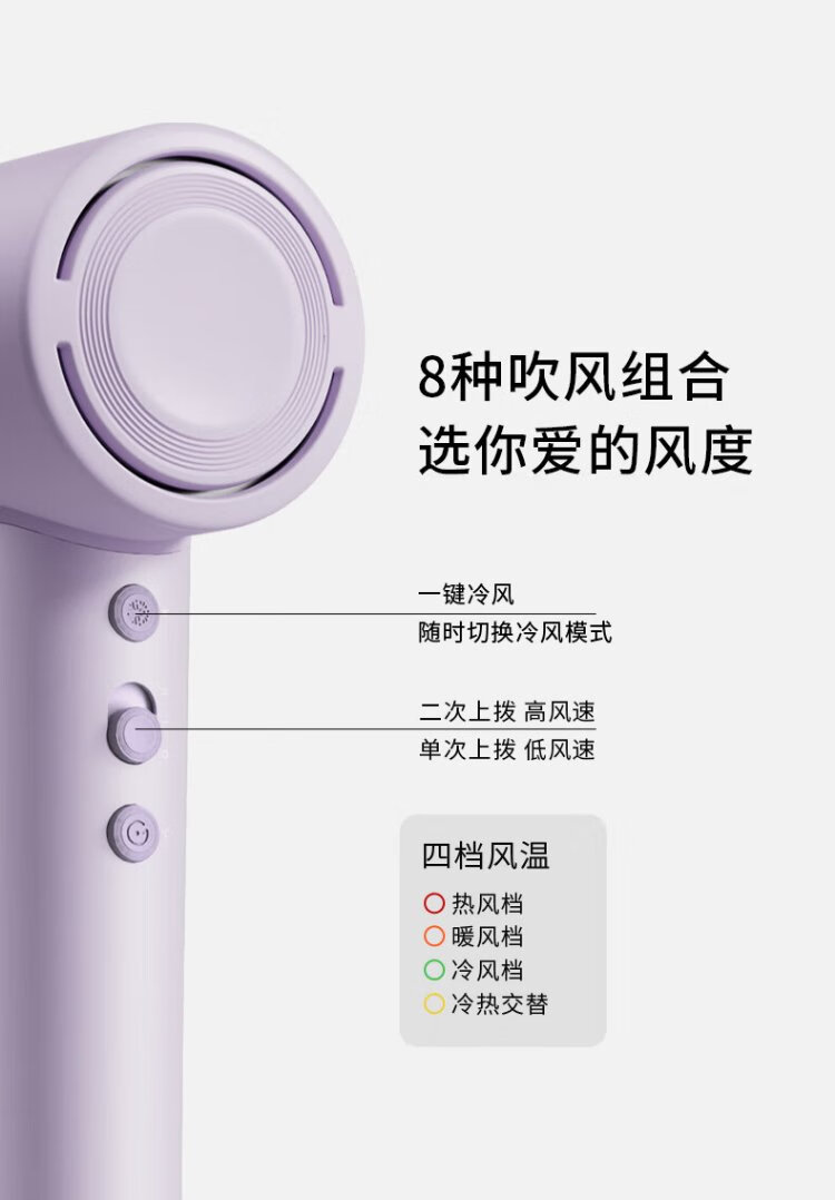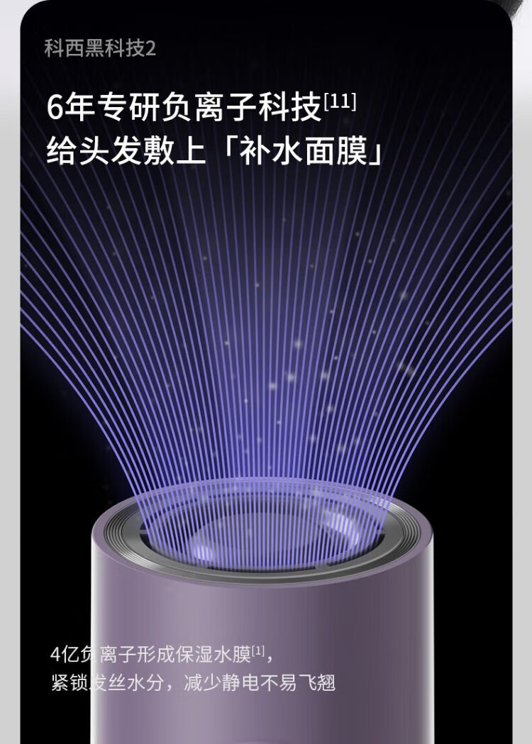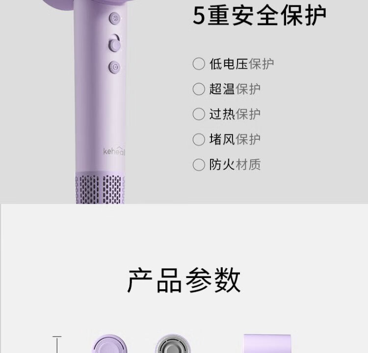 KEHEAL Water-light Plasma Hair Dryer 3.7 Billion Plasma Hair Care Pregnant Women and Children Home Low-temperature Quick-drying Hair Dryer Intelligent Temperature Control Hair Care Power-generating Hair Dryer VE2 Taro Purple