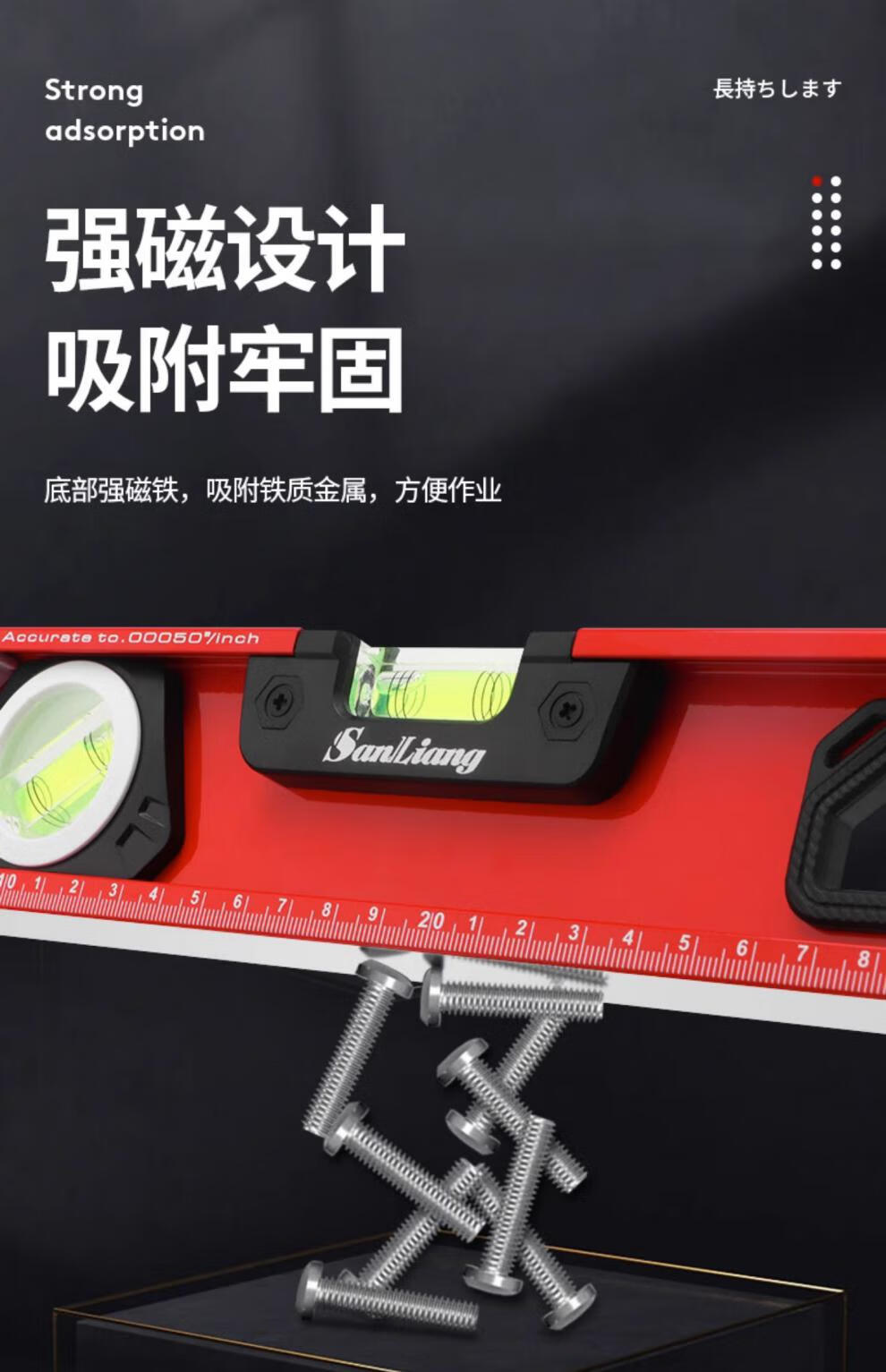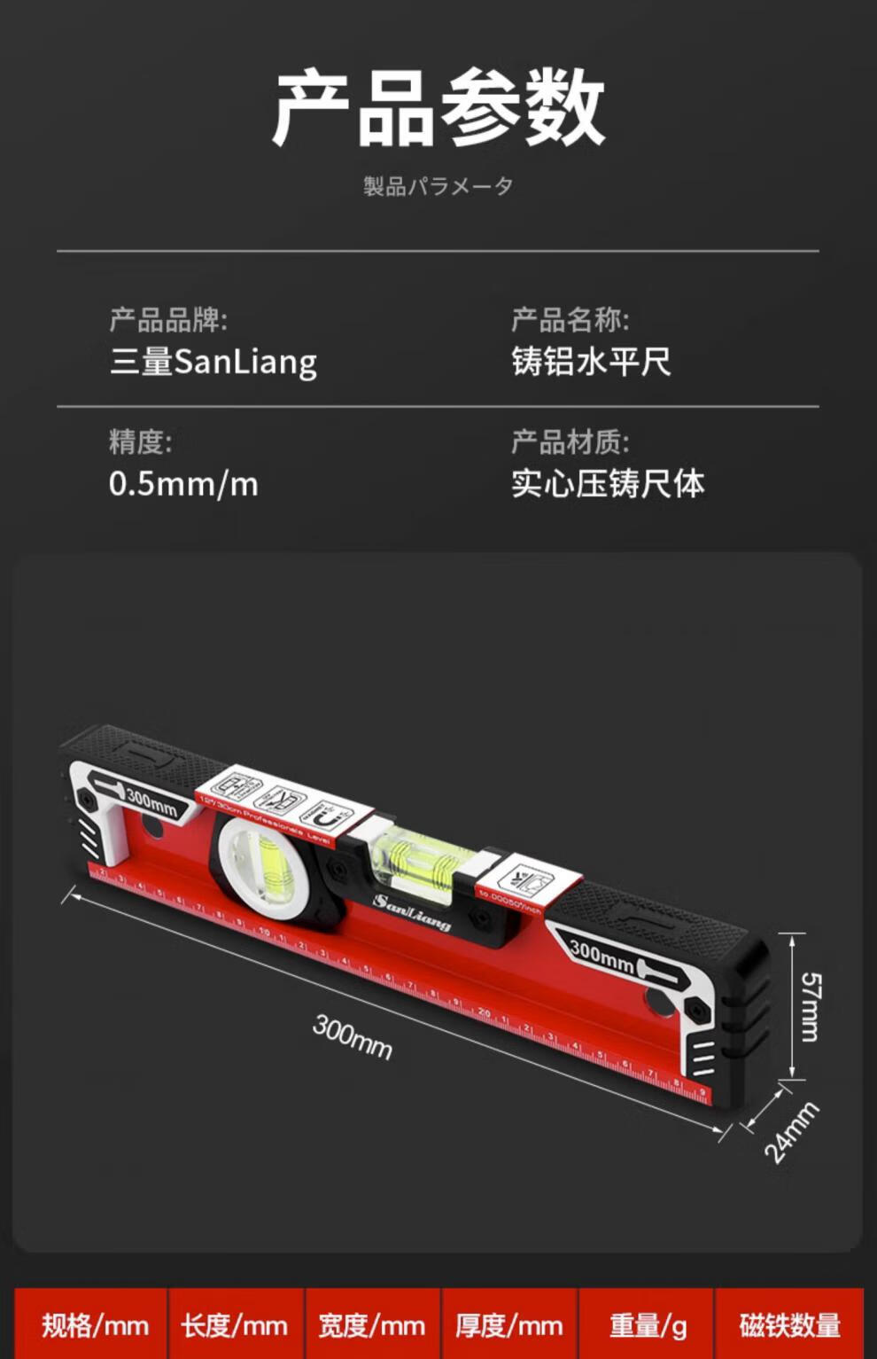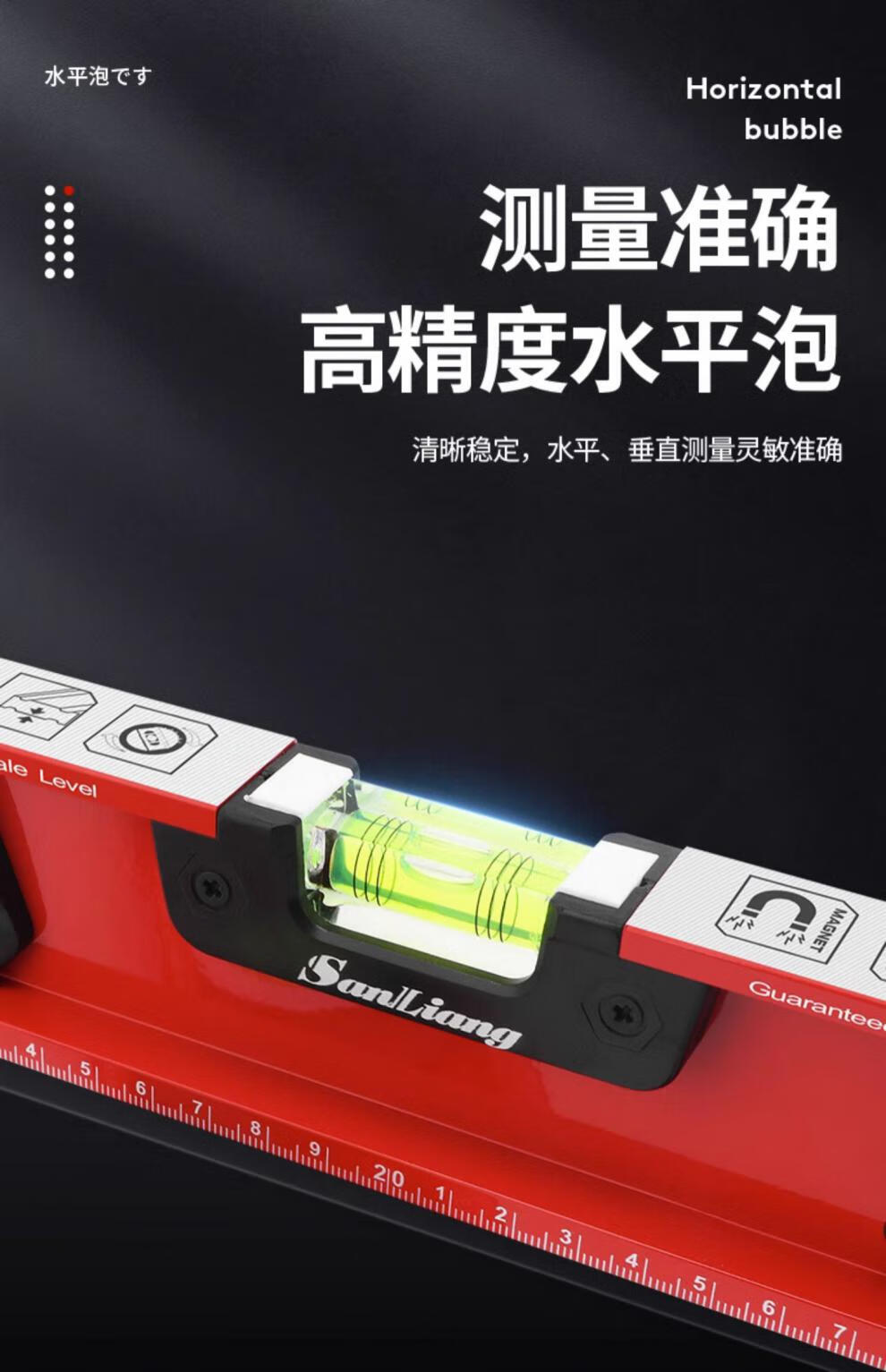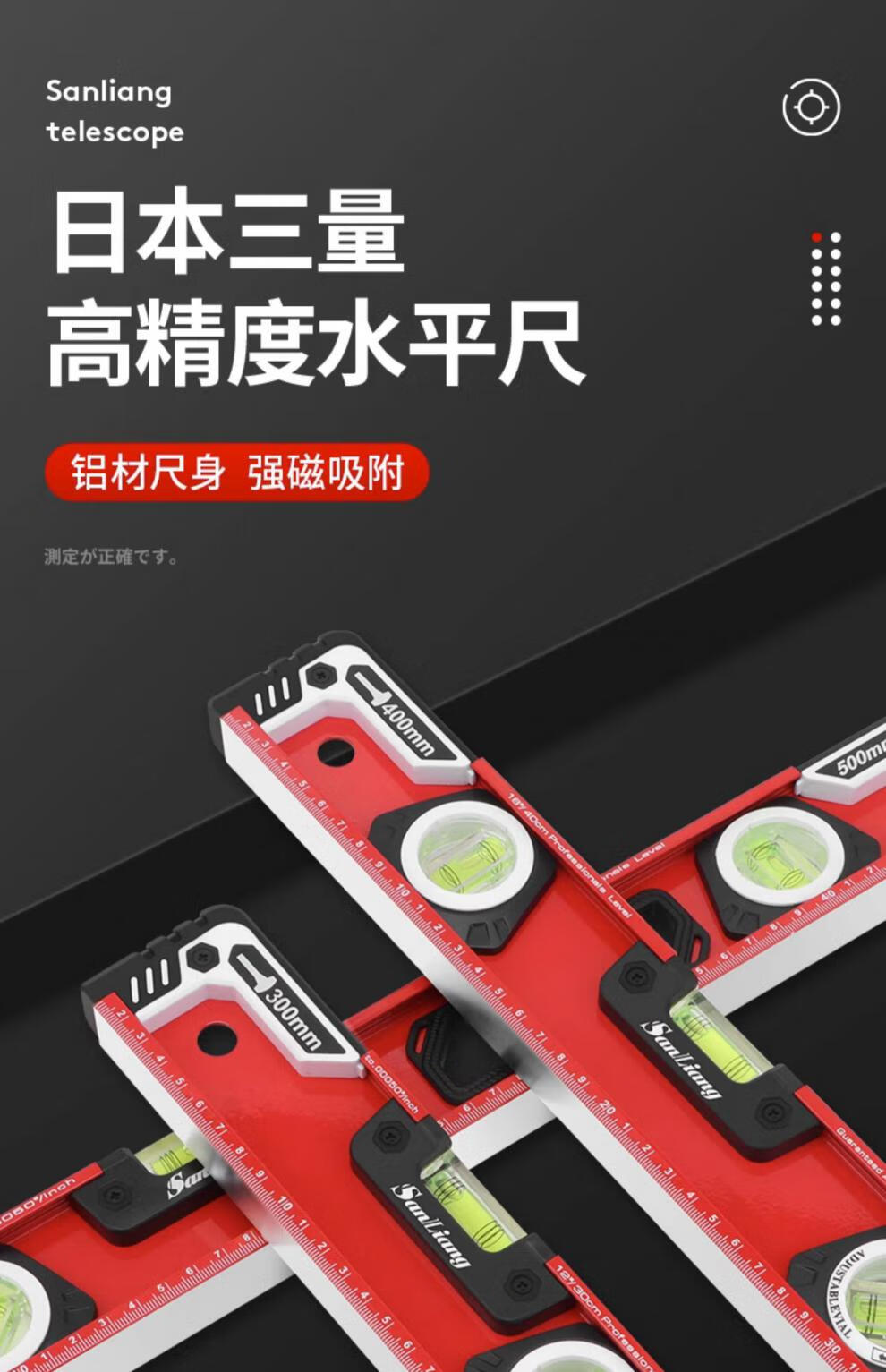 Sanliang Japanese high-precision level with magnets mini small magnetized ultra-thick aluminum 187-124 strong magnetic industrial grade 187-126 strong magnetic industrial grade 1000mm