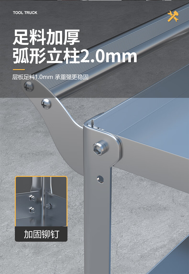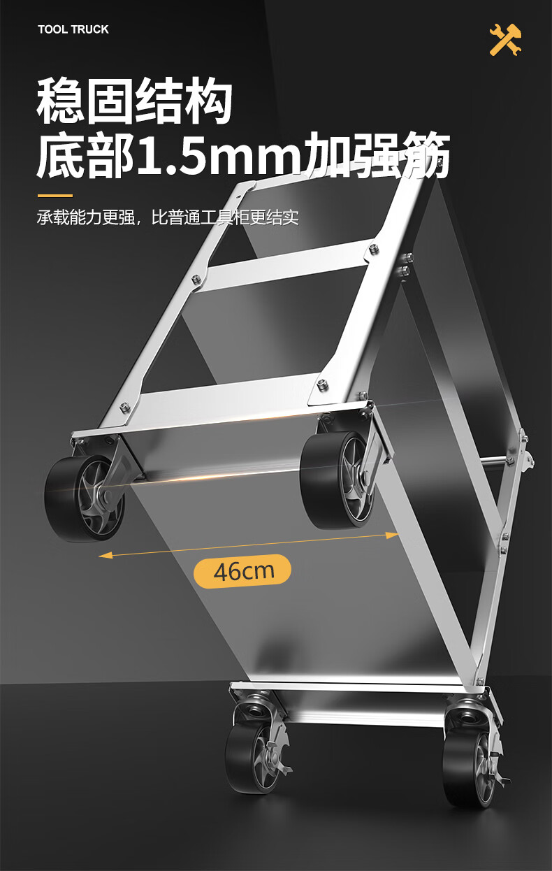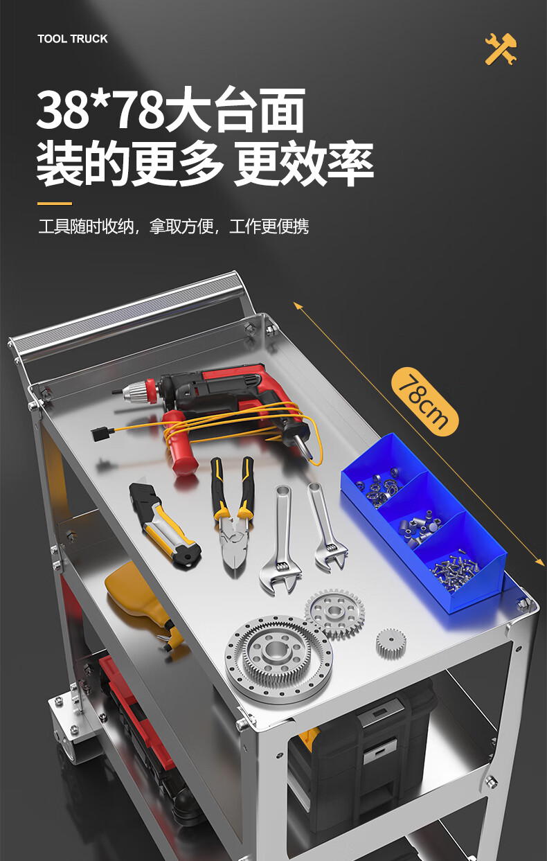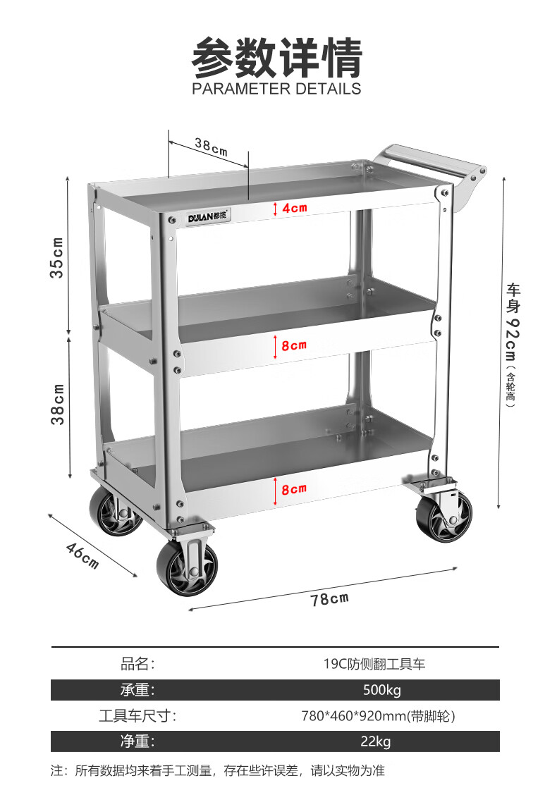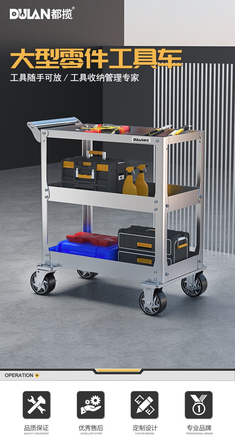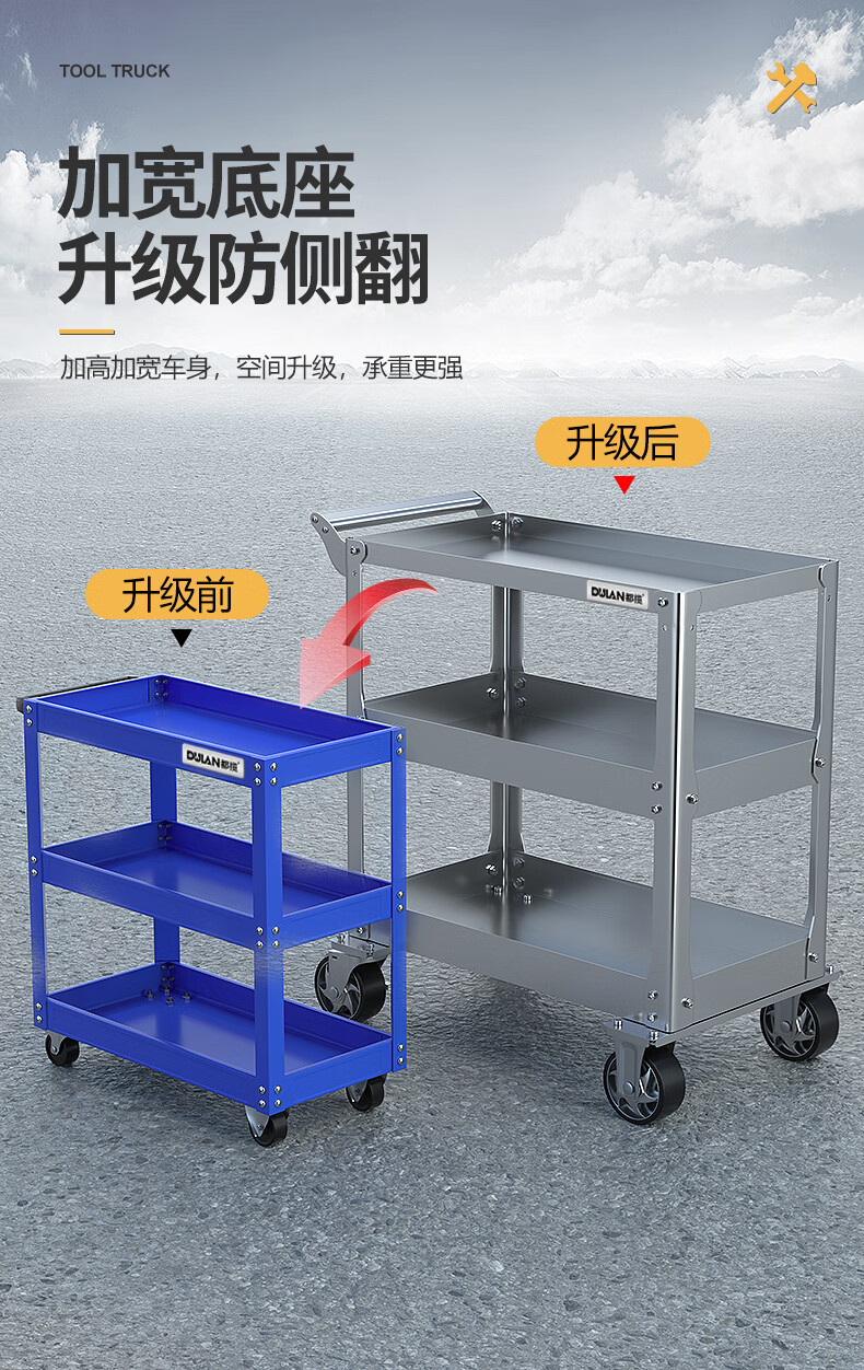 Dulan stainless steel tool cart three-layer thickened trolley repair auto repair shop multi-functional mobile heavy-duty trolley 19C flagship model (stainless steel)