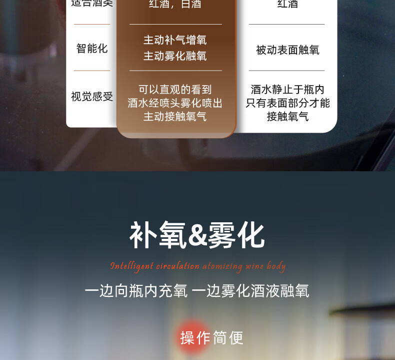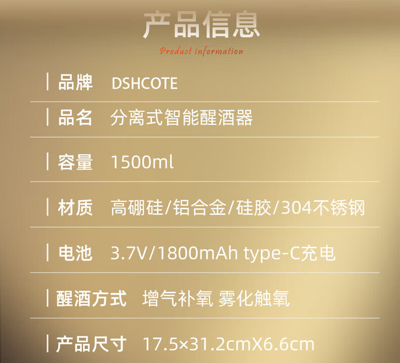 DSHCOTE Oxygenated Atomized Intelligent Wine Decanter Red Wine Electric Quick Wine Divider Light Luxury Glass Wine Set Home Smart Oxygenated Atomized Decanter Warm Red