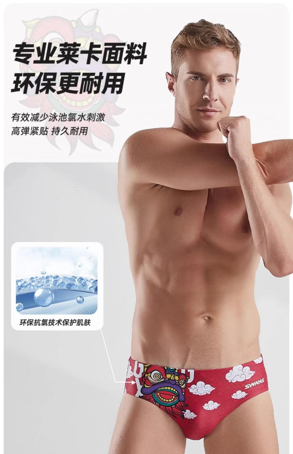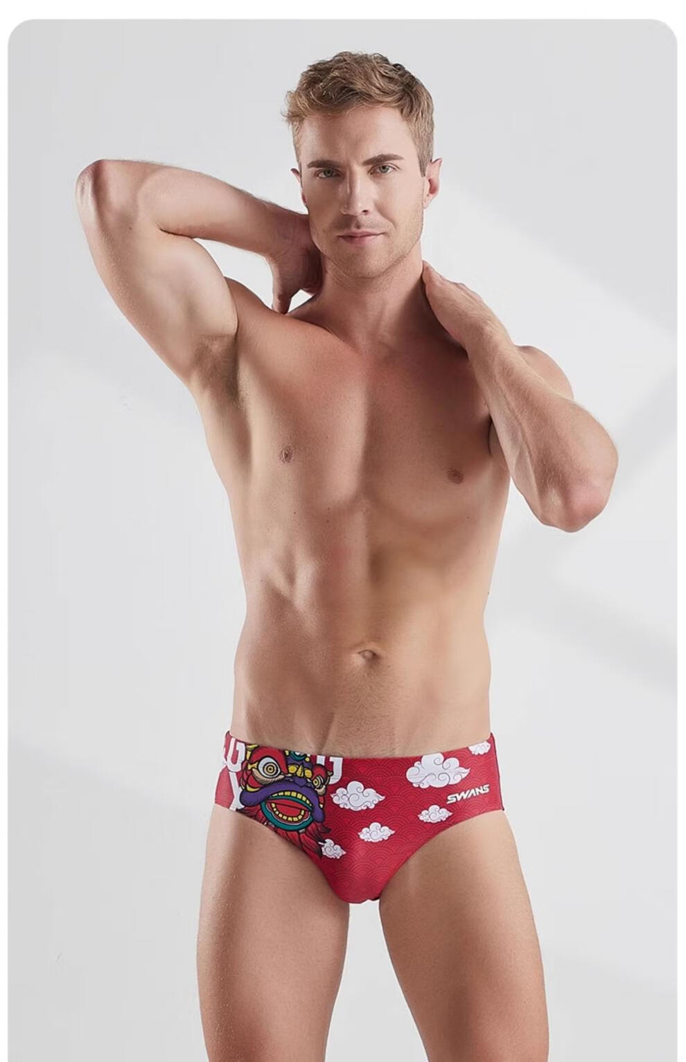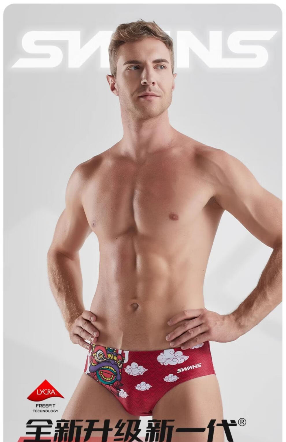 SWANS【官方直销】swans男士泳裤训练运动三角速干竞速抗氯游泳裤游泳 醒狮红 M 【身高 165-170cm 体重55-60KG