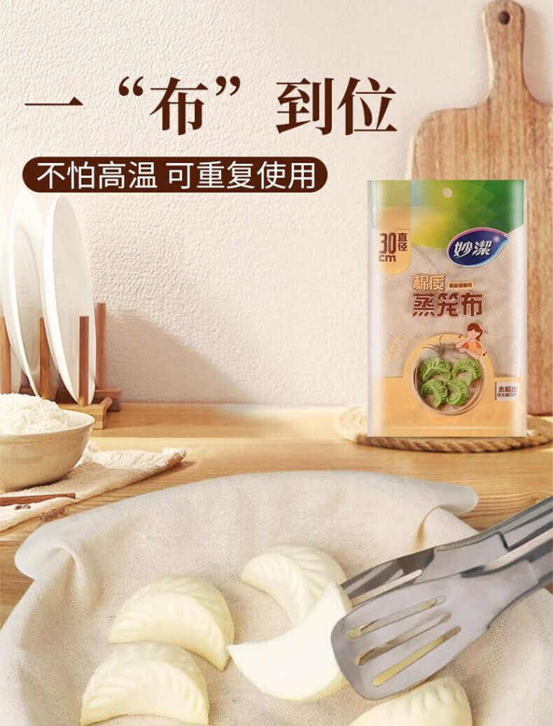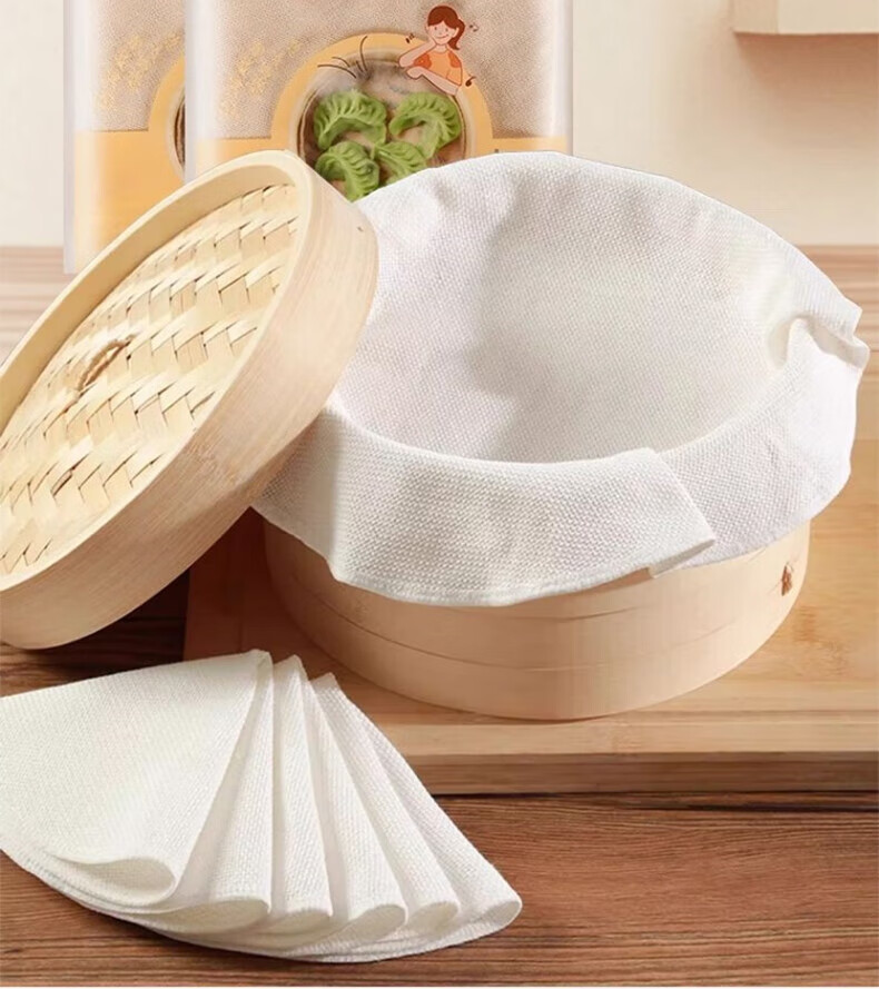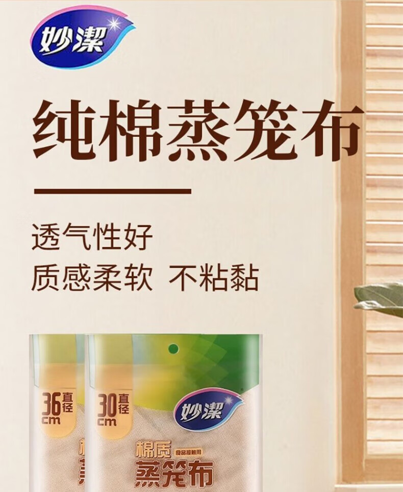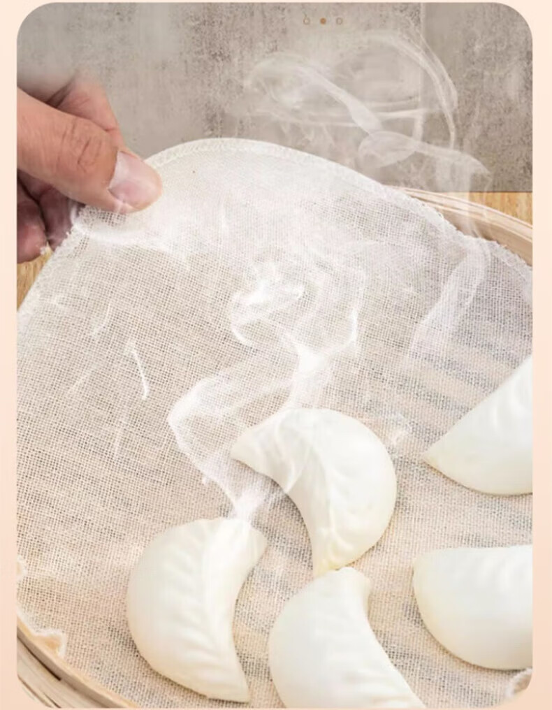 Miaojie food-grade pure cotton steamer cloth for household steamed buns and buns gauze steamer cloth is not easy to stick and can be reused (diameter 36CM) 1 pack of 2 pieces