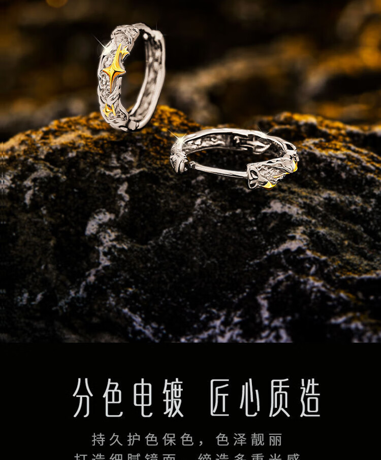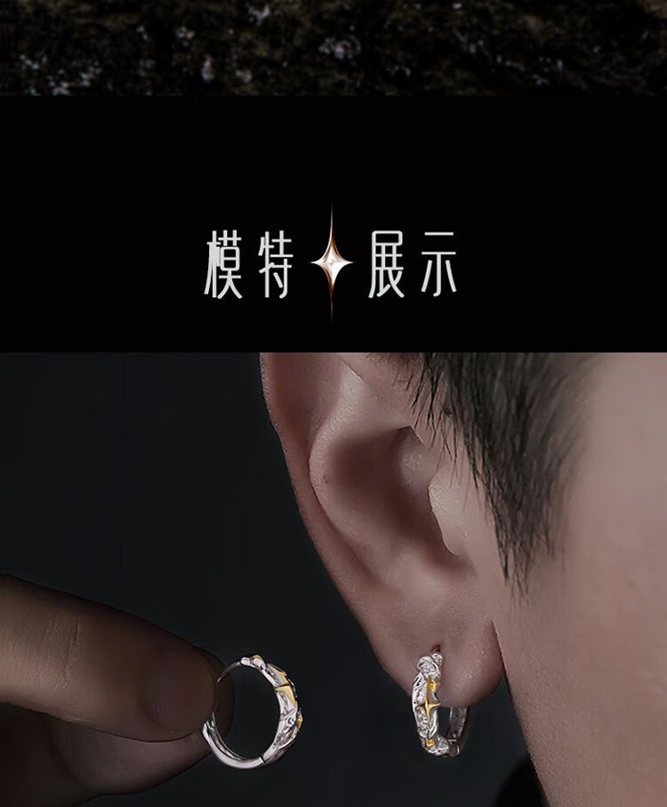 Mansheng S925 Silver Lone Star Earrings Men's Trendy Hip-Hop Men's Earrings Personalized Handsome Trendy Men's Earrings Gift for Boyfriend Lone Star Earrings Single