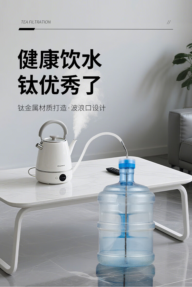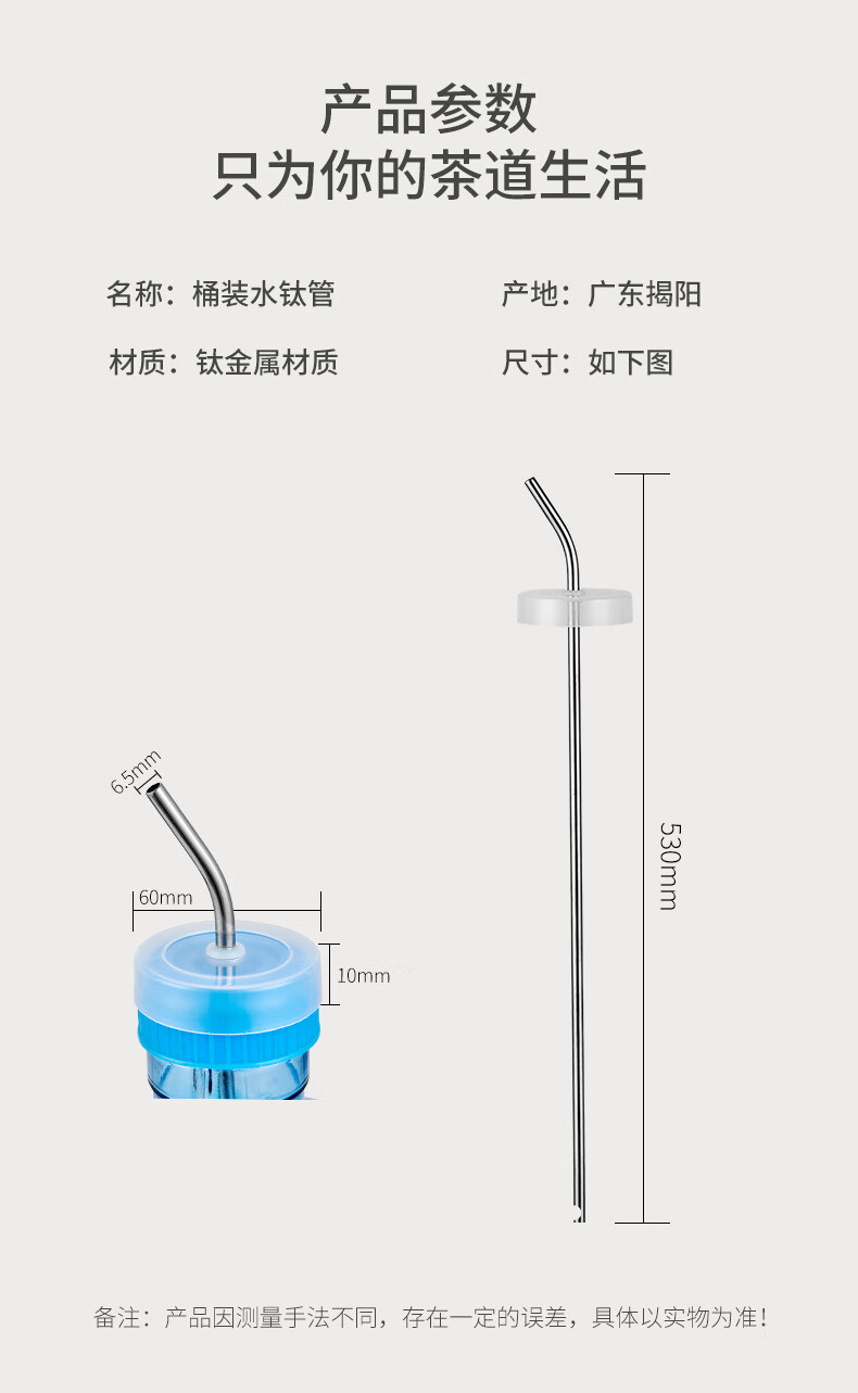 Pure titanium barreled water pipe, countersunk suction pipe, filter, high-end tea set accessories, tea tray, electric tea stove, suction pipe, titanium pipe bend (one piece) separate pipe