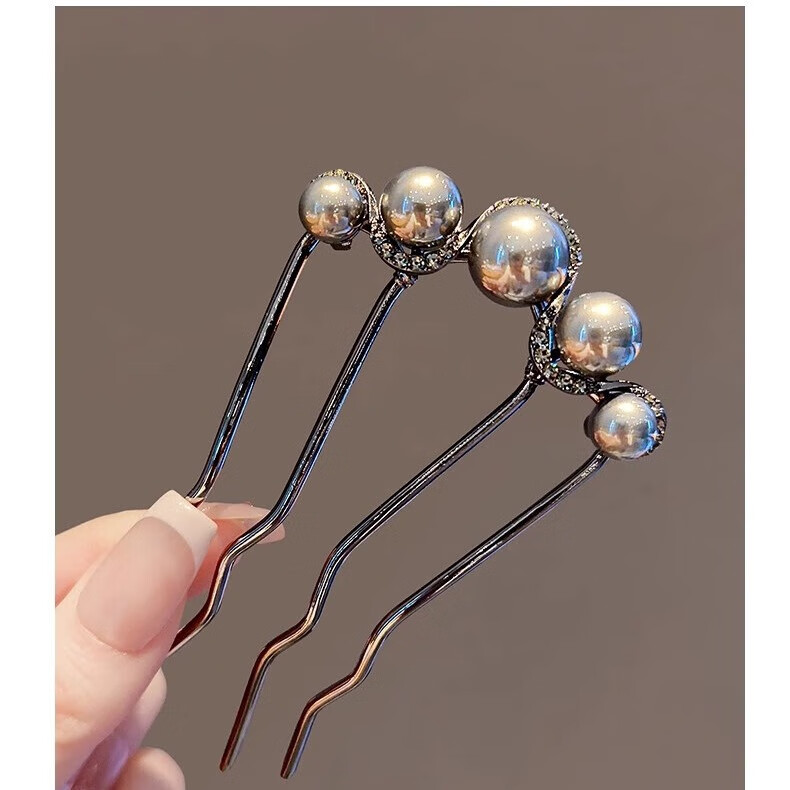 Hairpin U-shaped hairpin artifact hairpin hairpin for women pearl four-tooth comb U-shaped clip ball hair comb hairpin pearl black