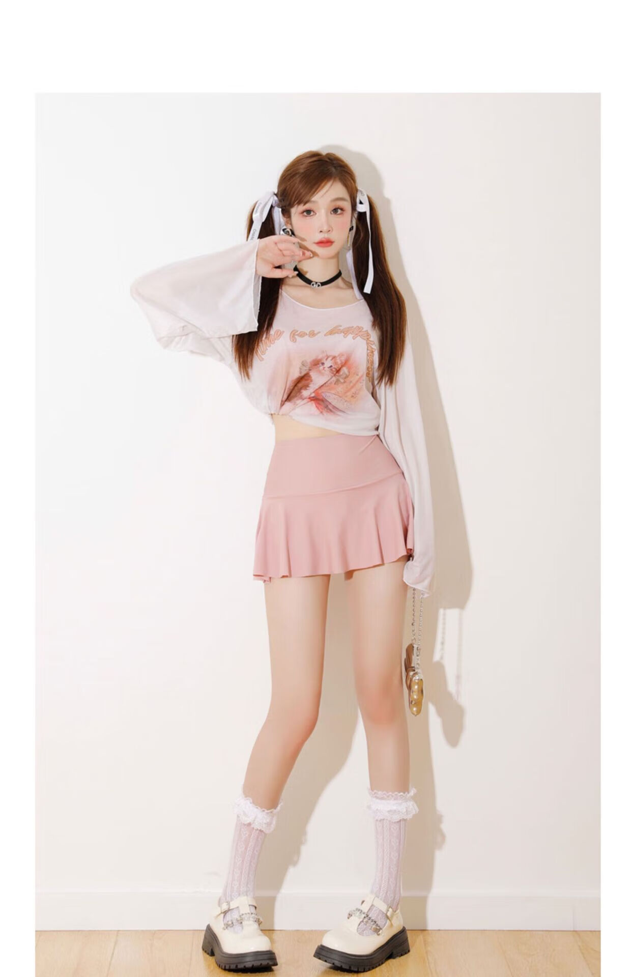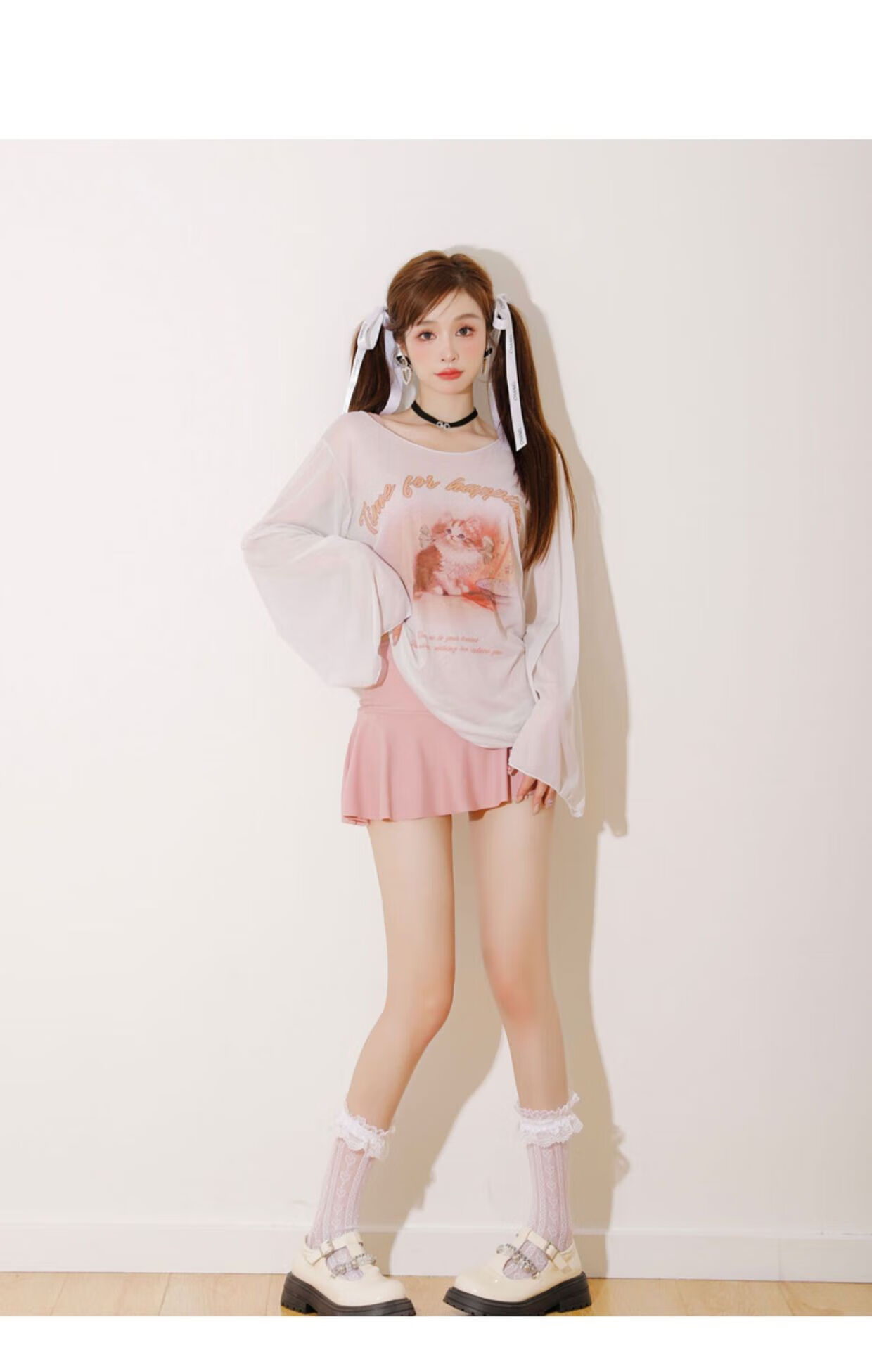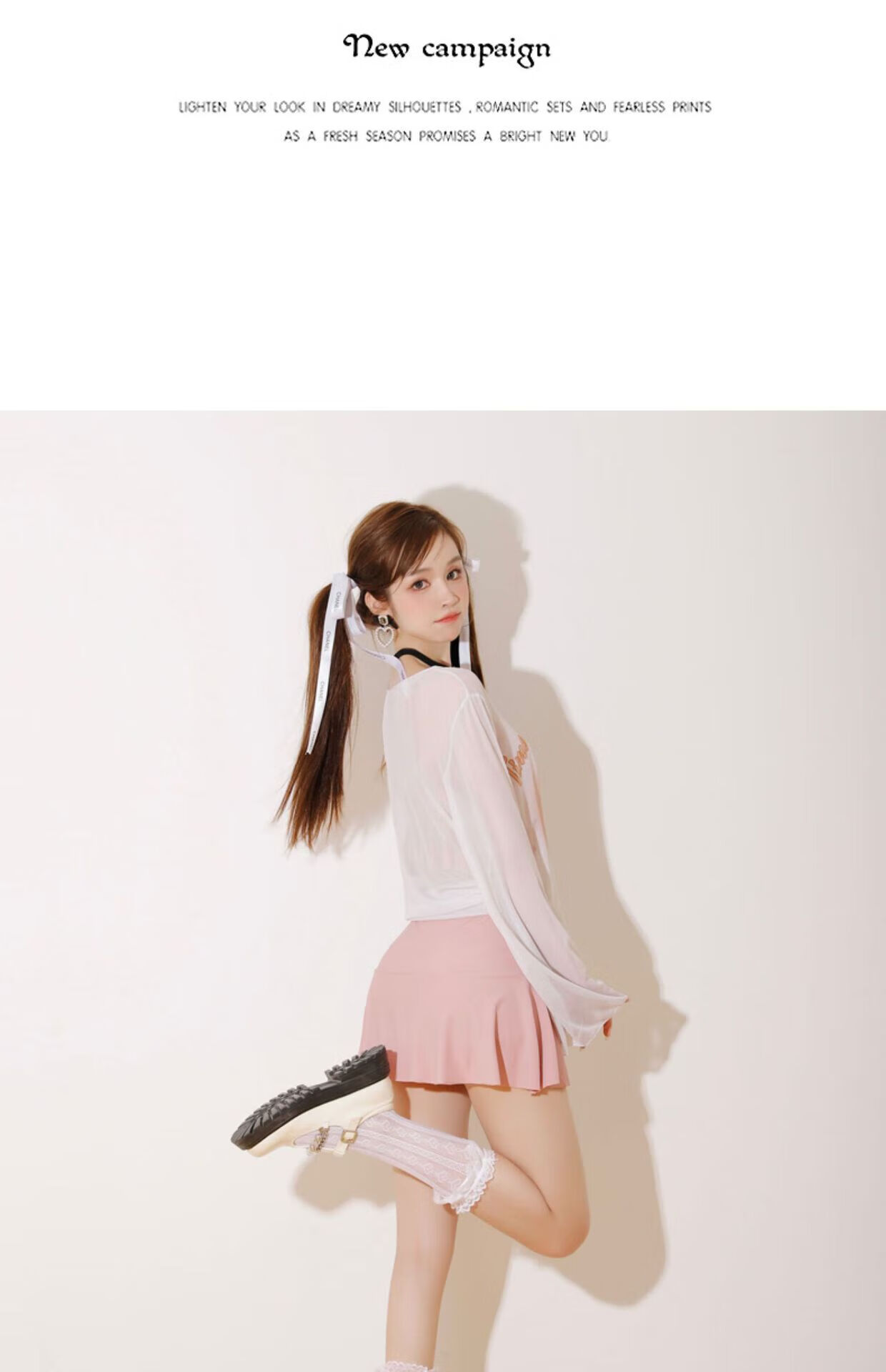 Lugeli swimsuit for women, conservative split long-sleeved blouse, skirt style, sun protection, flesh-covering, slimming, hot spring vacation, simple style swimsuit, three-piece set, pink, one size fits all, 80-120Jin Jin is equal to 0.5 kg, can be worn
