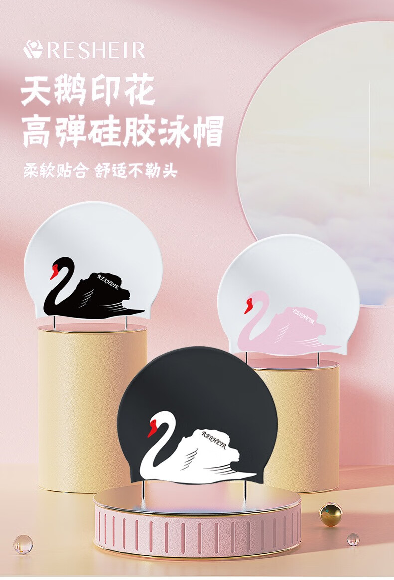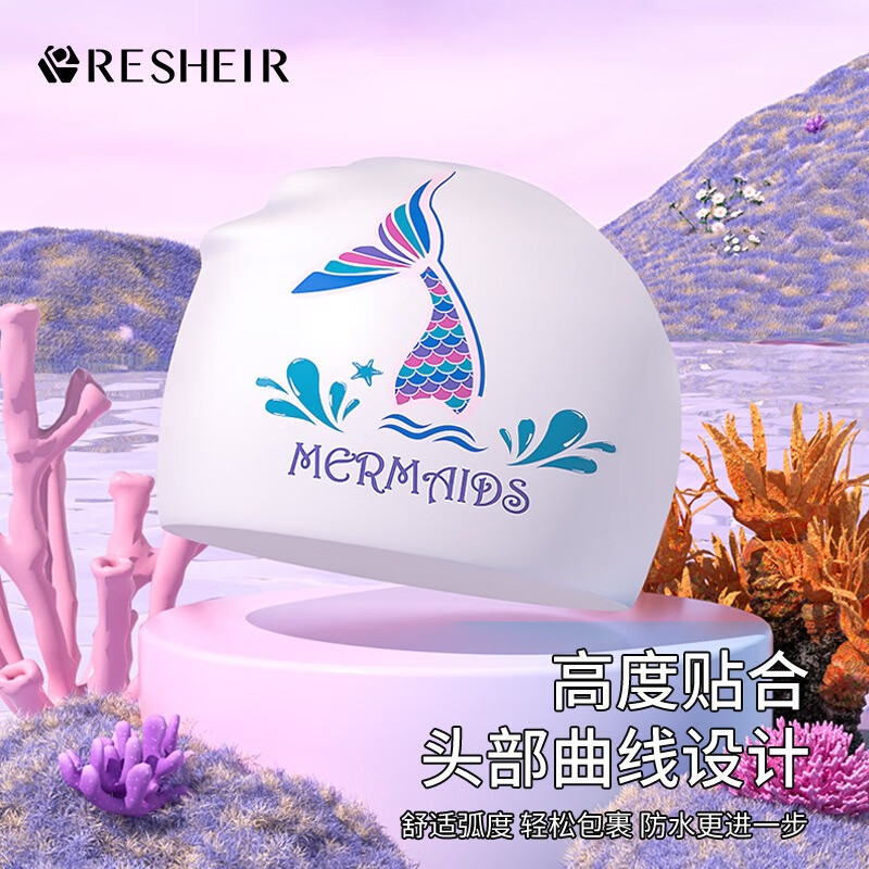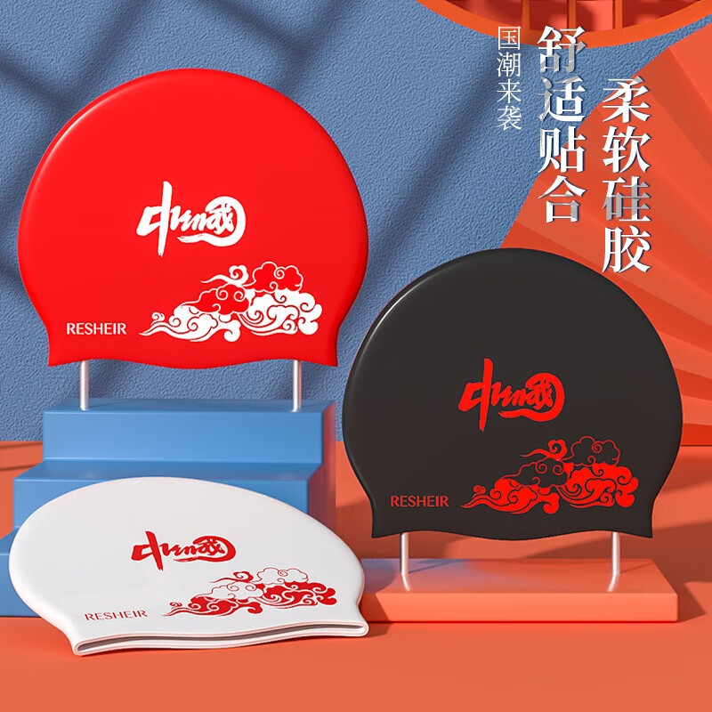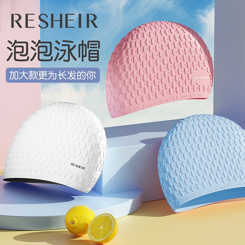 Chuangjingyi chooses silicone swimming cap for women, plus size, waterproof, non-stretching, long hair, fashionable and comfortable, ear protection, adult women's swimming cap, Luyang silicone swimming cap + swimming goggles + nose clip earplugs (set