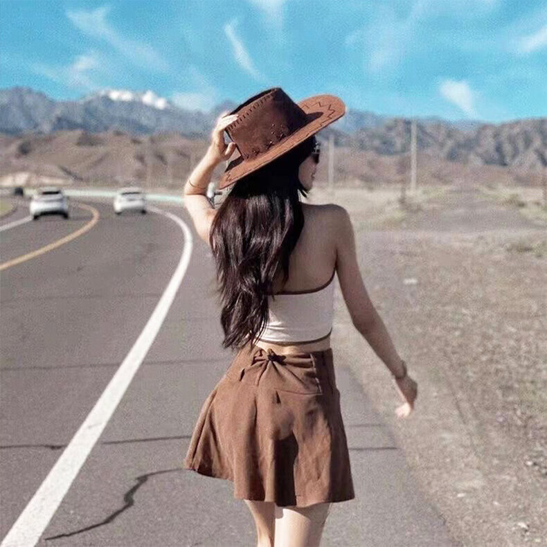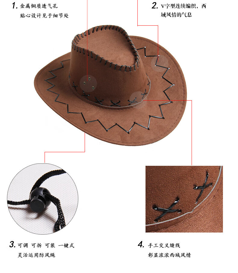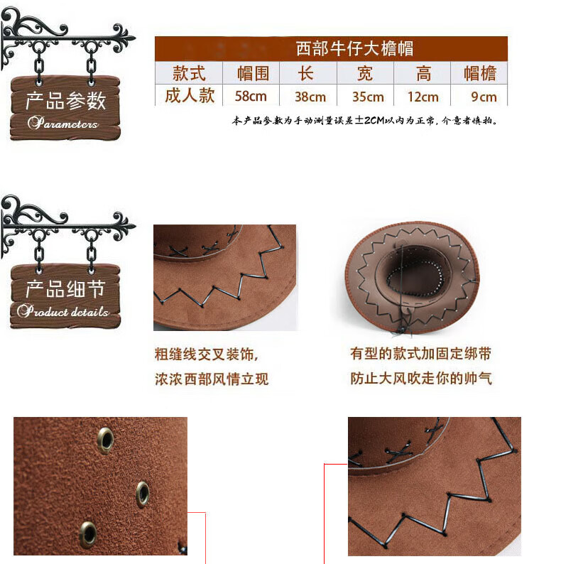 Quchen Western Cowboy Hat Prairie Hat Cowboy Hat Retro Cowboy Hat Desert Hat Cowboy Hat Men's Xinjiang Hat Brown Cowboy Hat Light and breathable, large brim sunshade