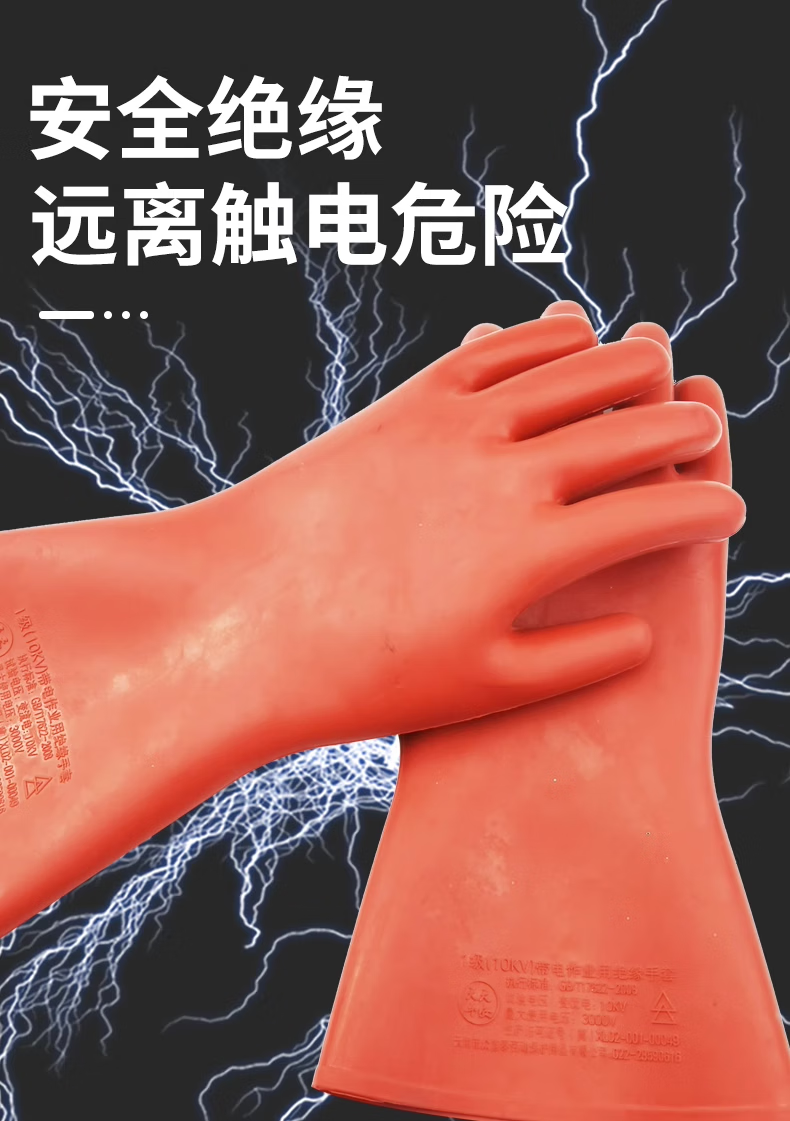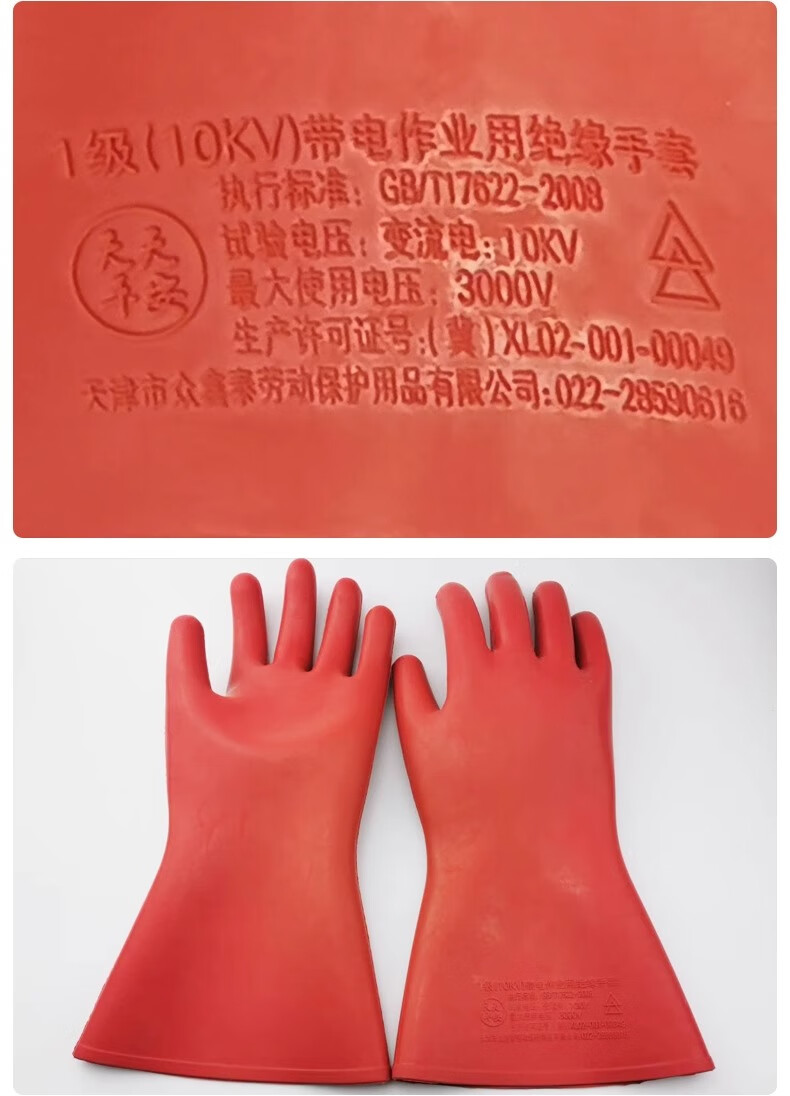 Insulating gloves 10kv electricians special 12kv rubber anti-shock high voltage insulation 35kv thickened live work 12kv hand type high voltage insulating gloves one size
