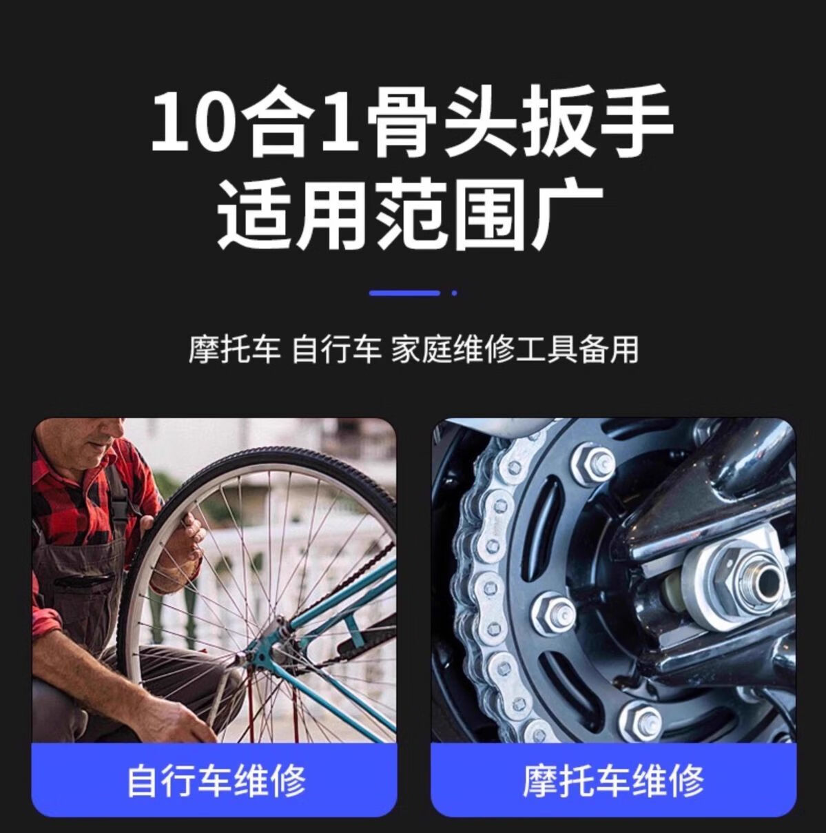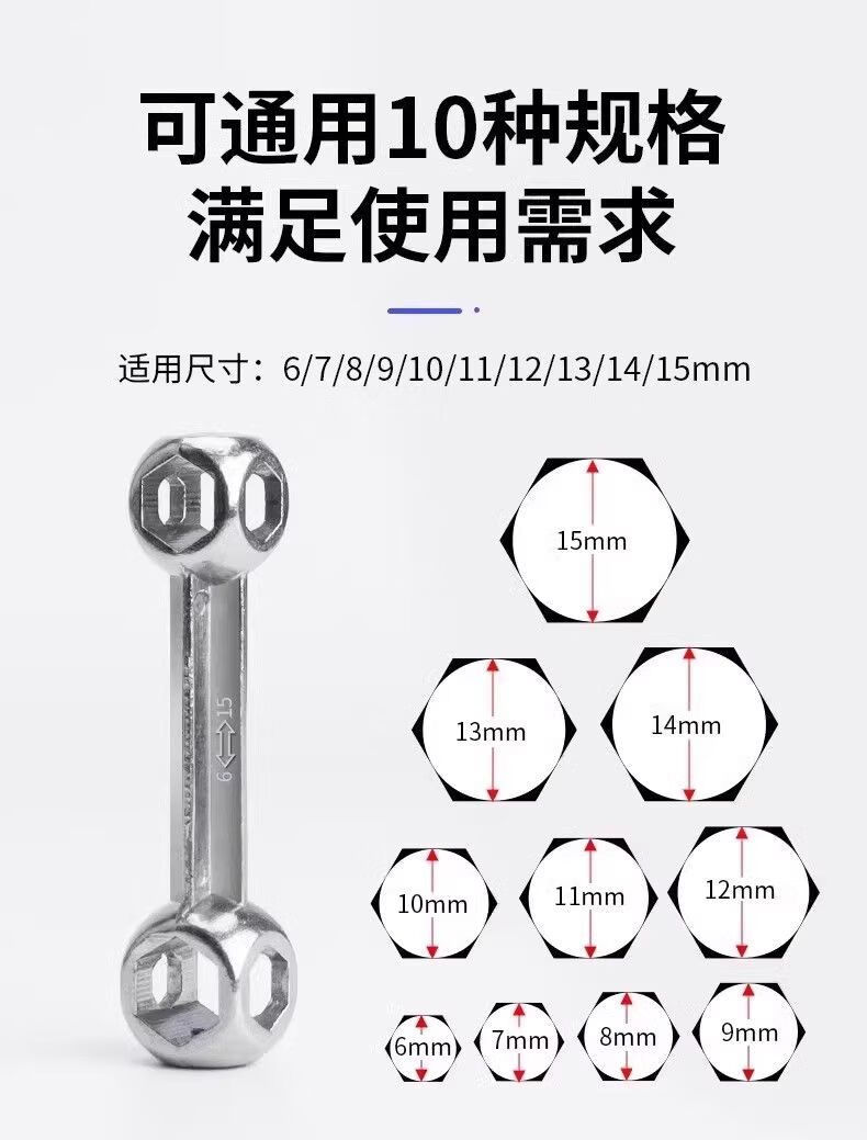 New German multifunctional universal dog bone wrench multi-head wrench repair tool cutting machine multi-purpose universal bone wrench twist screw imported from Germany special hard steel 10 in 1 2 pieces