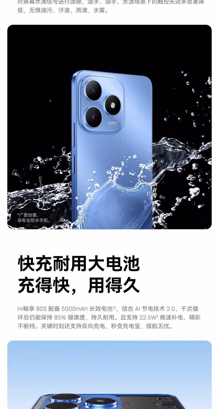 Huawei mobile phone, Huawei Hongmeng, drop-resistant and waterproof, infrared remote control, Smart Enjoy 80s HI series, waterproof and drop-resistant, 22.5W fast charge + 5000mAh large battery, Obsidian Black, 6GB + 128GB, full Netcom 5G, official standard, free quarterly broken screen insurance + 2-year warranty