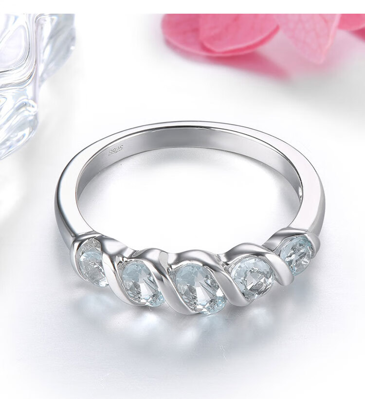 CAJJ Francois Aquamarine Ring 925 Silver Natural Colored Treasure Simple Daily Gift Hong Kong 17#