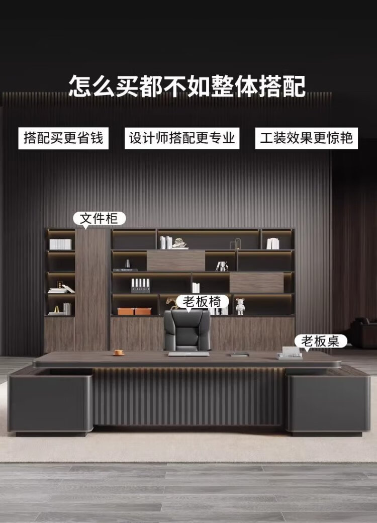 Yusong boss desk, high-end CEO office desk and chair combination, light luxury manager desk, executive desk, simple and modern 1.8m single cabinet boss desk