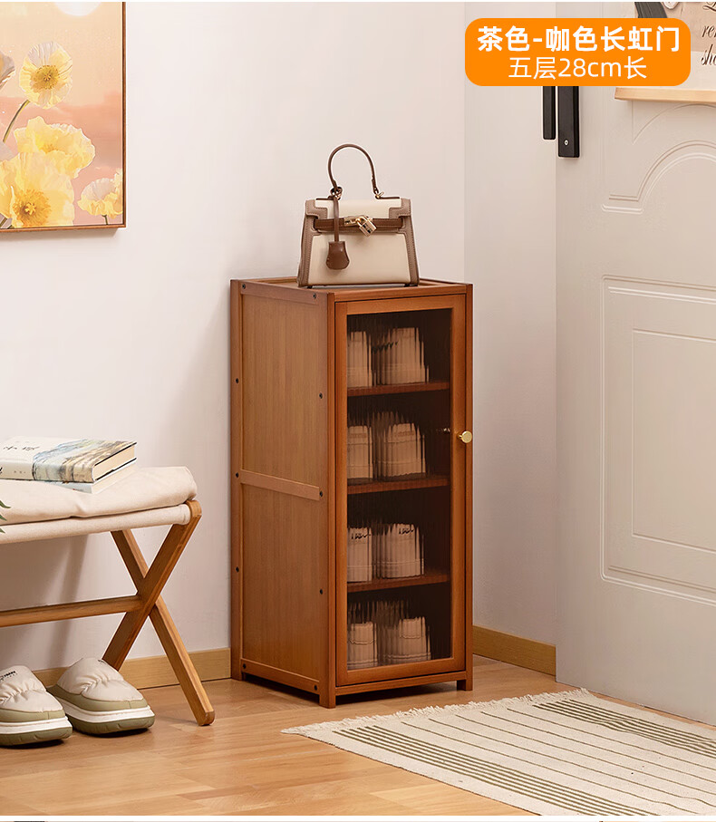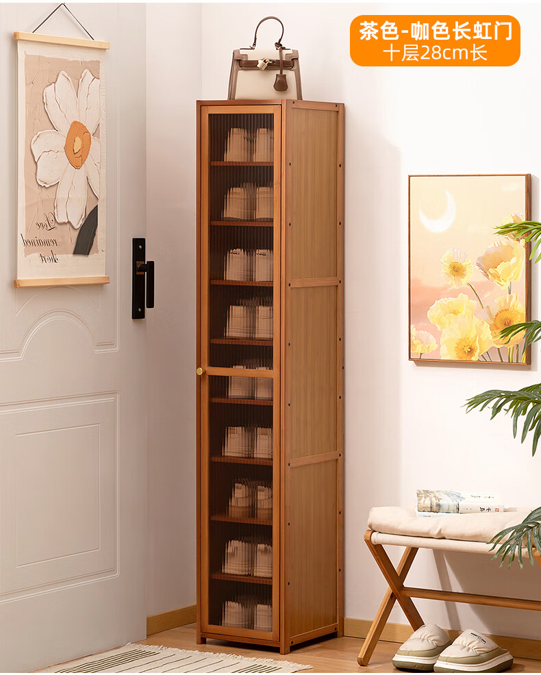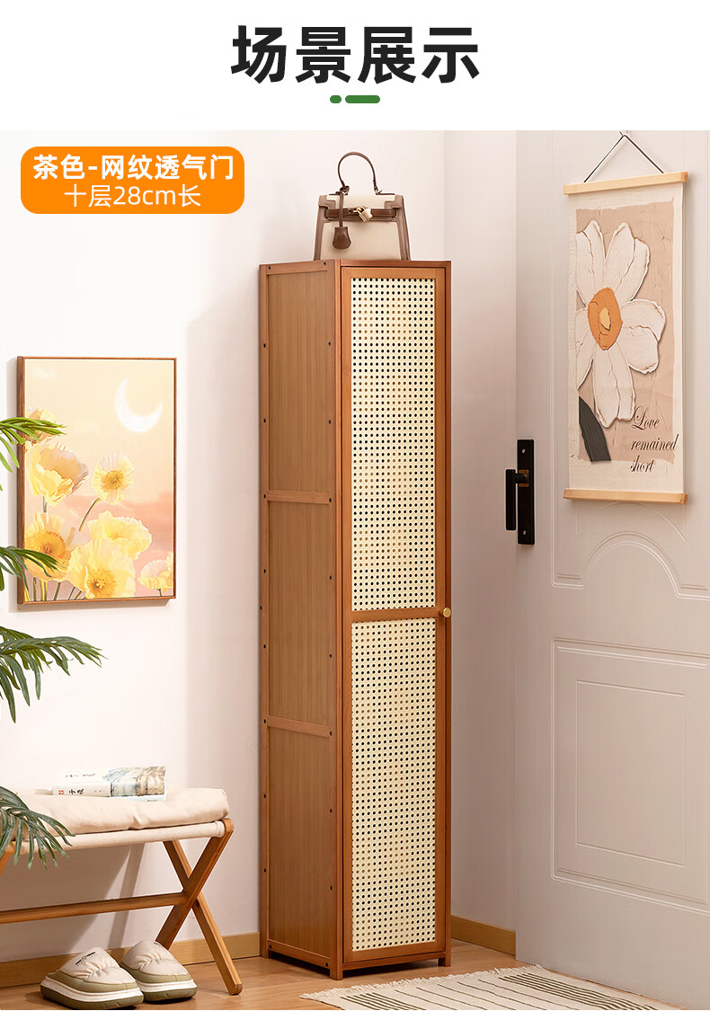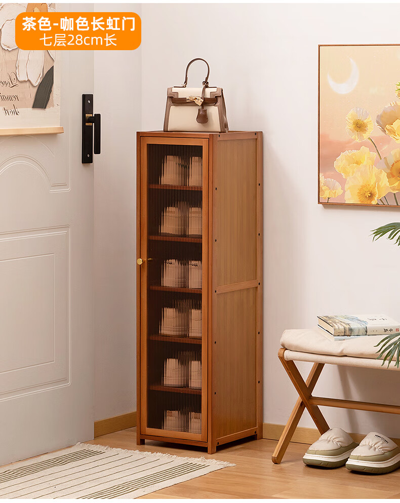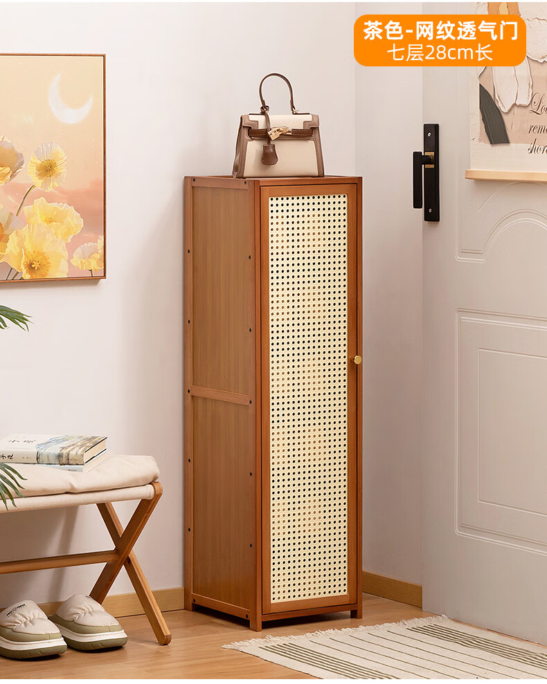 Trojan shoe cabinet door entry cabinet integrated wall-mounted home shoe rack extremely narrow multi-layer entrance cabinet living room storage partition cabinet mesh breathable door brown-seven layers 28 long
