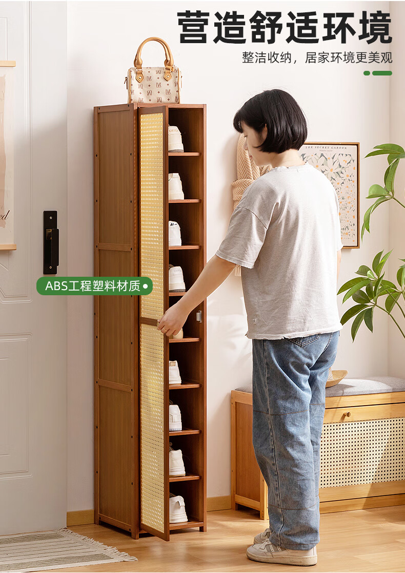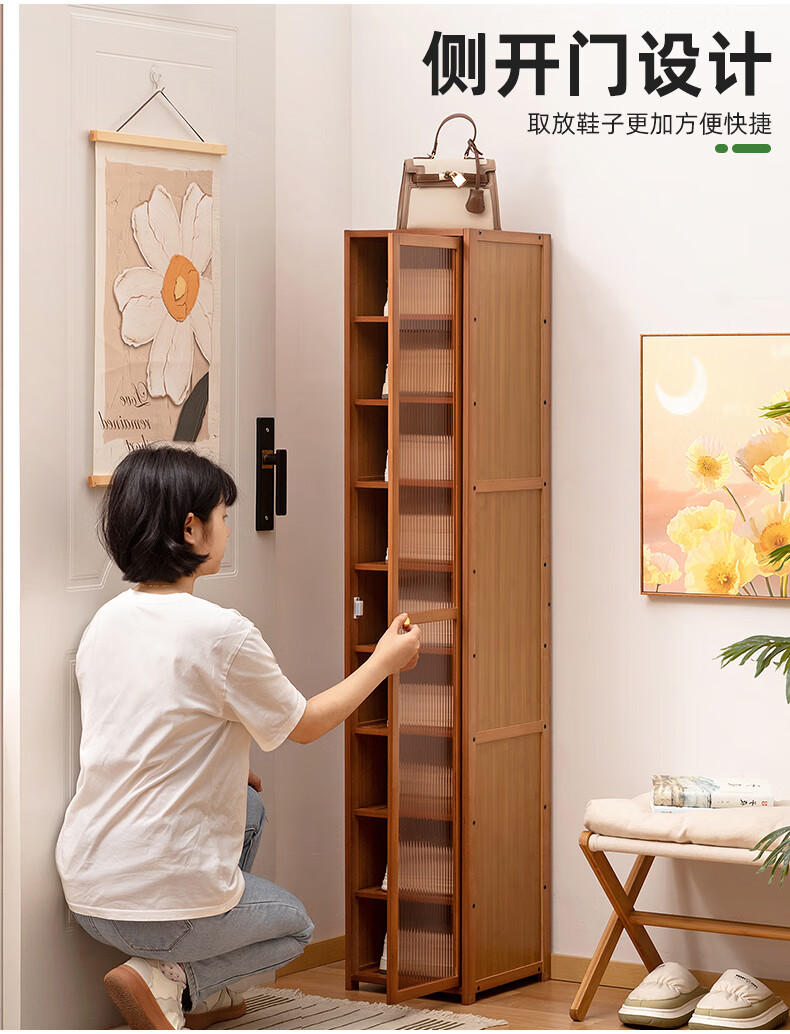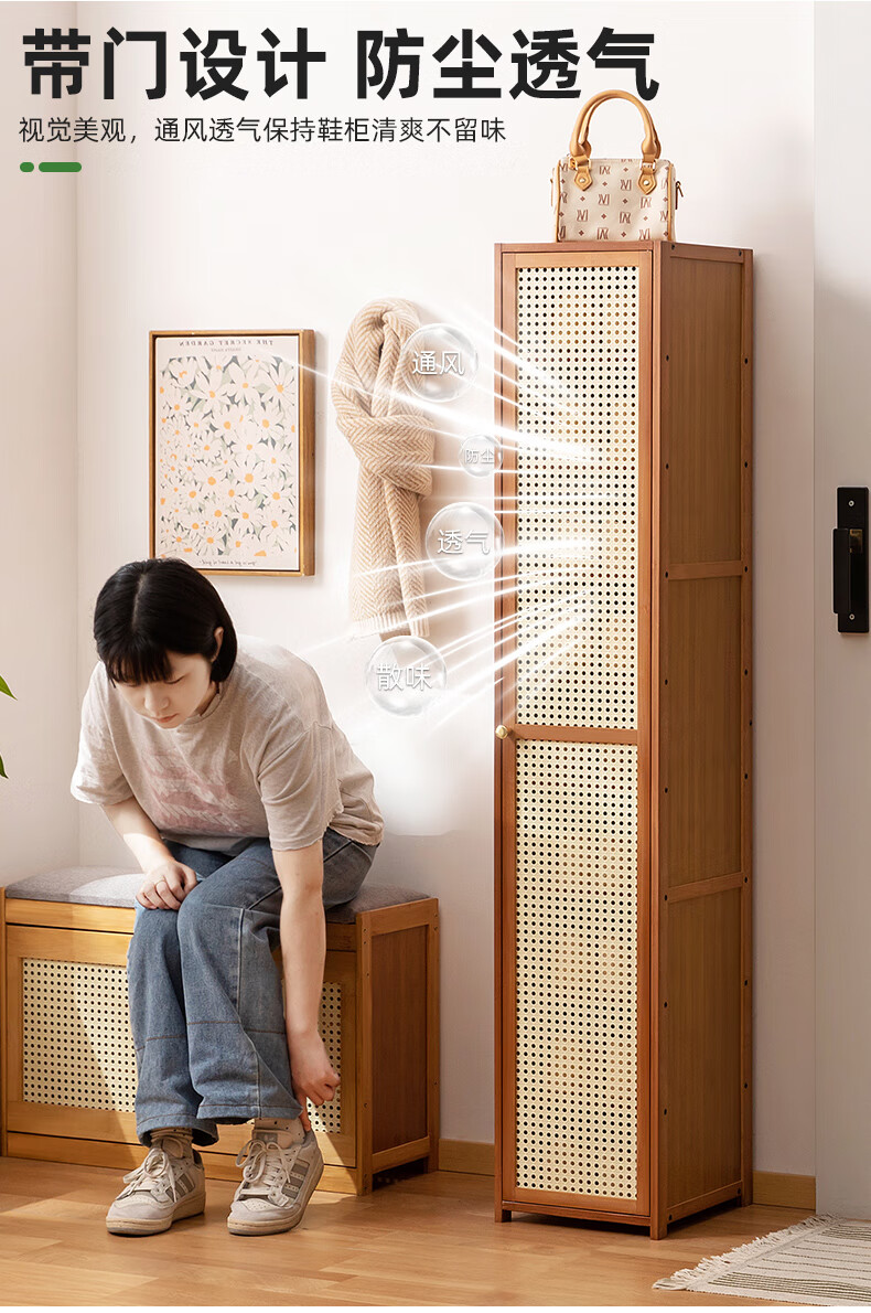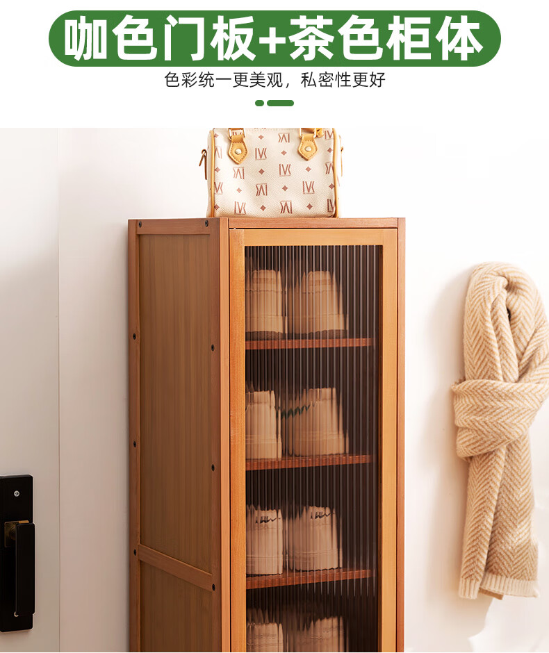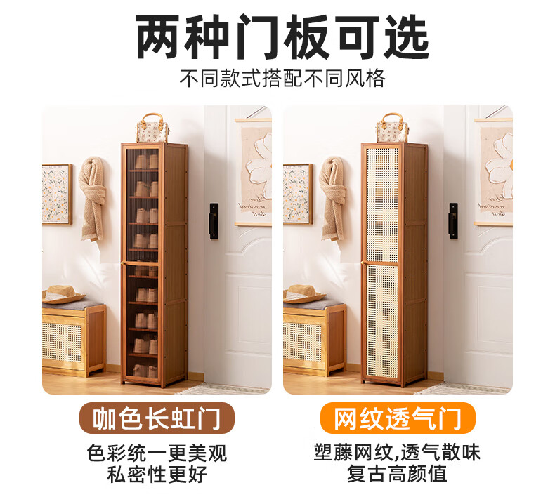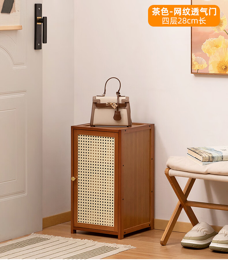 Trojan shoe cabinet door entry cabinet integrated wall-mounted home shoe rack extremely narrow multi-layer entrance cabinet living room storage partition cabinet mesh breathable door brown-seven layers 28 long