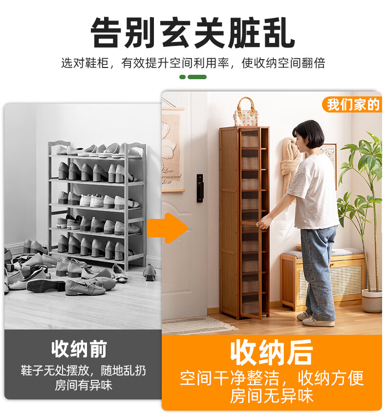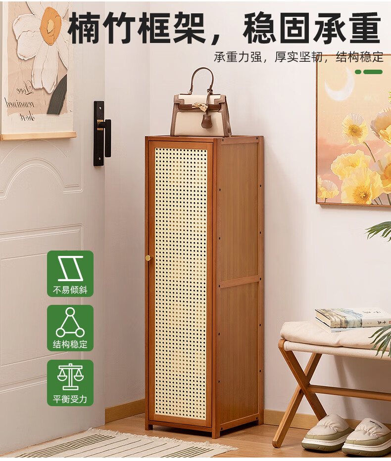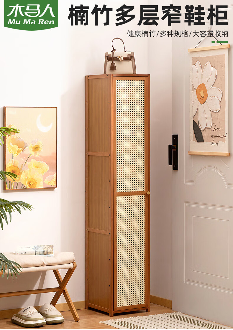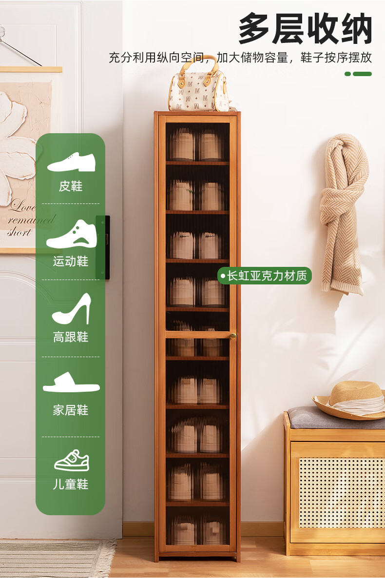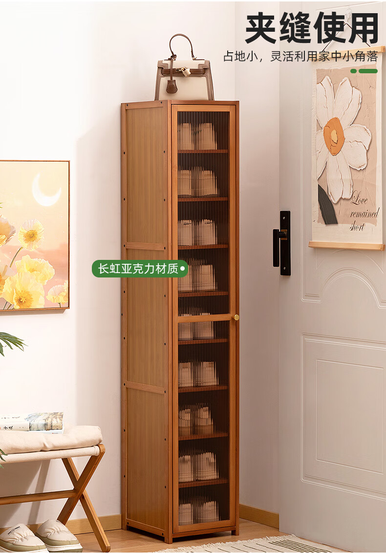Trojan shoe cabinet door entry cabinet integrated wall-mounted home shoe rack extremely narrow multi-layer entrance cabinet living room storage partition cabinet mesh breathable door brown-seven layers 28 long
