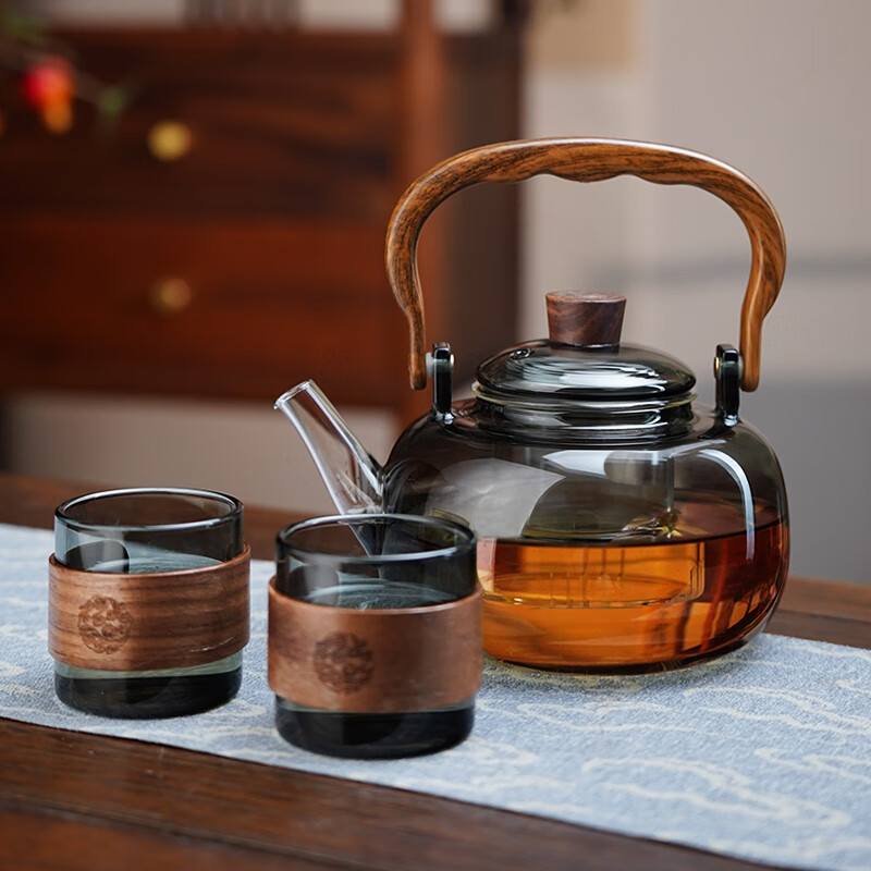 Full glass teapot, thickened kettle, glass teapot, large capacity lifting beam teapot, health pot, teapot, wooden shadow teapot