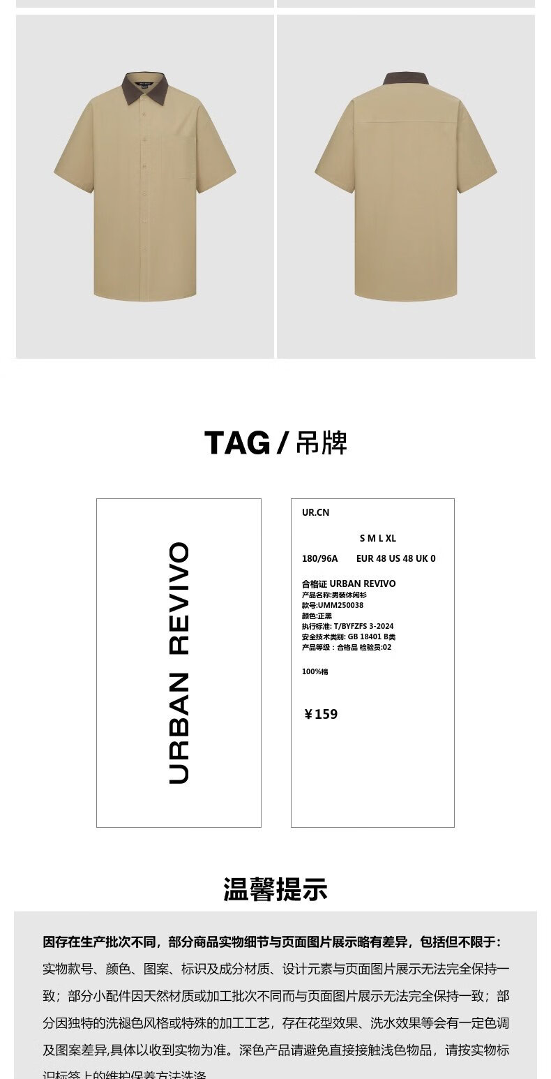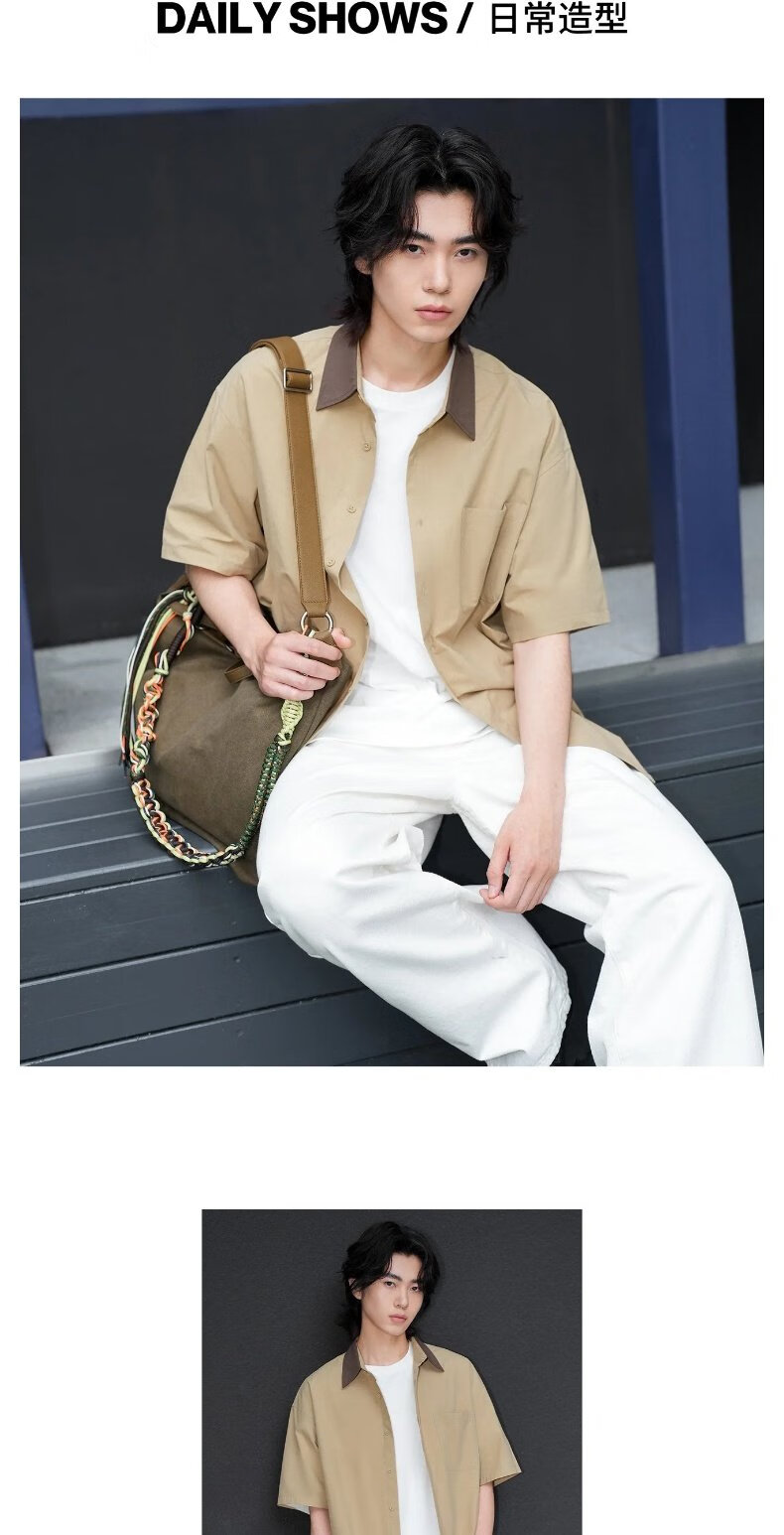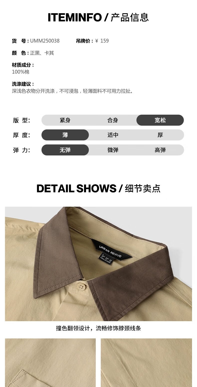 UR Autumn New Men's Fashion Commuting Casual Contrast Color Lapel Cardigan Shirt UMM250038 Khaki M