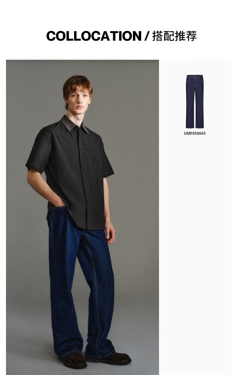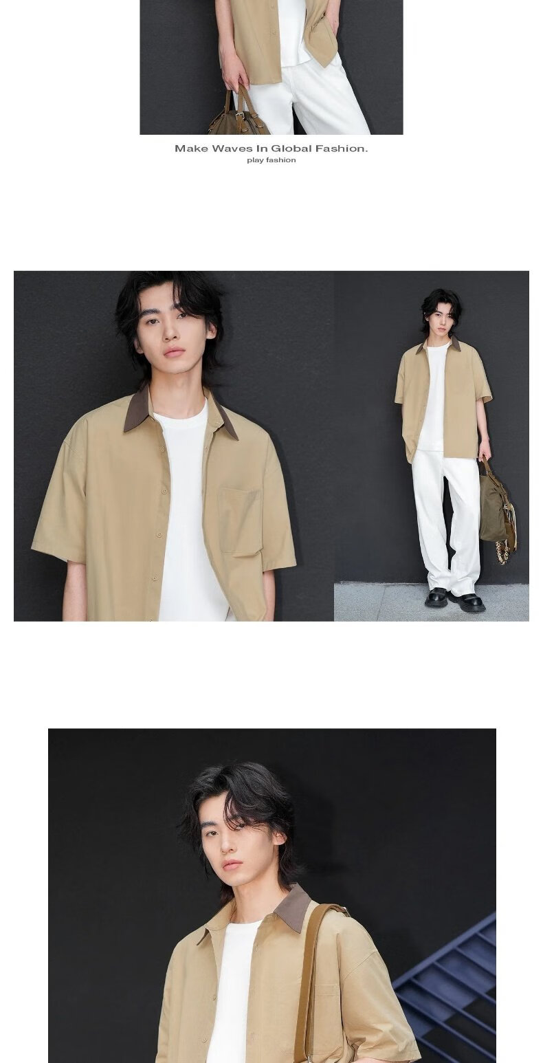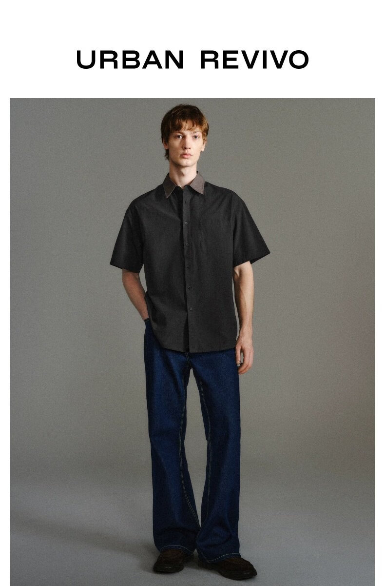 UR Autumn New Men's Fashion Commuting Casual Contrast Color Lapel Cardigan Shirt UMM250038 Khaki M