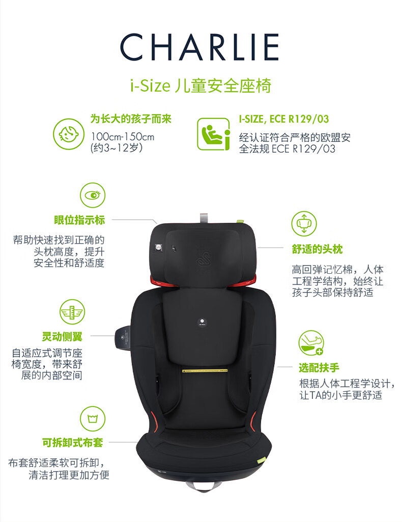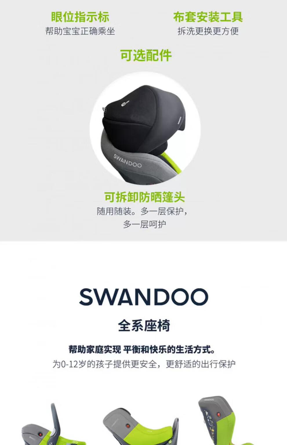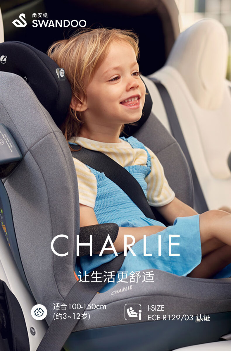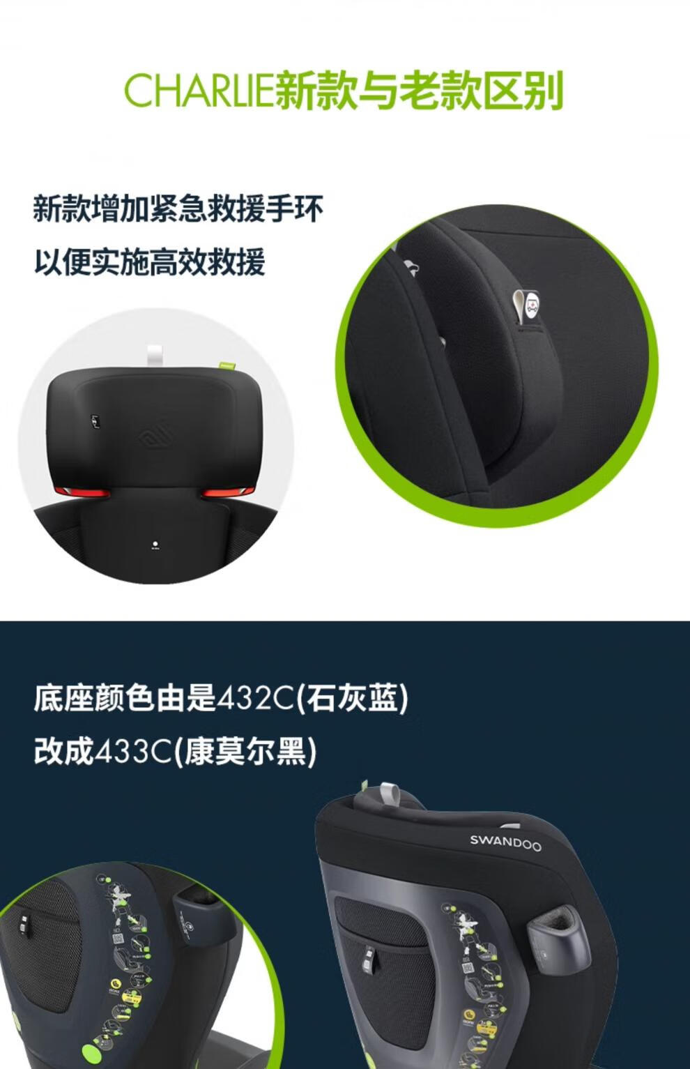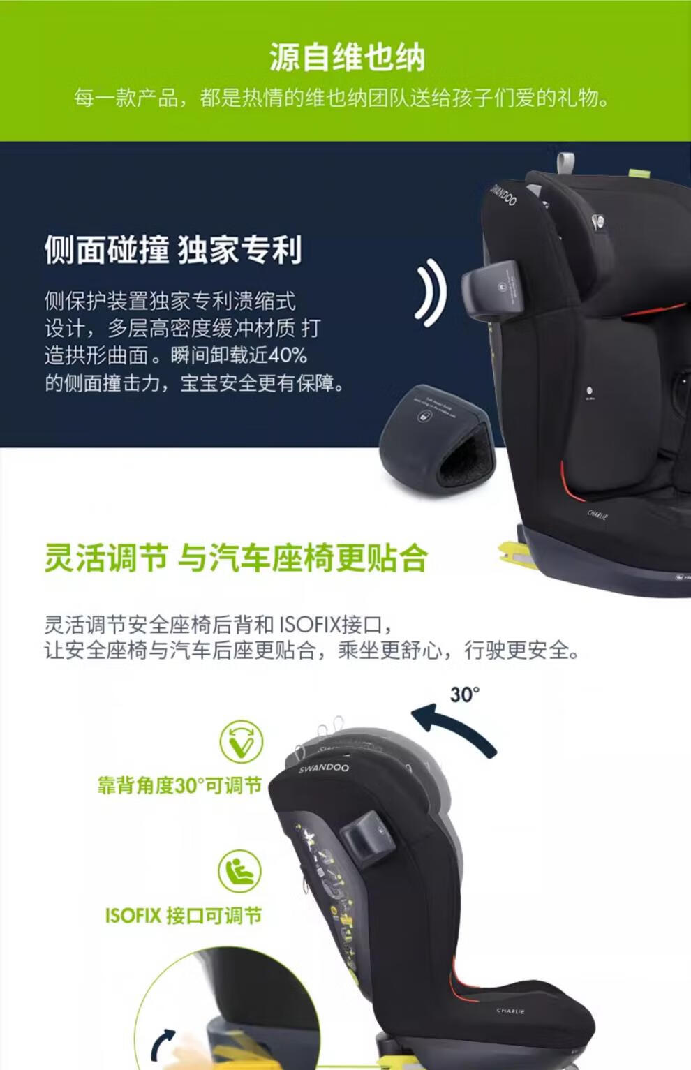 SWANDOO Charlie child safety seat isize certified 3-12 years old isofix interface seat Qiya black