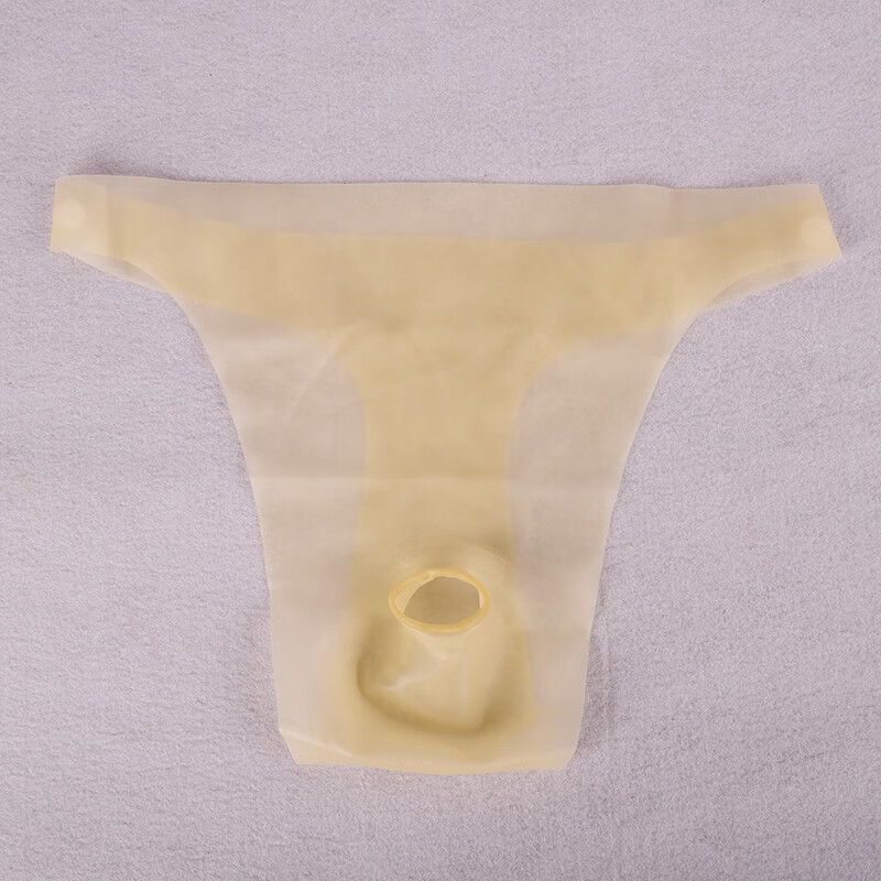 LangSha men's transparent latex underwear sexy hollow Yiyang pants men's double side buckle cool safety pants thong pants flesh color 4069 one size