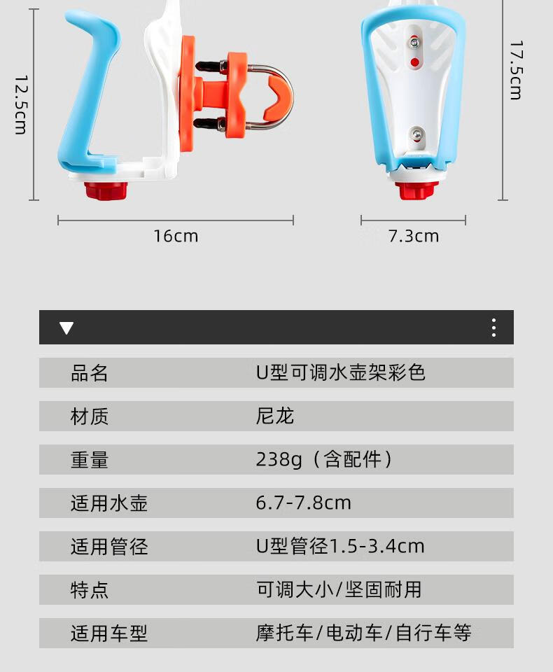 Panyuan battery motorcycle electric bicycle guardrail water cup placement bracket water bottle rack fixed bicycle riding universal motorcycle U-shaped cup holder color