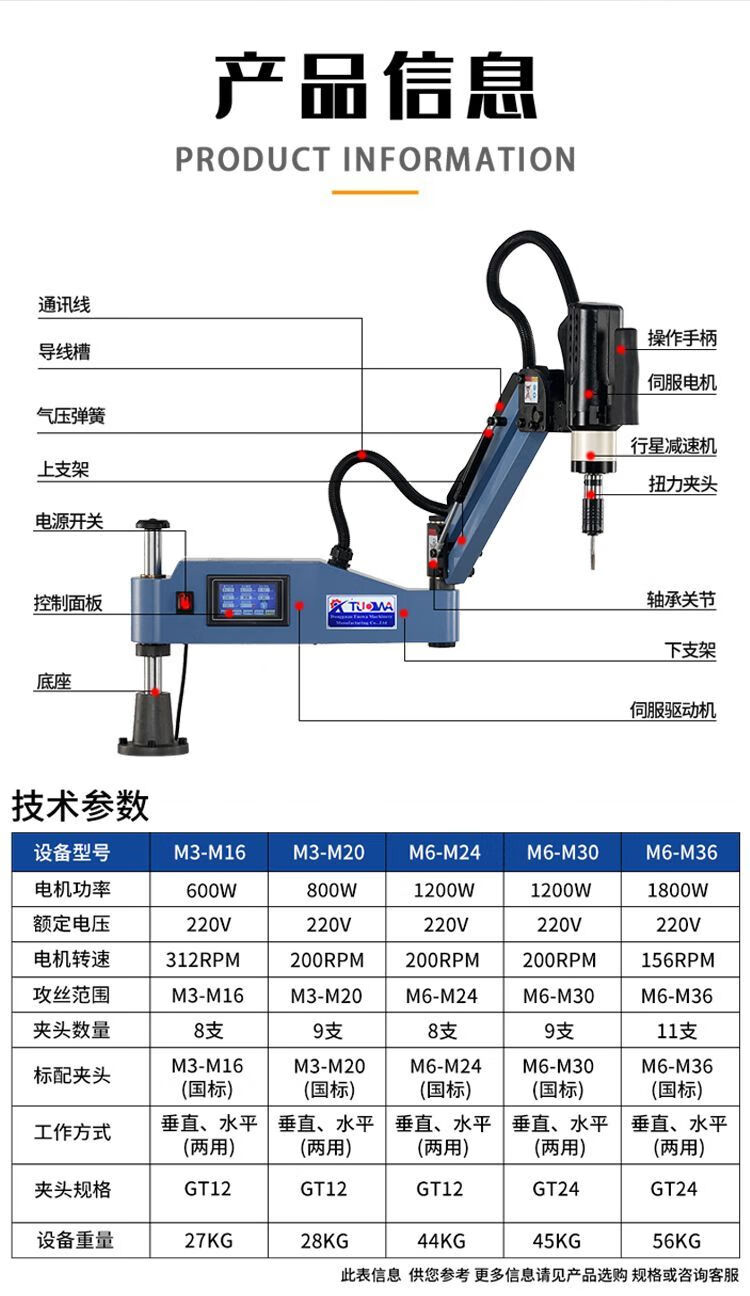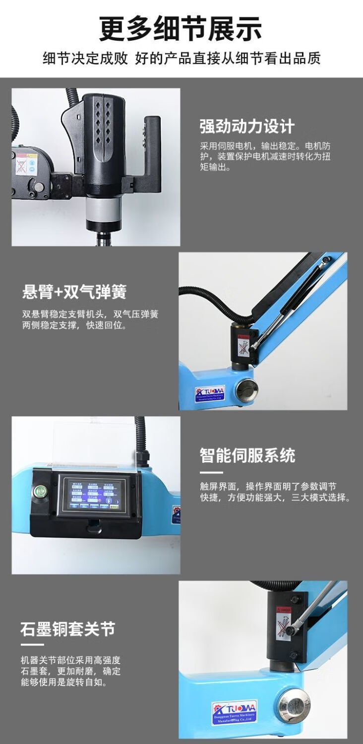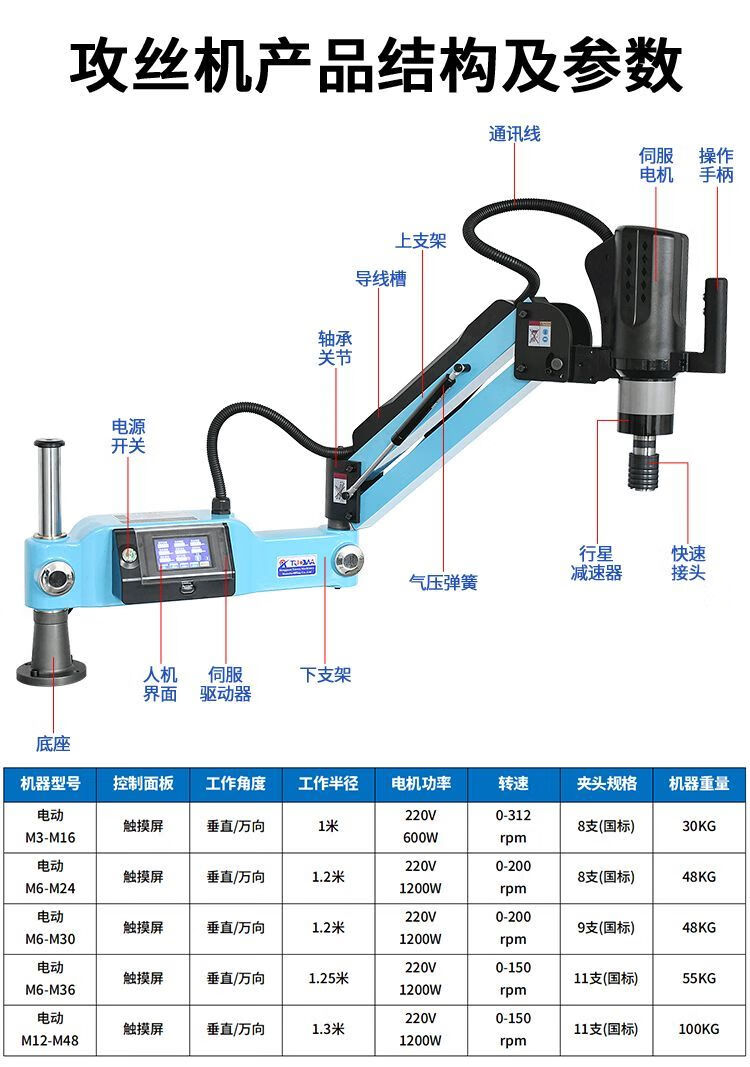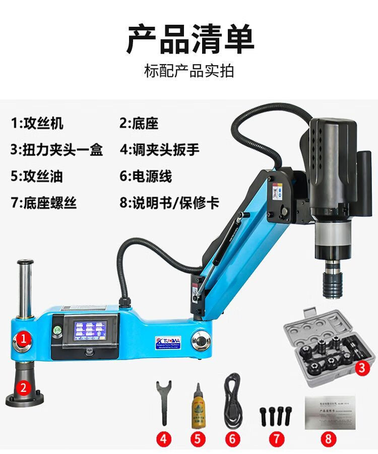 Fully automatic servo tapping machine high-power electric tapping machine desktop universal small intelligent CNC rocker arm vertical M6-M36 universal new national standard chuck 11 pieces