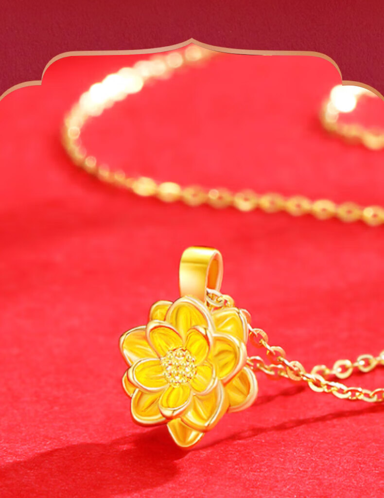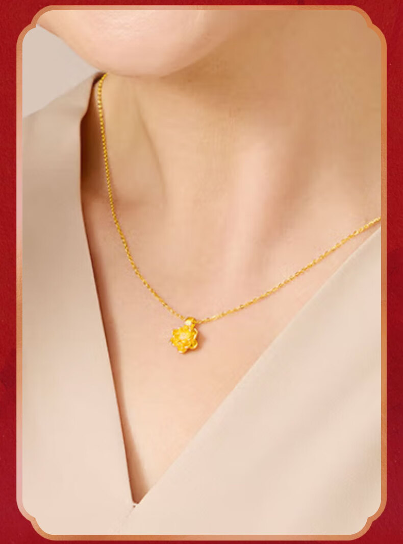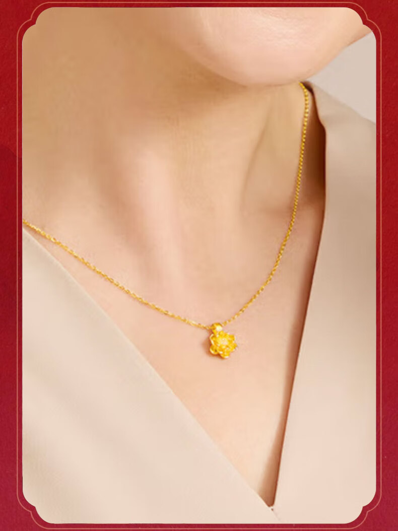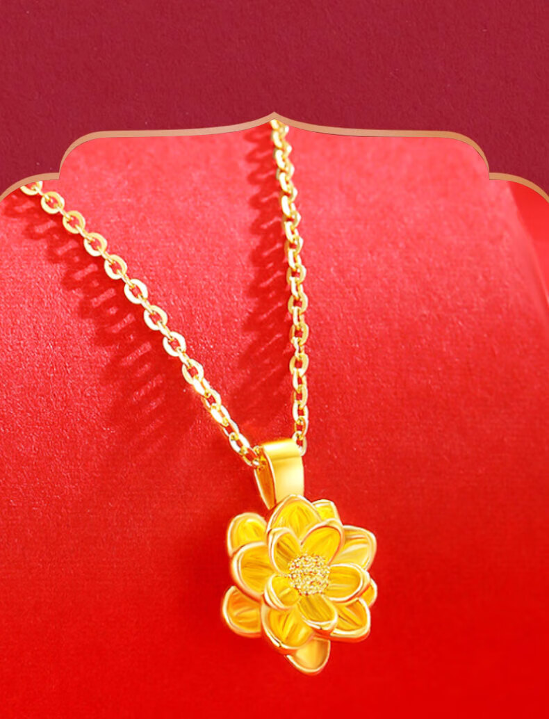 CHINA GOLD Lotus Gold Pendant Women's Pure Gold Goods Lotus Necklace Pendant Father's Day Birthday Gift for My Girlfriend and Mom Lotus Pendant with S925 Silver Chain Approximately 0.1g