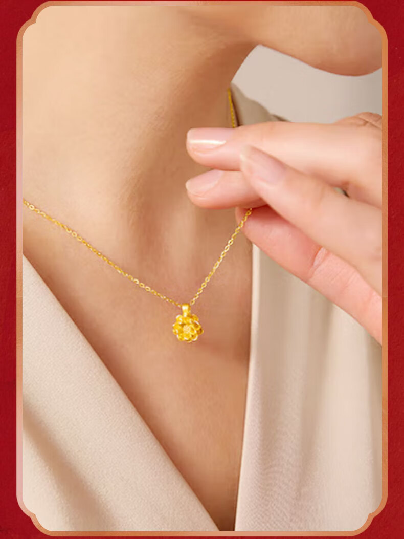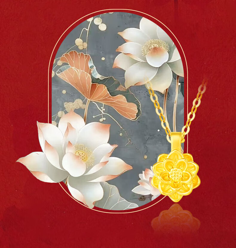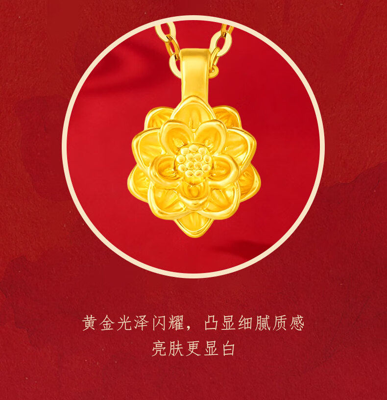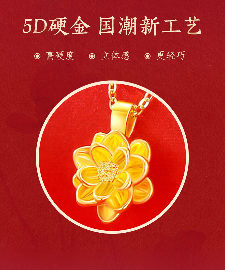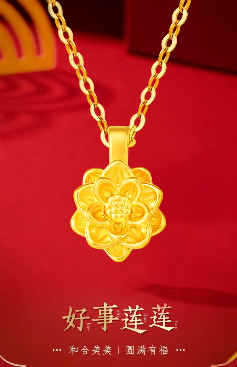 CHINA GOLD Lotus Gold Pendant Women's Pure Gold Goods Lotus Necklace Pendant Father's Day Birthday Gift for My Girlfriend and Mom Lotus Pendant with S925 Silver Chain Approximately 0.1g
